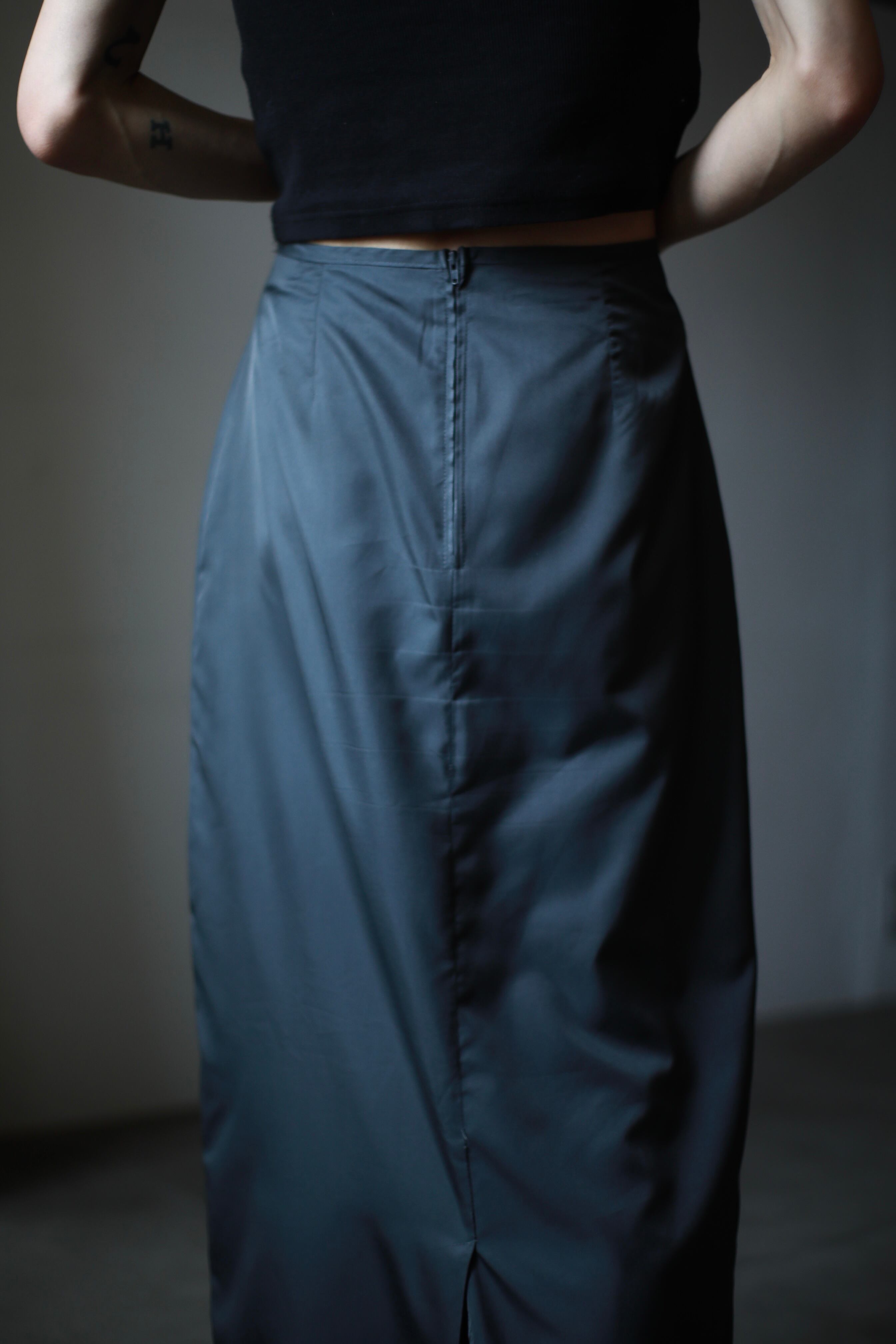 テック素材に、このマキシ丈の綺麗なシルエットが最高な一本です。