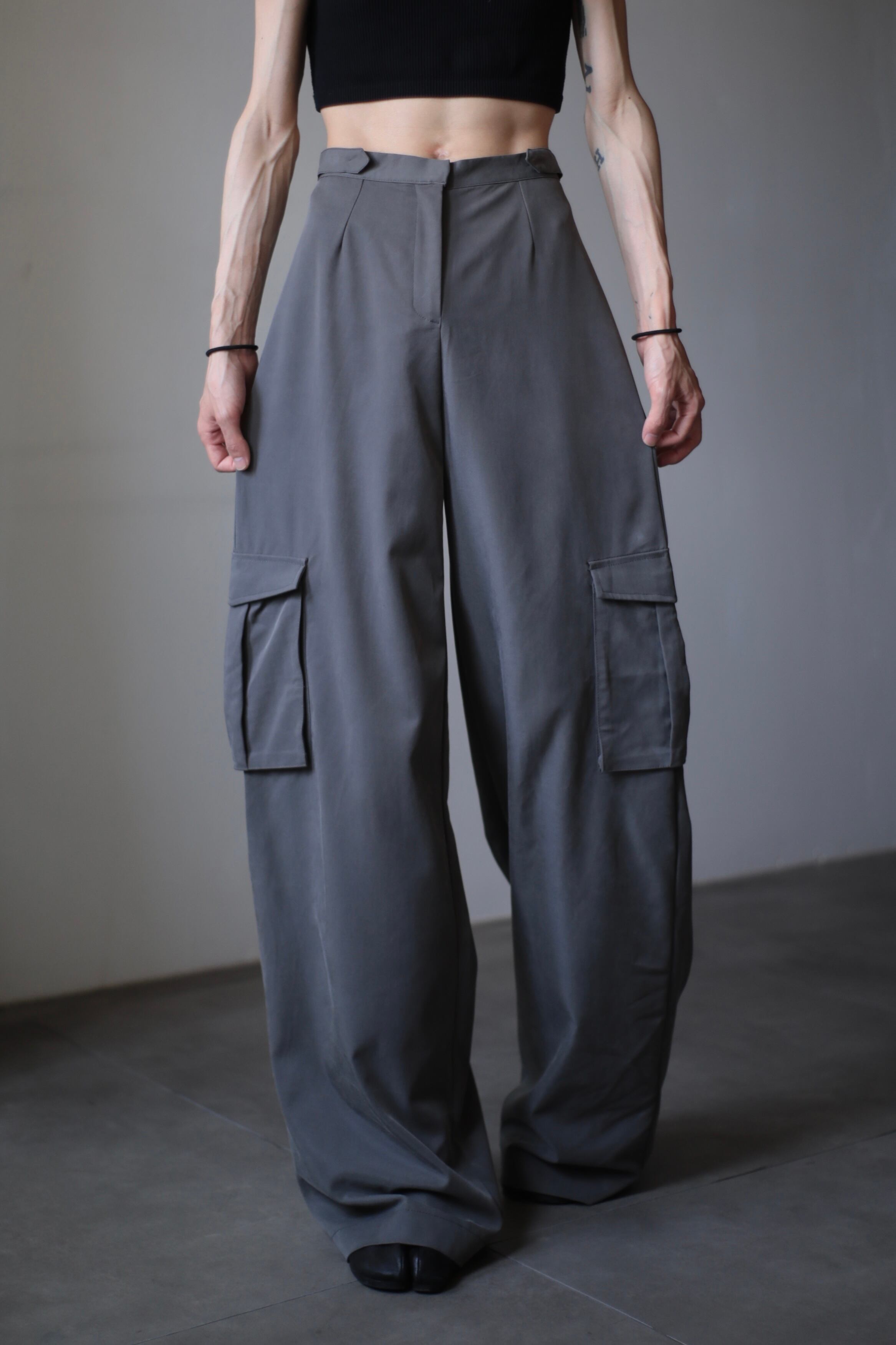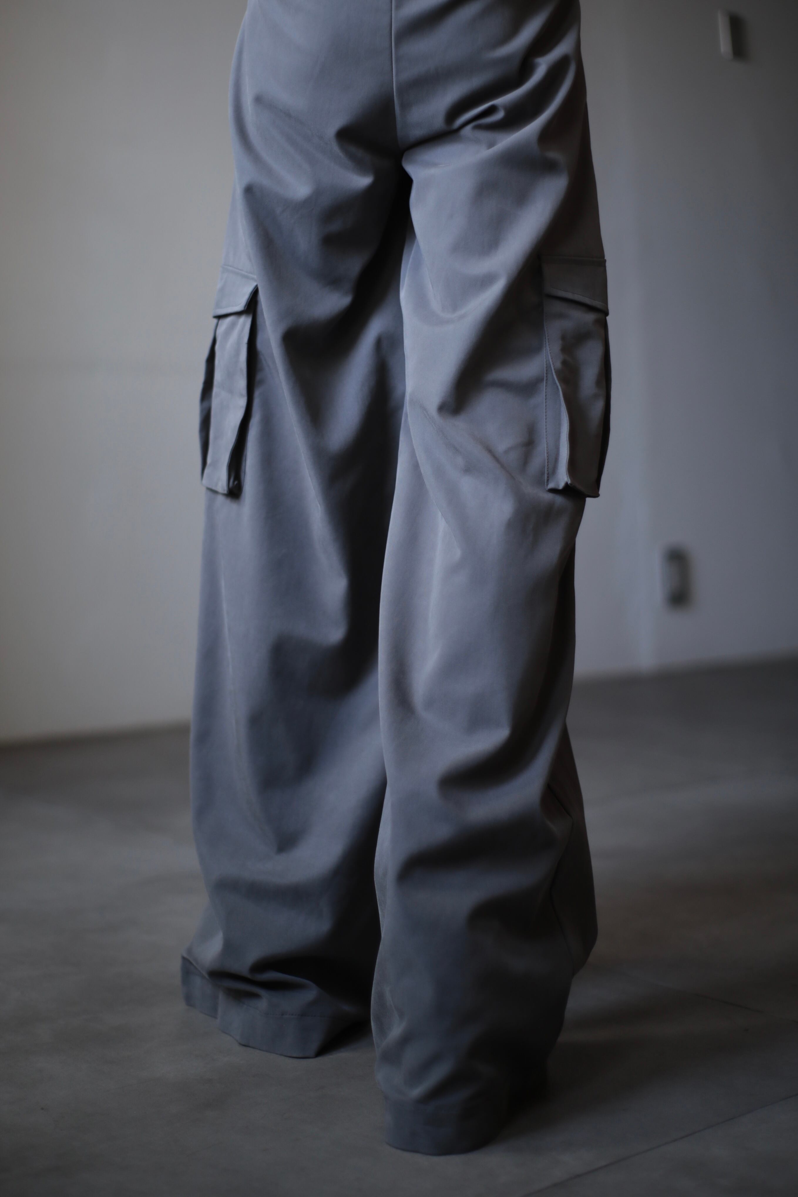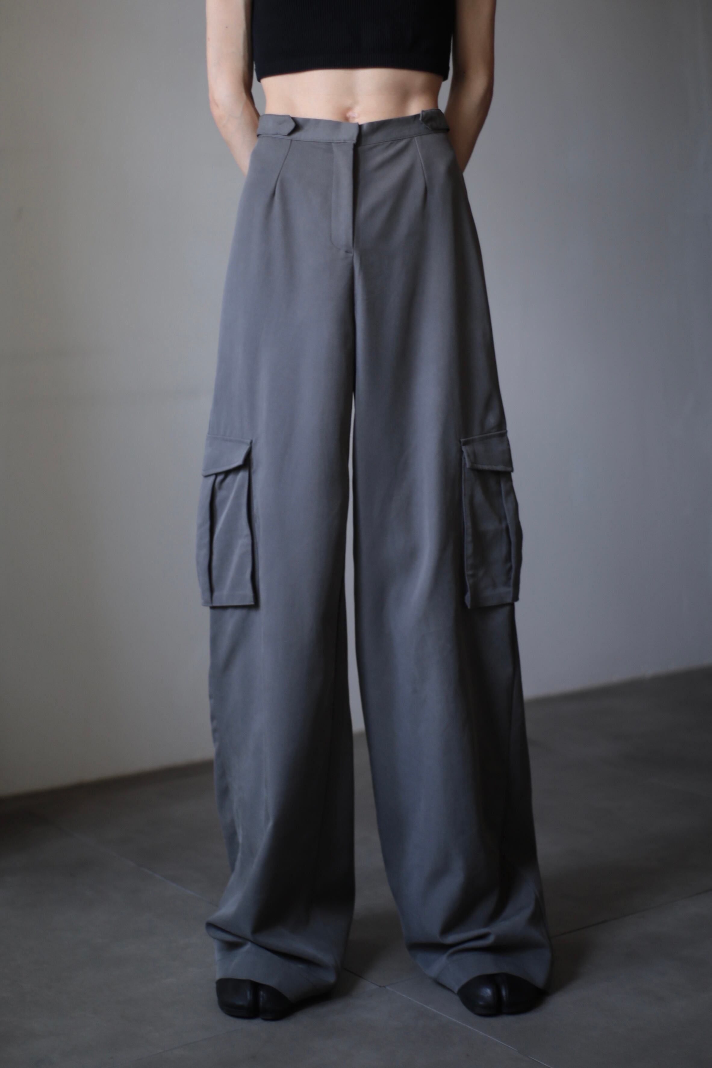 toromi wide straight cargo design slacks gray