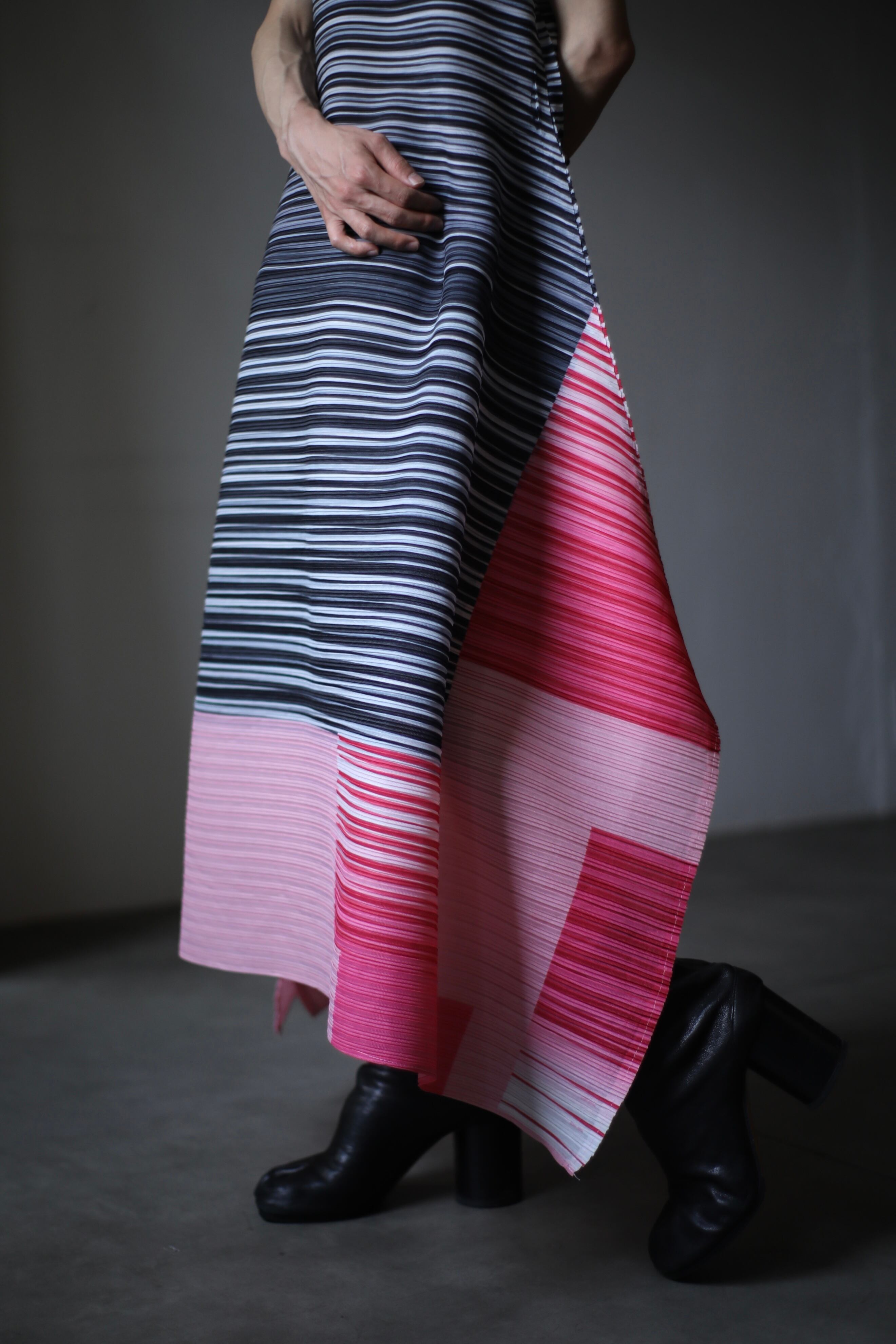 此方は横のプリーツで歩くとボインボインと跳ねるようなドレープが素晴らしいです。