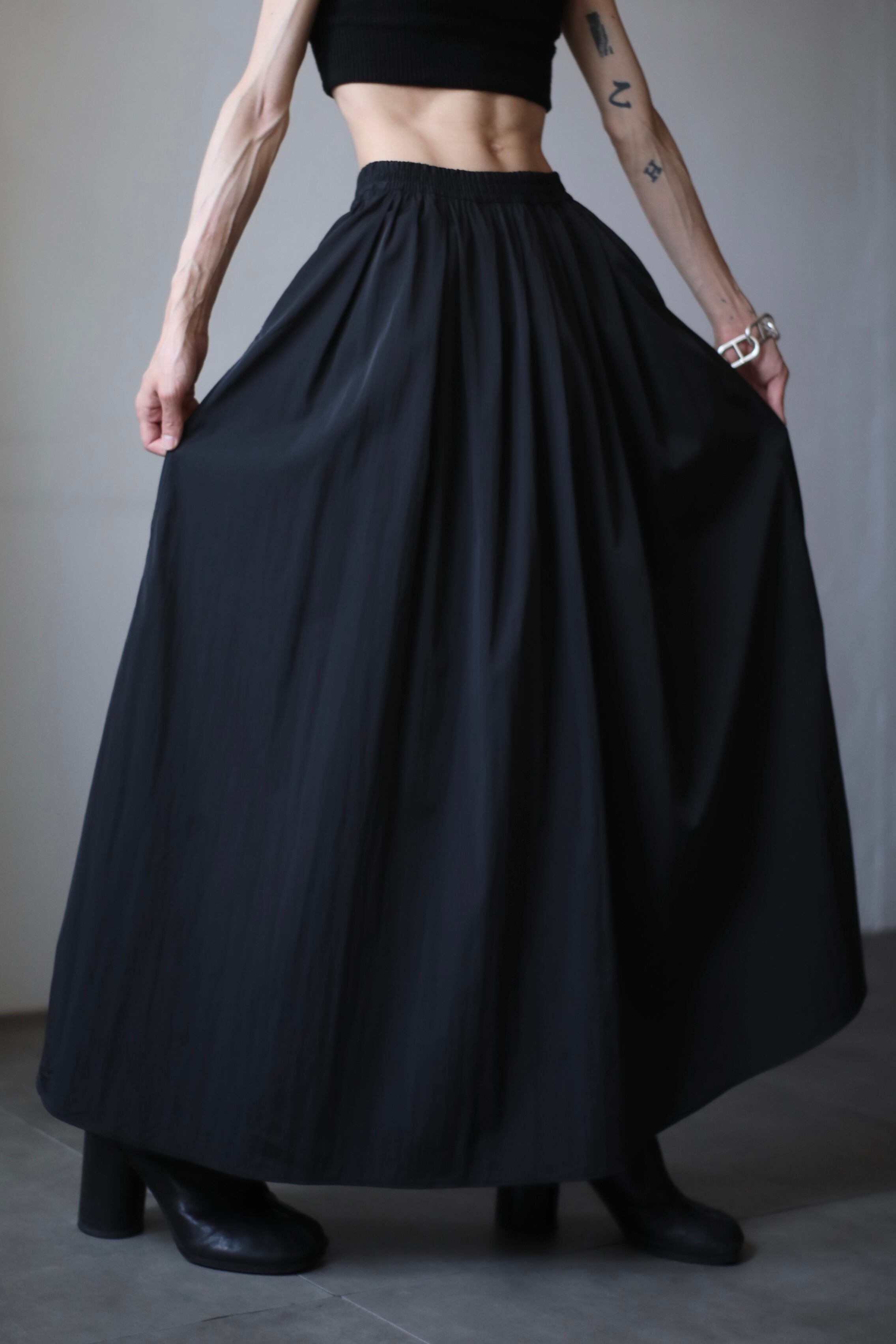 nylon volume design maxi skirt black