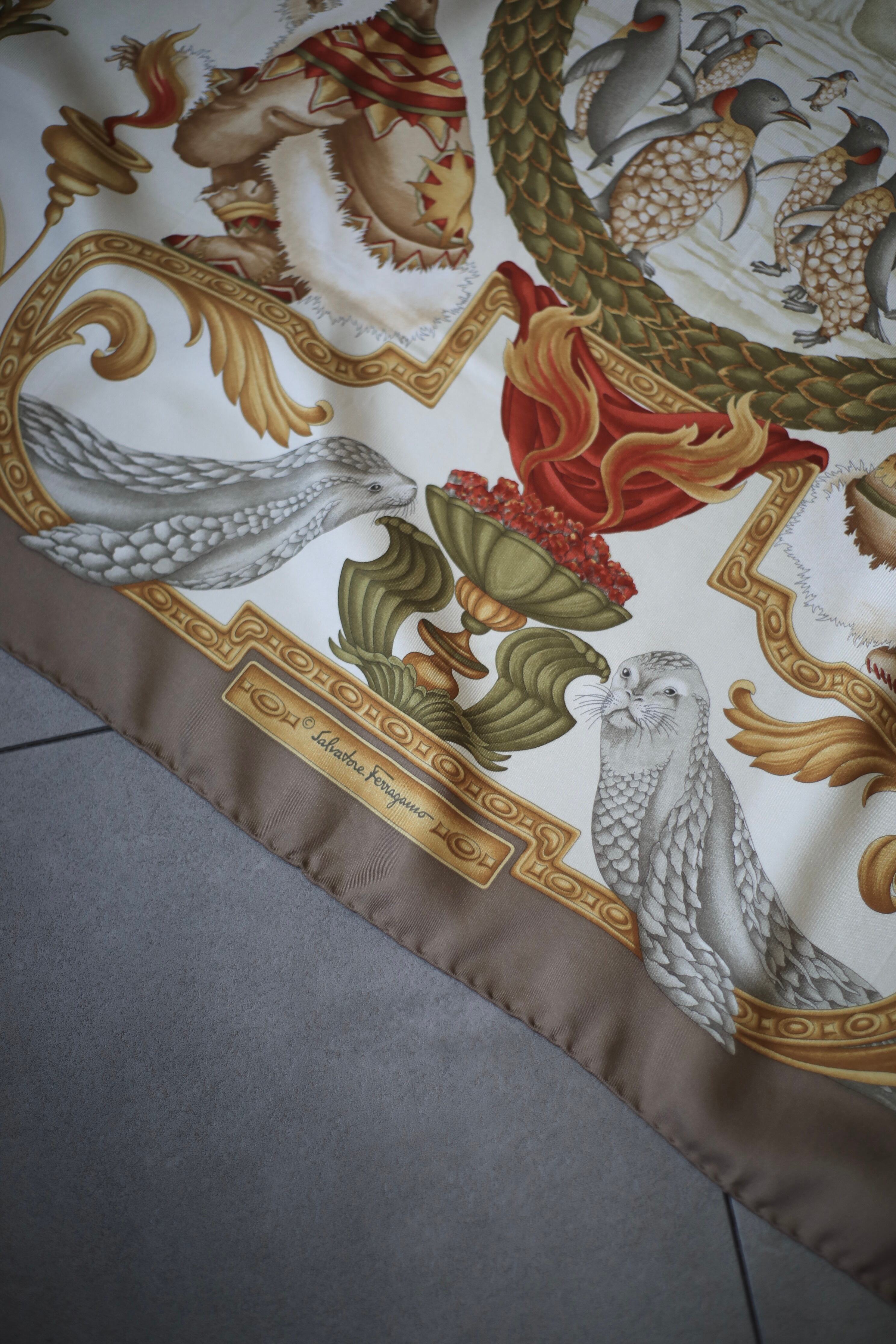 1990s Salvatore Ferragamo "penguin" silk 100% big scarf