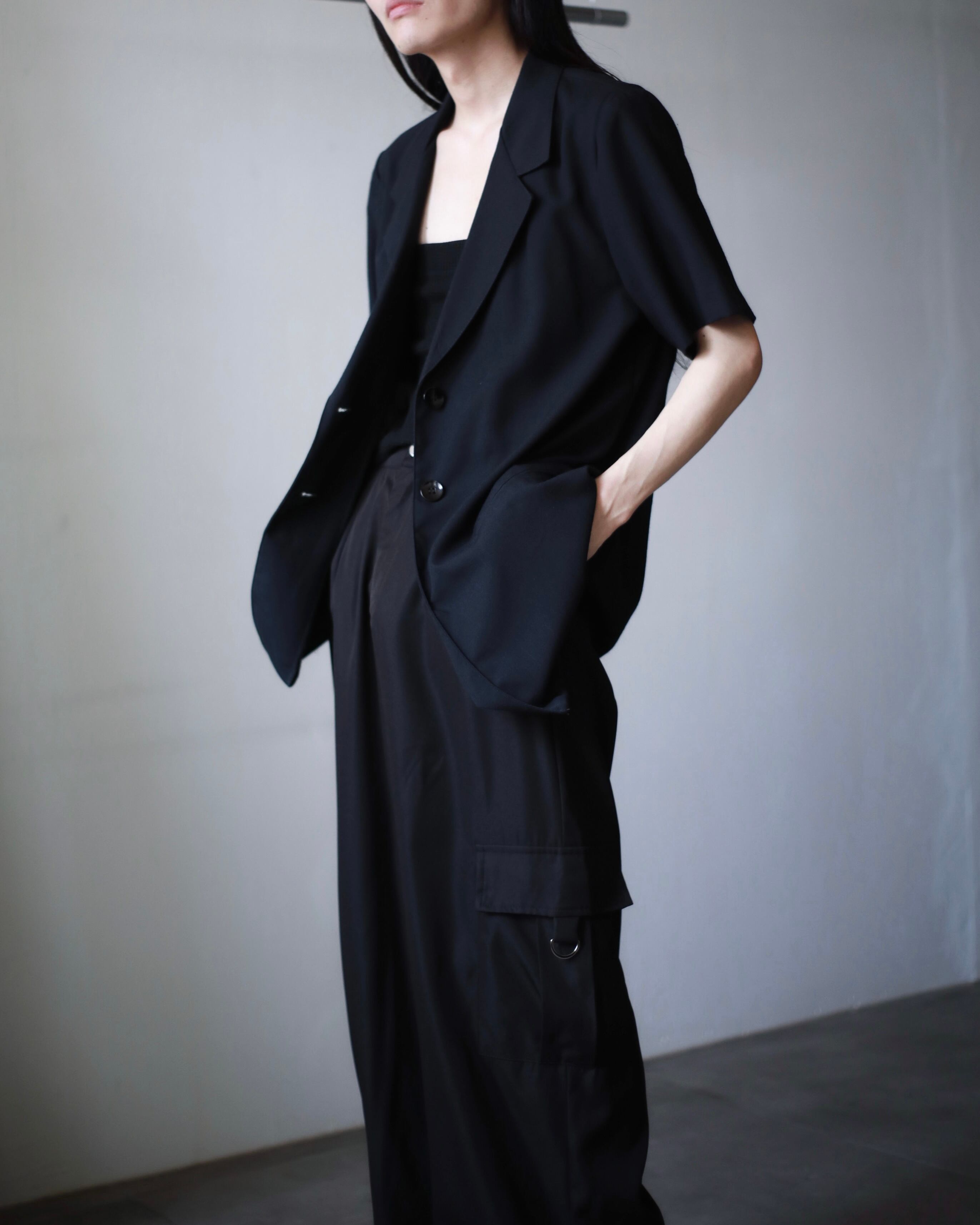 1990s short sleeve summer tailored jacket pad less jersey fabric