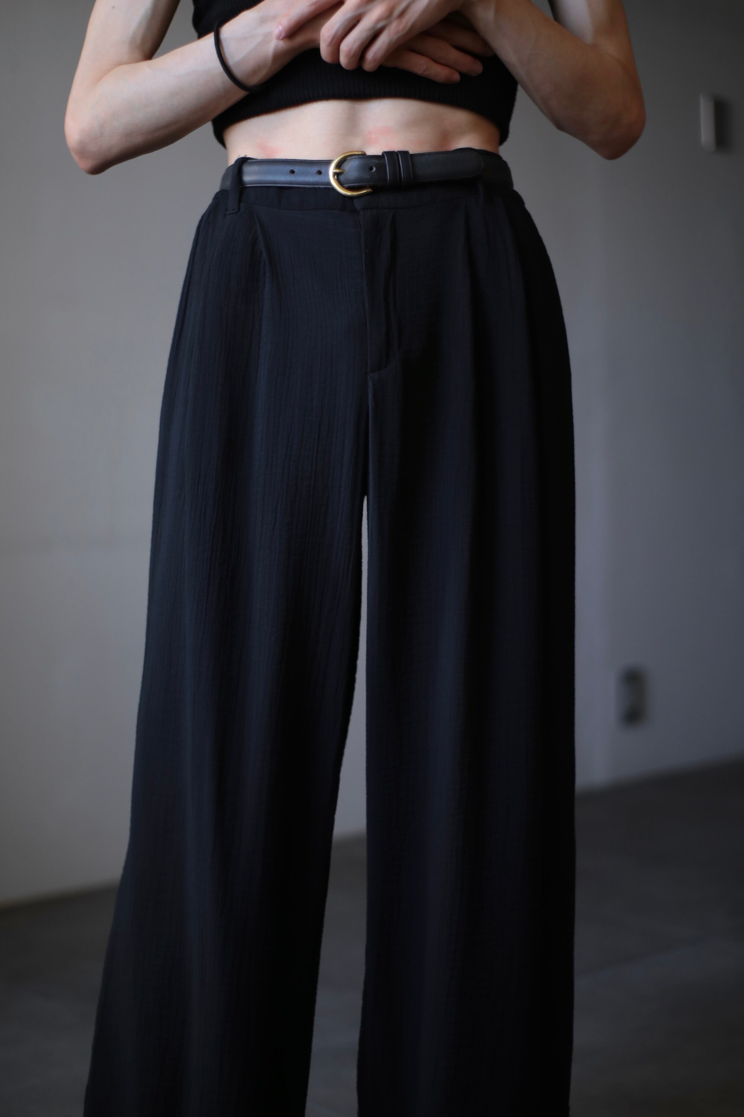 履くだけでスタイルがよく見える美しいシルエットで裾にボリュームがあるので足元の自由度も高く、スニーカーやサンダル、レザー系と何を合わせてもバッチリです。