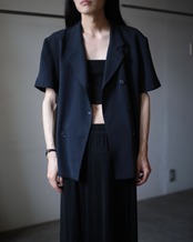 ダブルブレストの半袖テーラードジャケット。