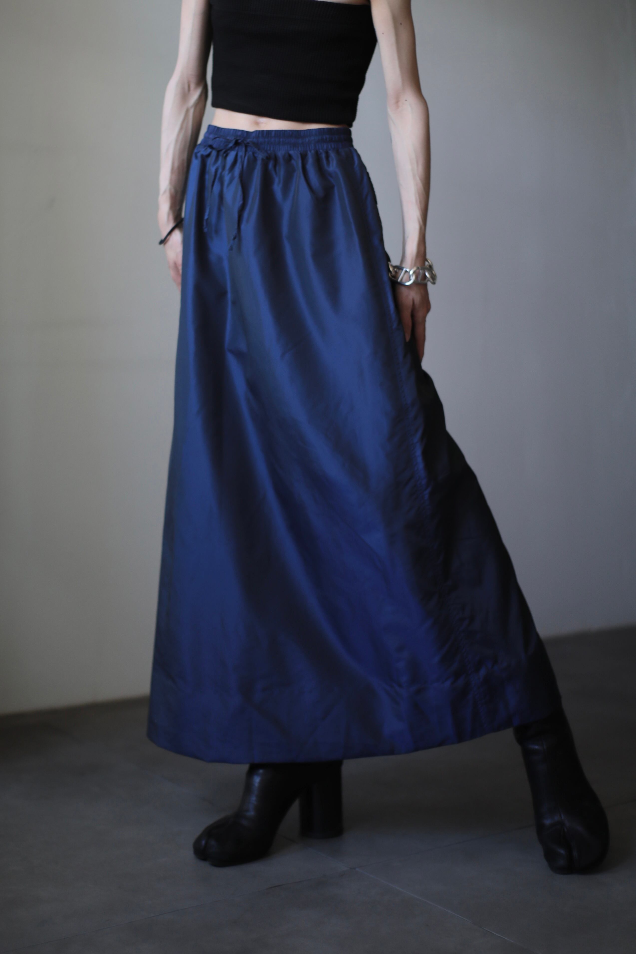 光のあたり方によってキラキラと色味の見え方の変わるモードな印象のスカートです。