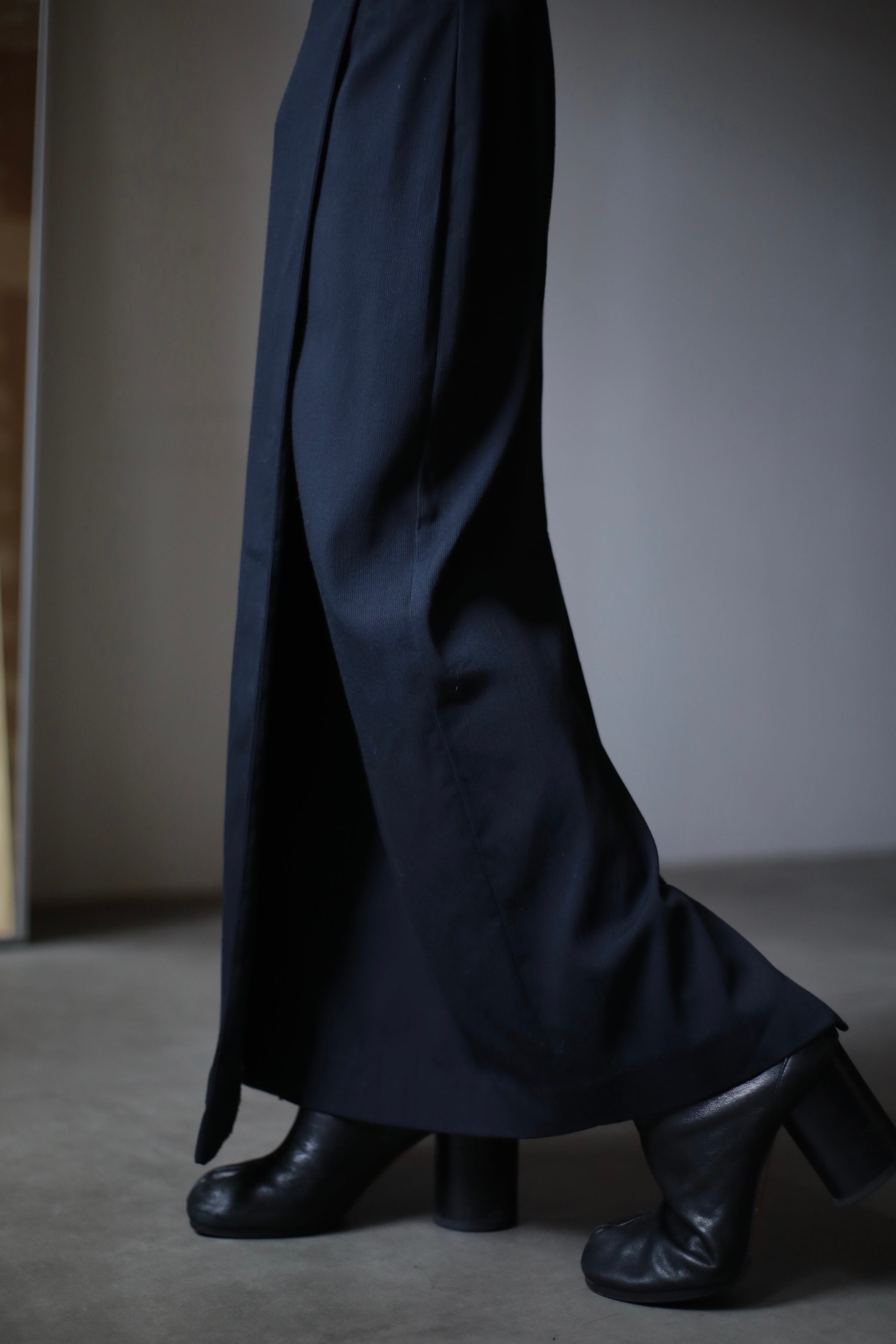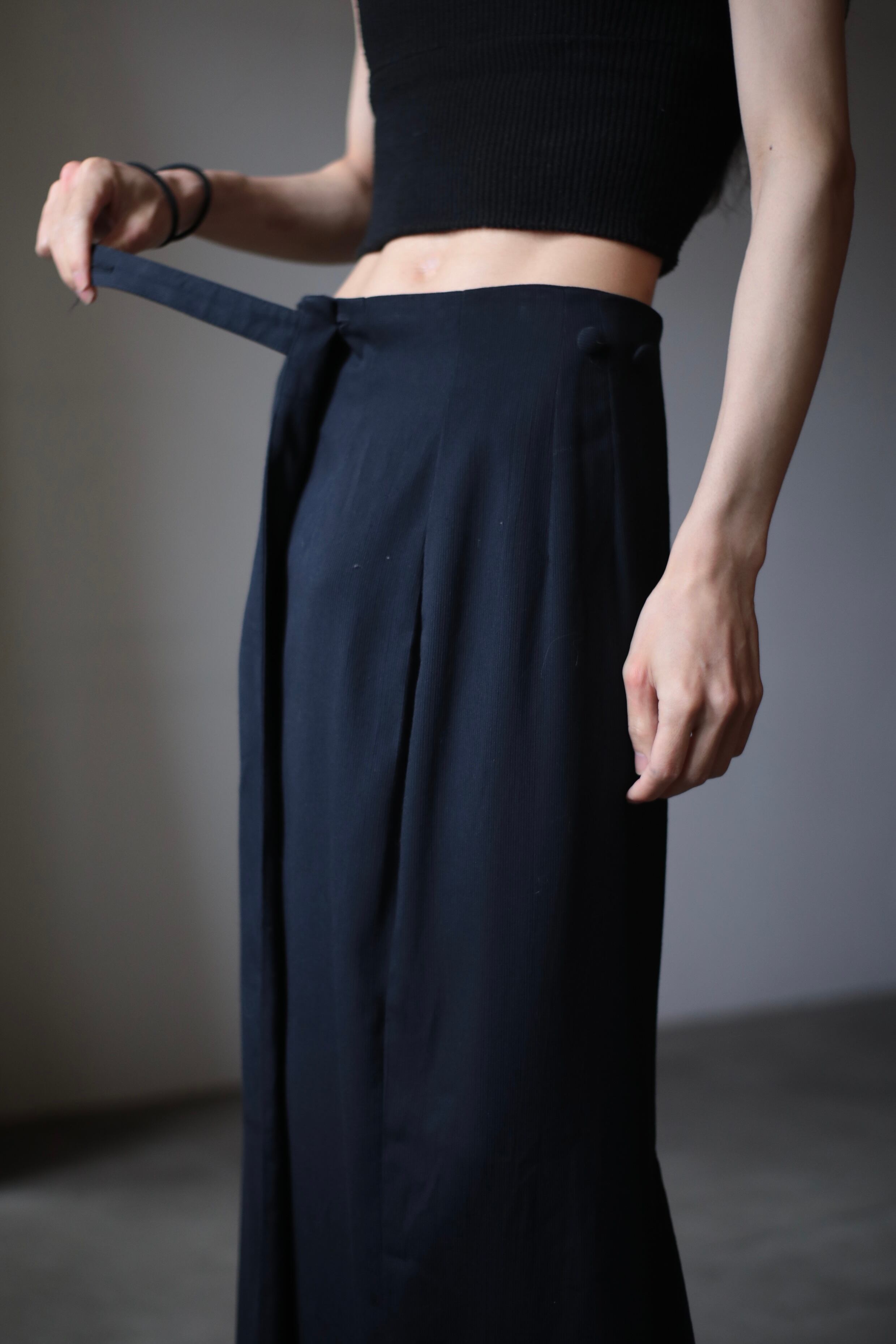 こちらはスラックスのデザインをスカートに落とし込んで更にラップデザインにしたようなニュアンスでモードな印象。