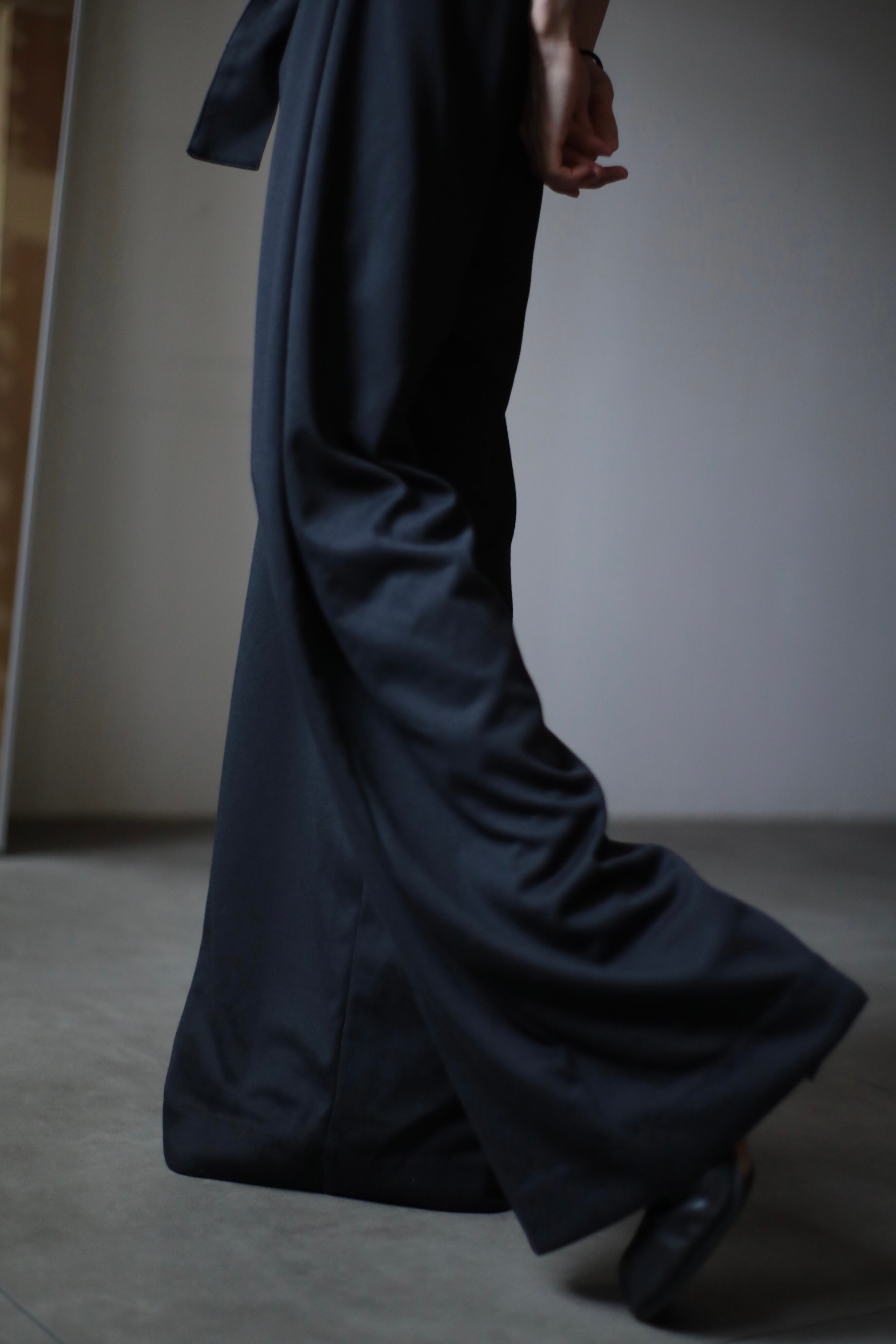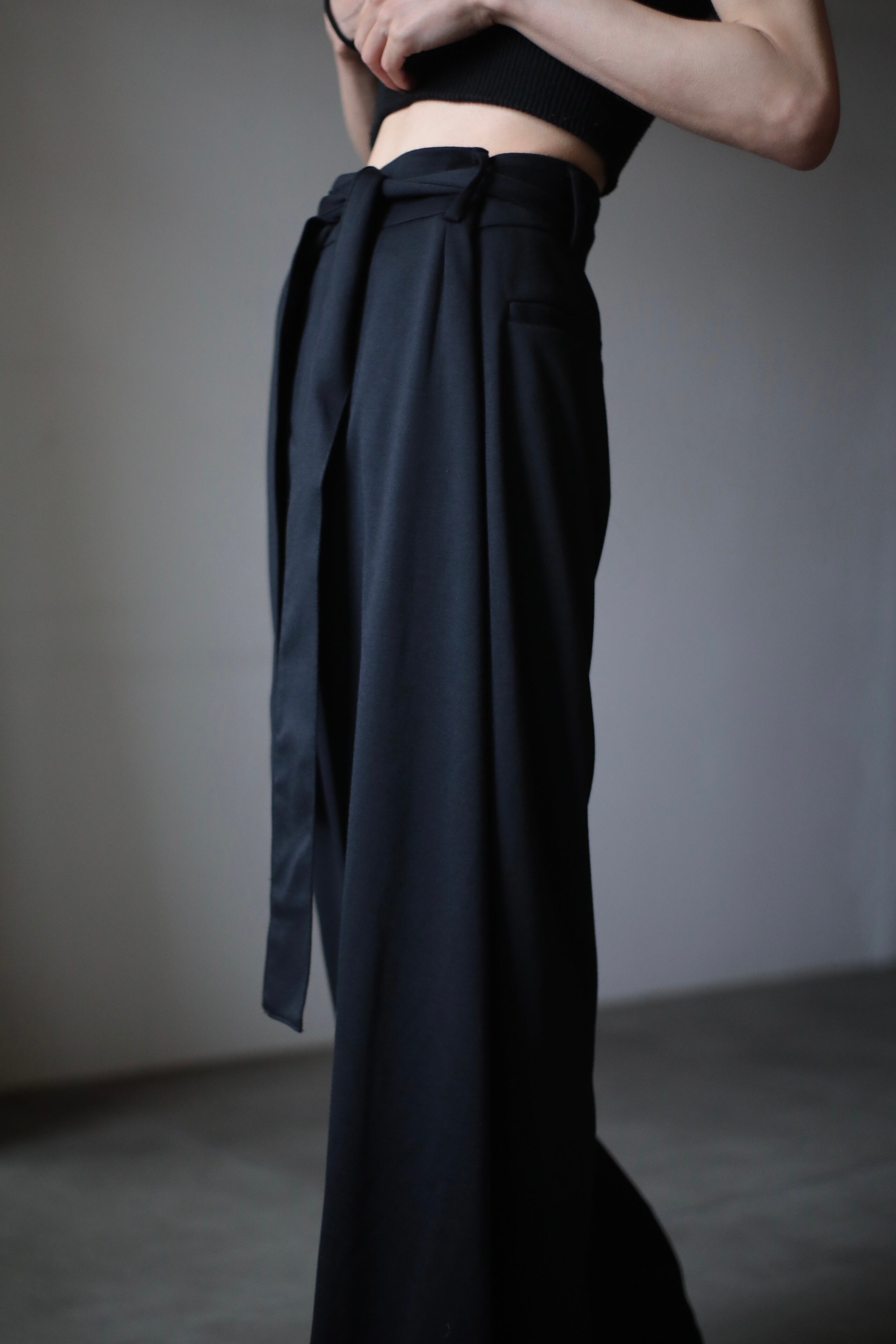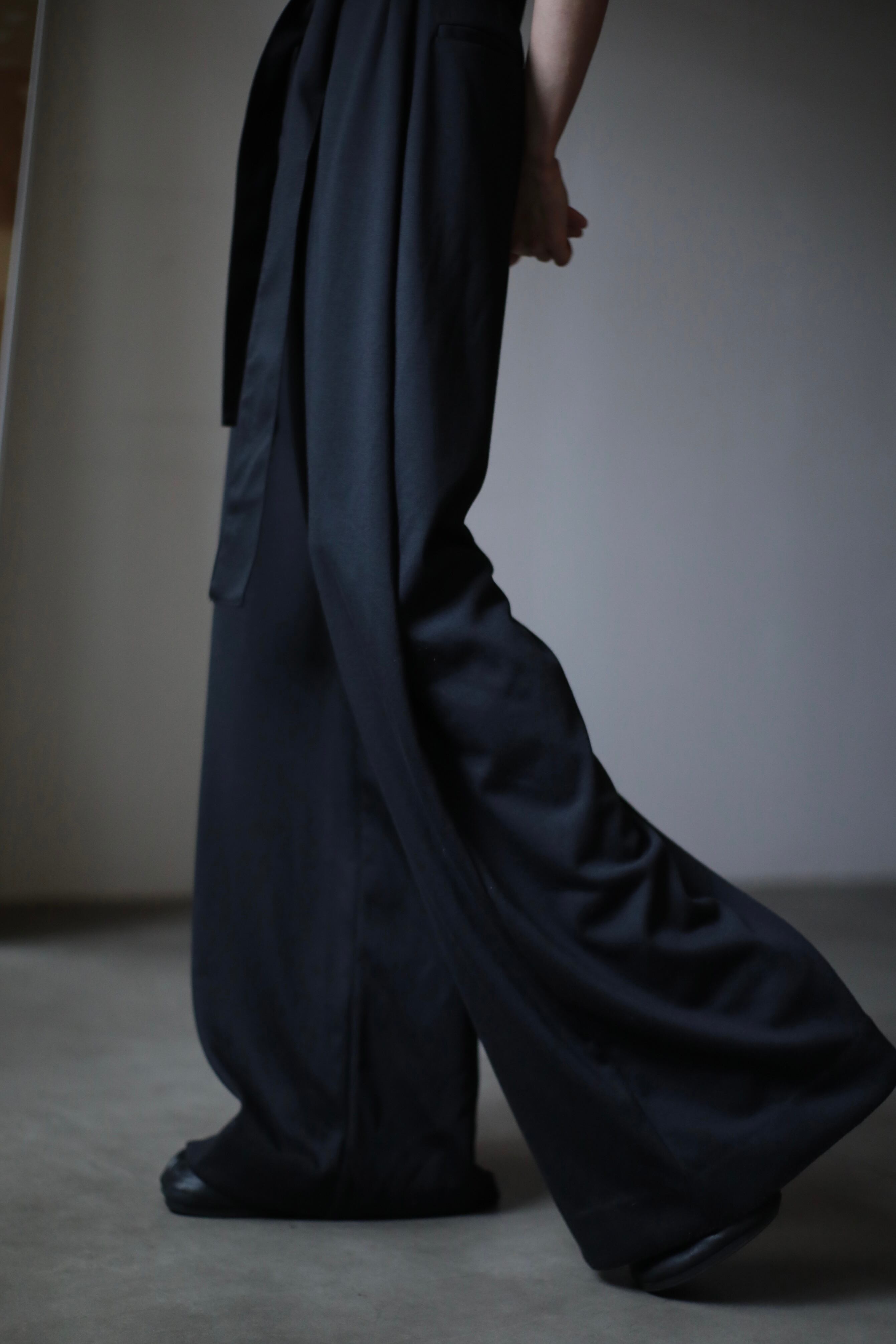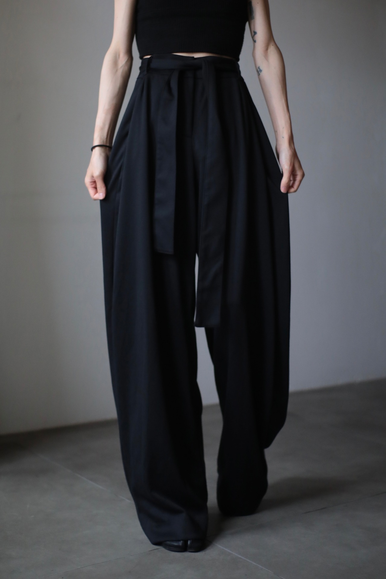 deadstock hi-waist tuck design wide straight drape belted slacks