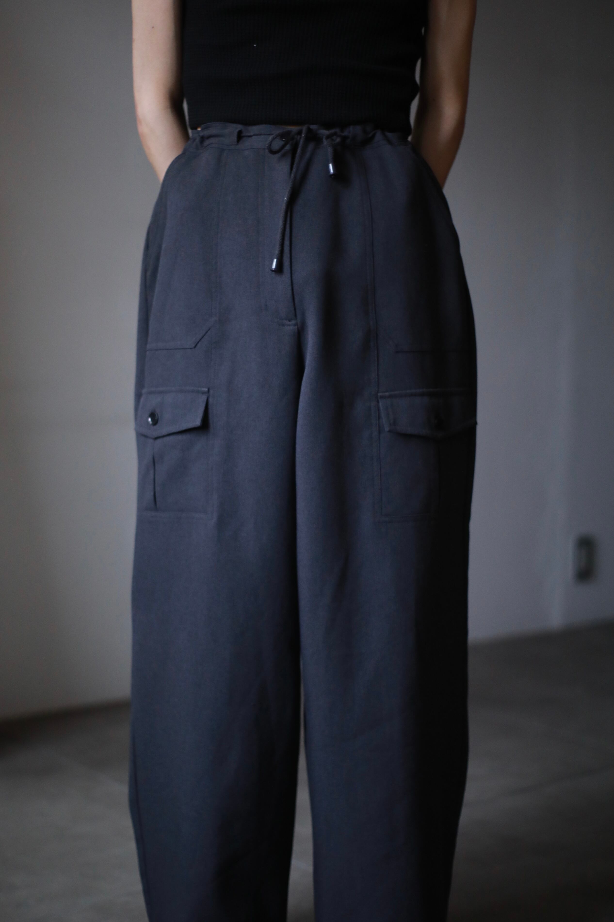 toromi drape fabric hi-waist wide straight cargo design slacks
