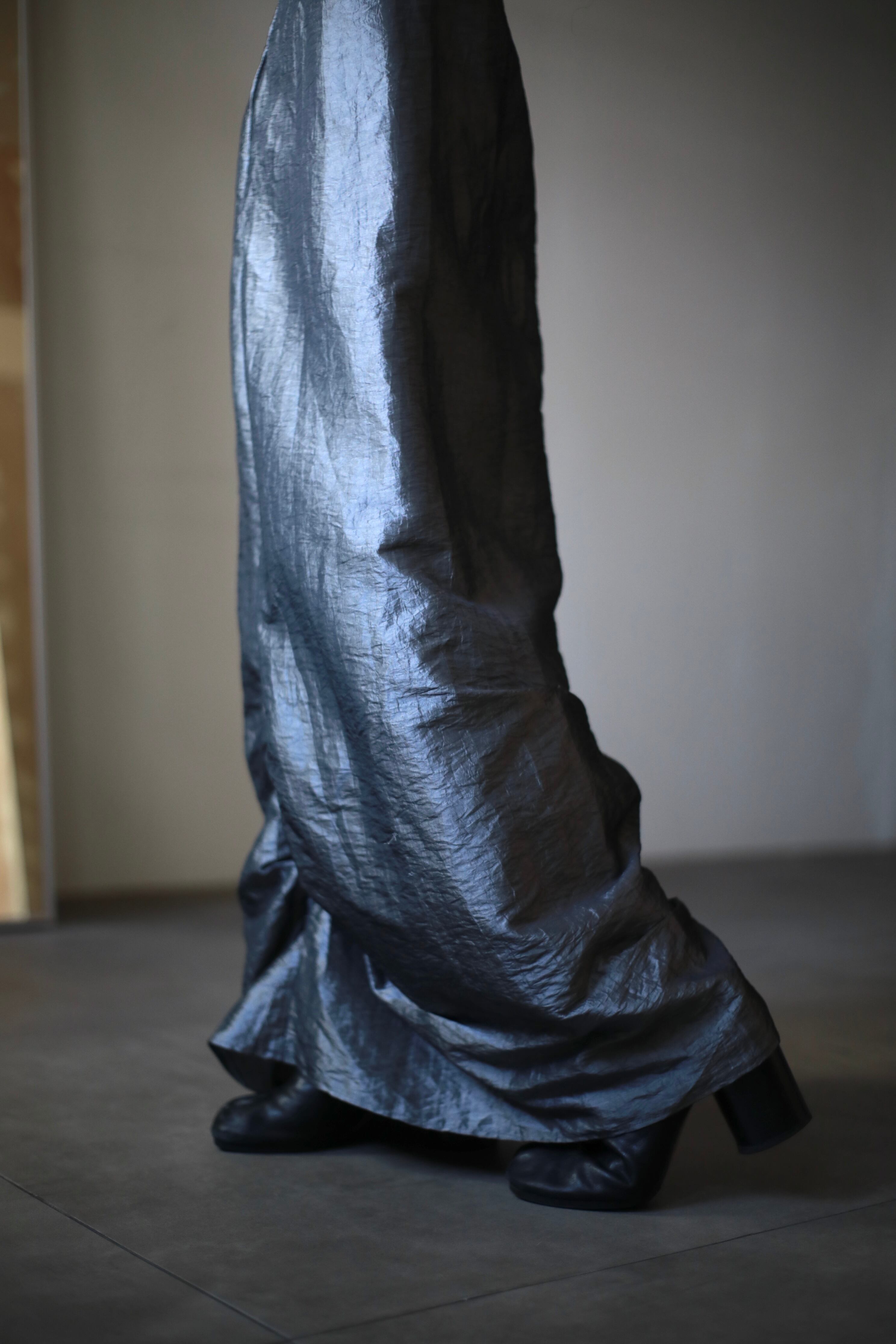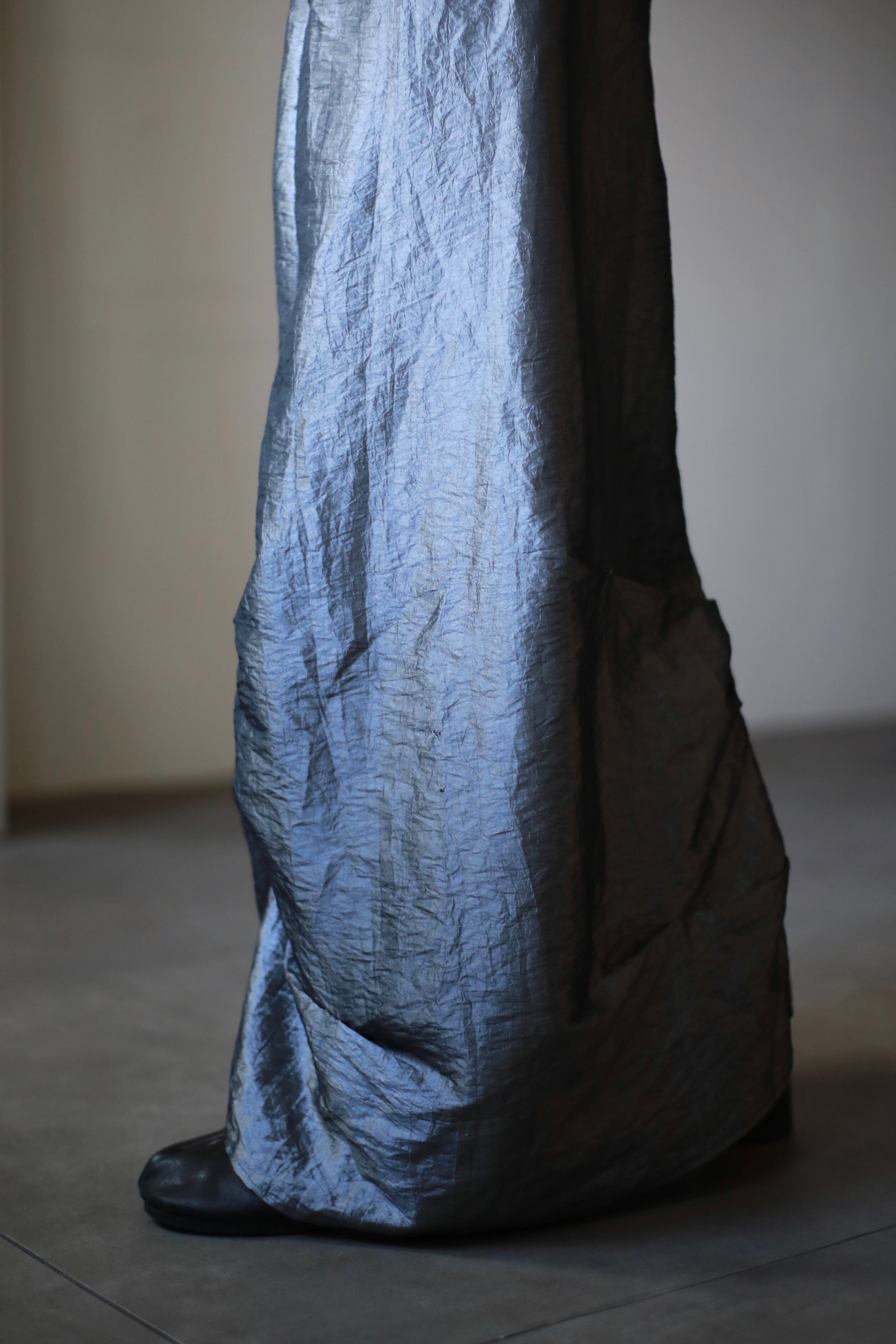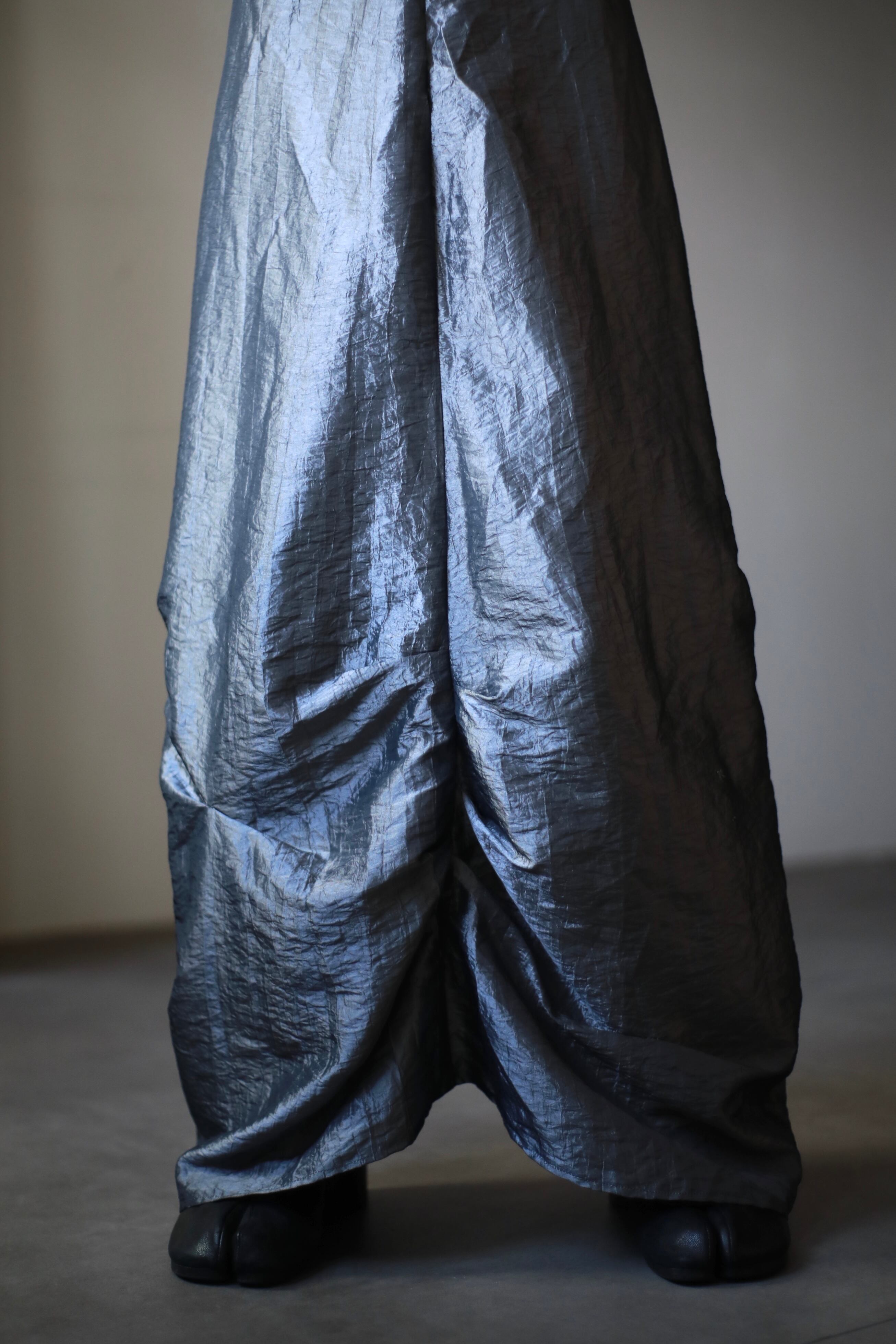 メタリックのシルバーカラーにナイロンライクなポリファブリック。