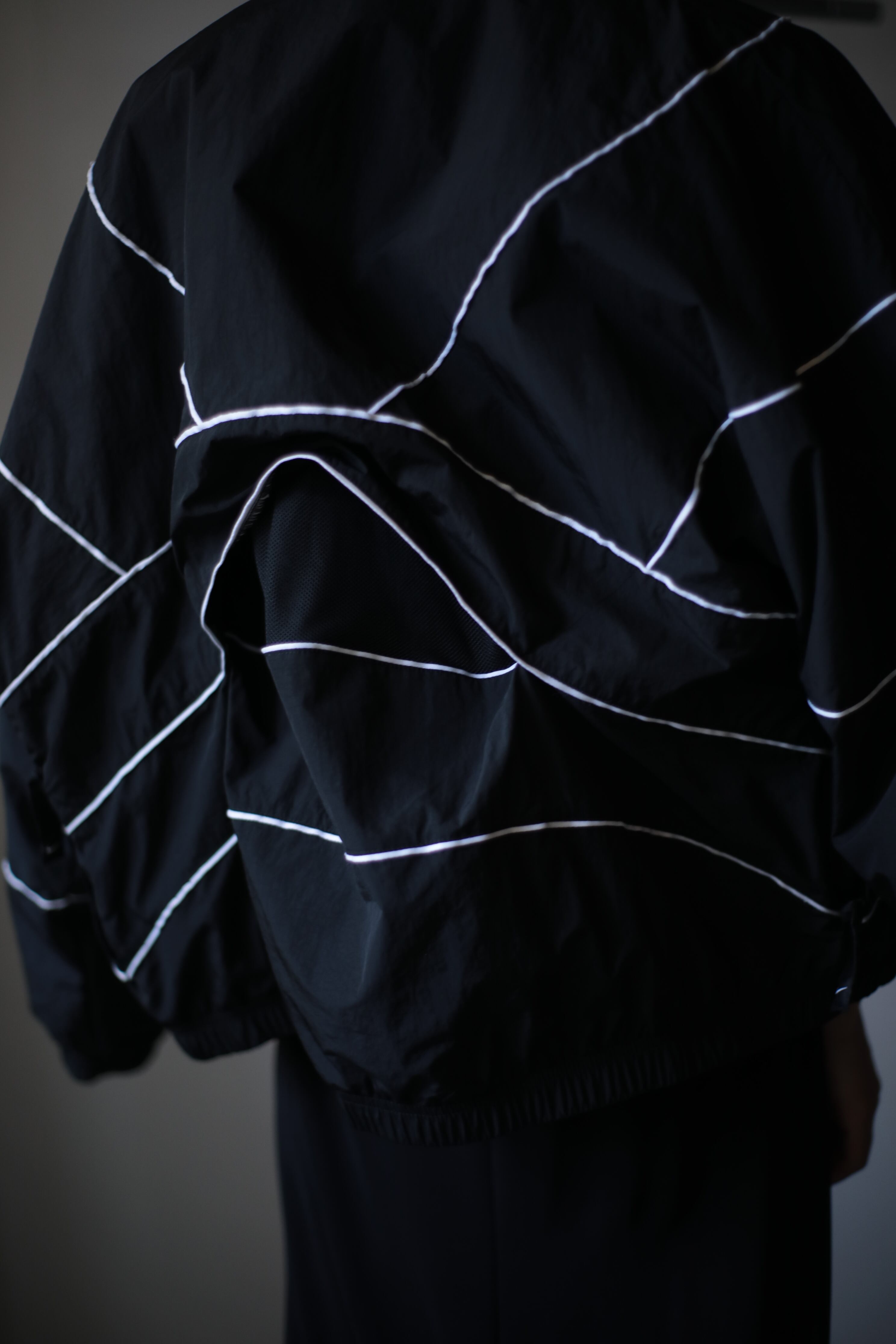 NIKE nylon hi-neck piping line design wide & short jacket