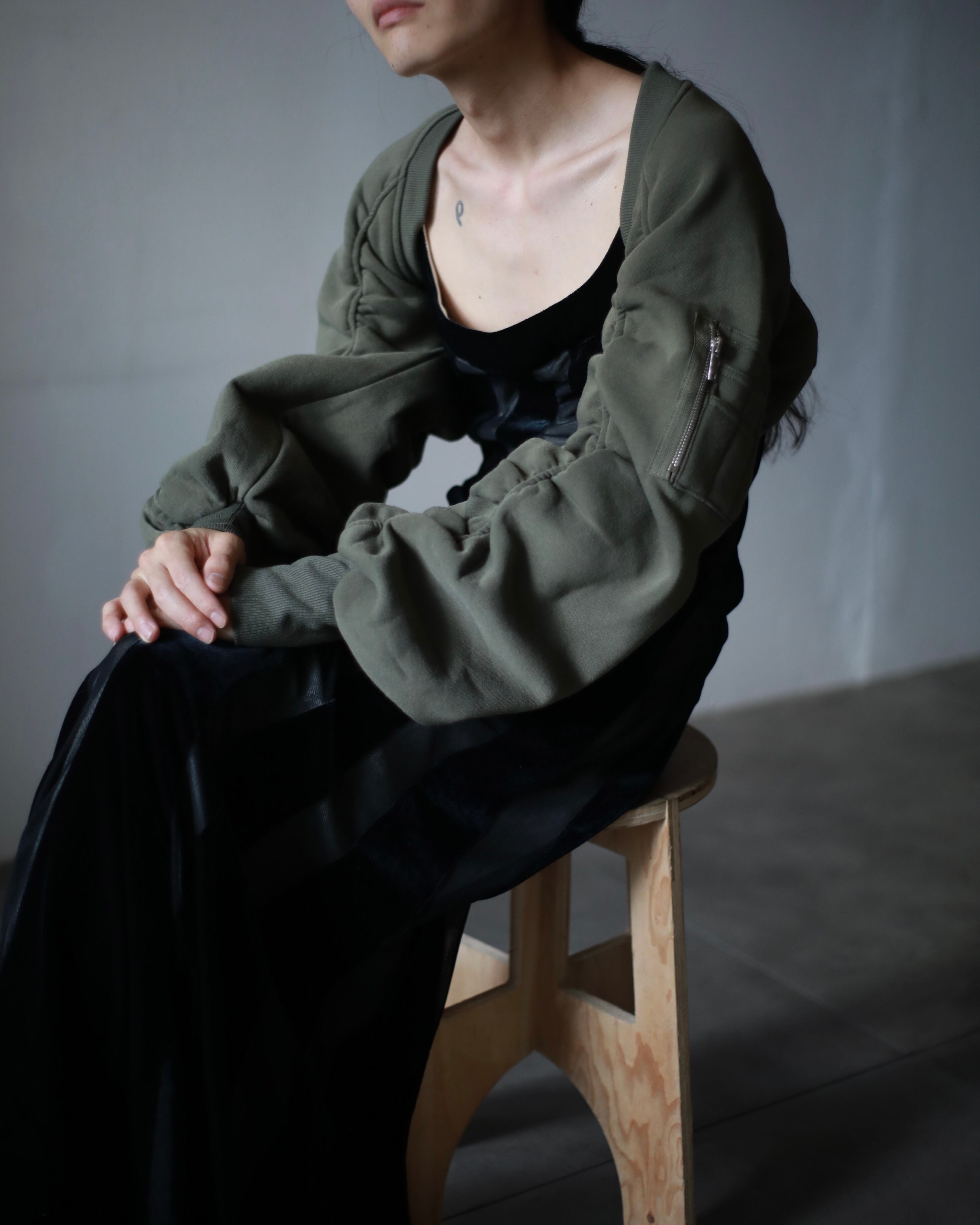 MA-1 design very short & wide volume shirring arm design sweat blouson
