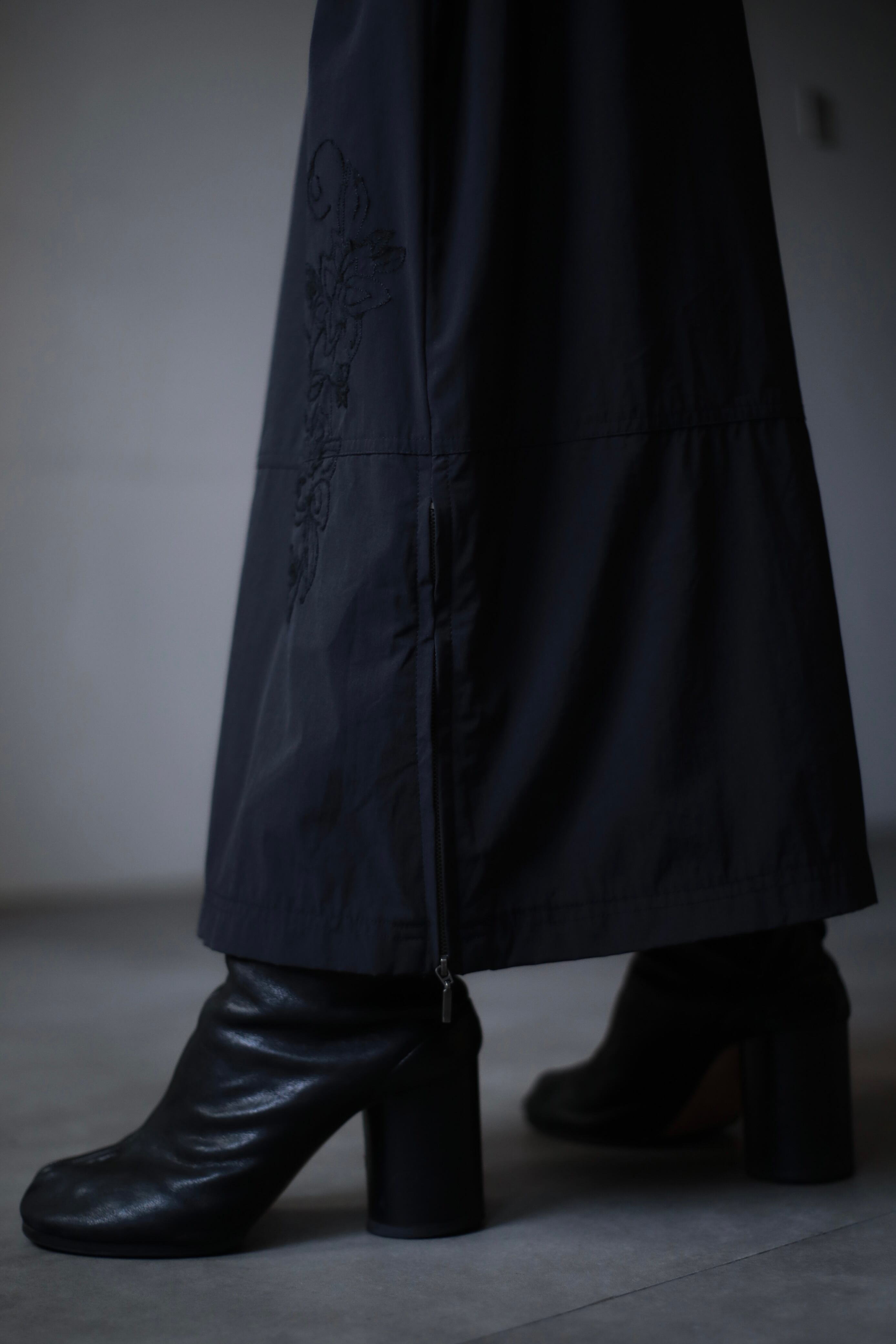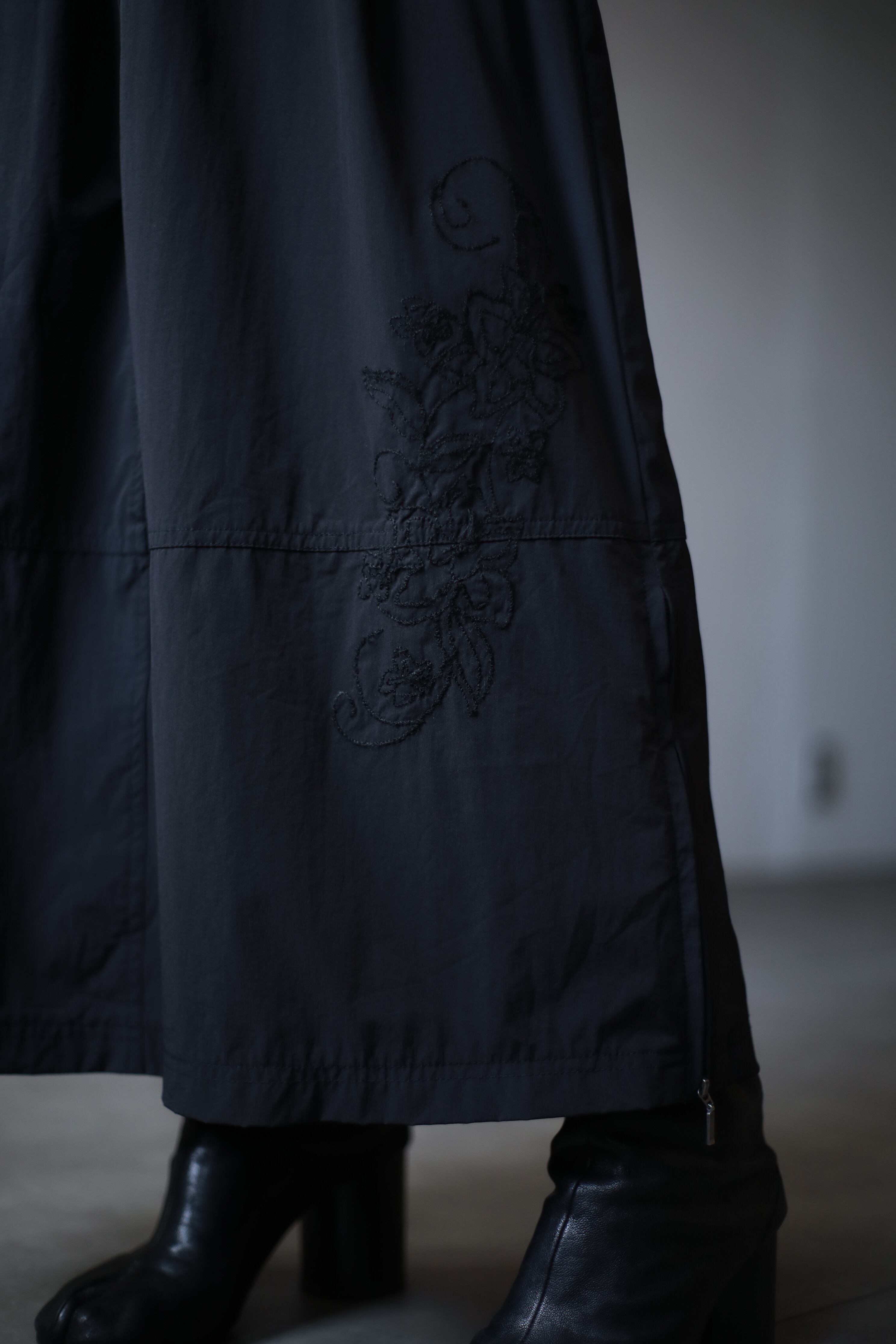 1990s~ euro nylon tech side zip embroidery design skirt