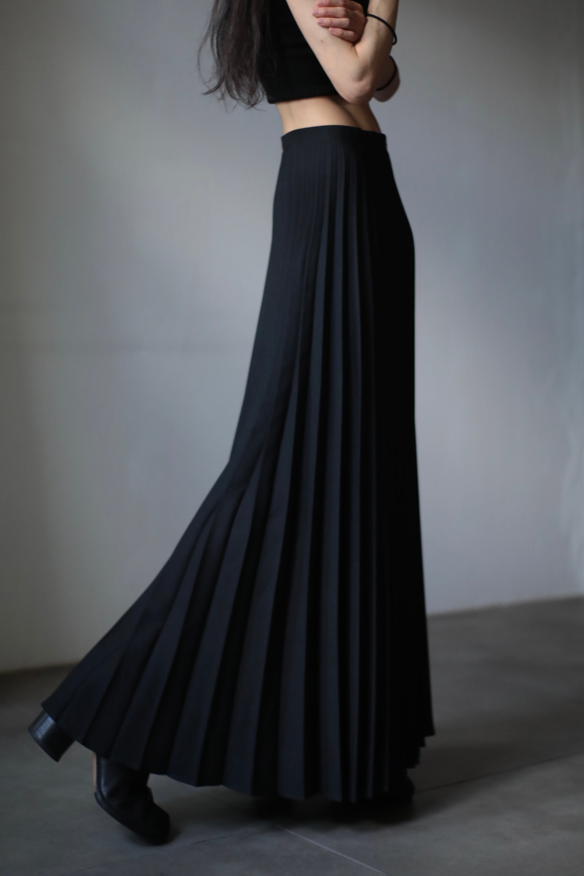 1980s~ volume silhouette accordion pleats design maxi skirt