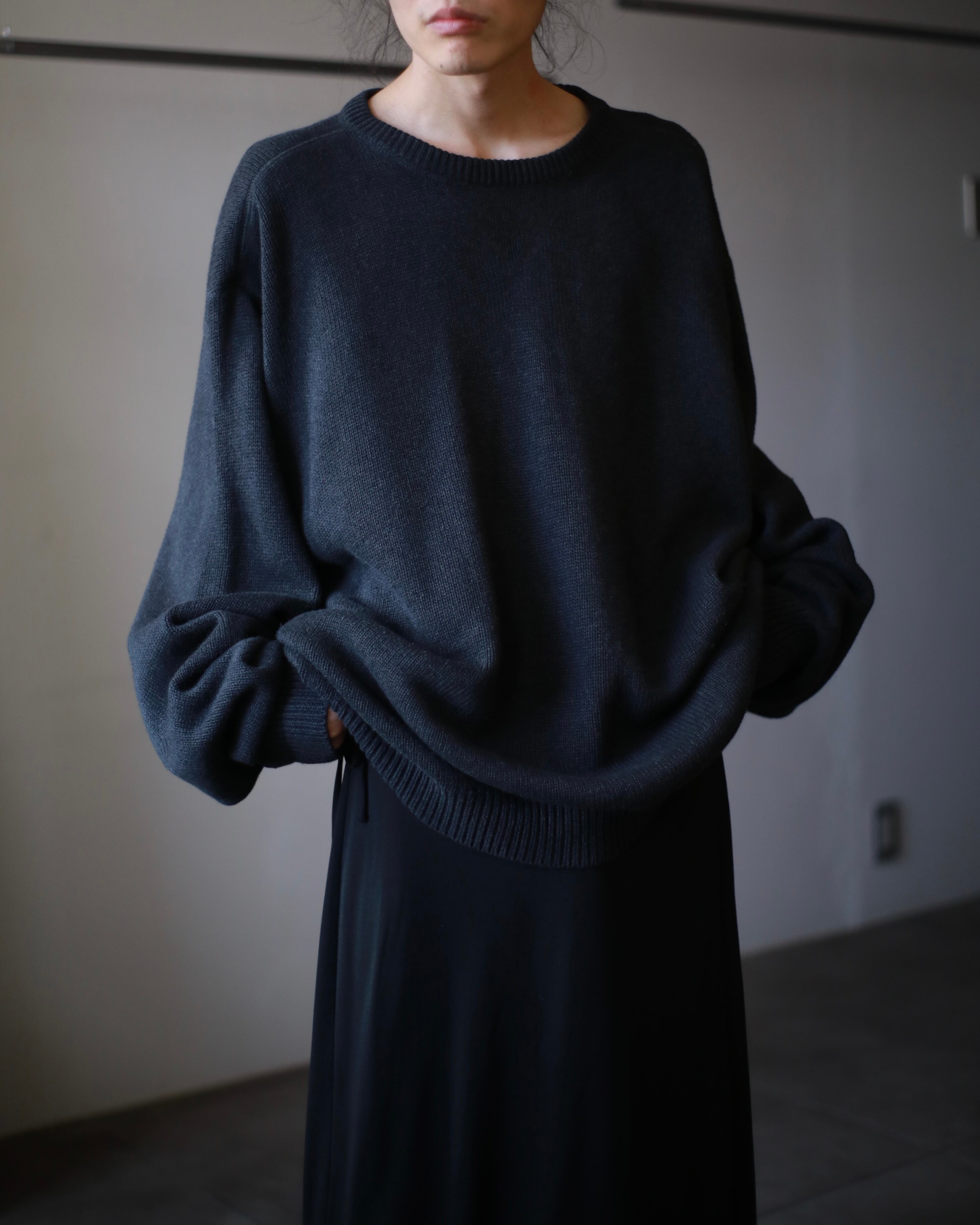 身幅が広くて着丈がそこまで長くない理想的なシルエット。アームホールなんかもゆとりがあって、ニットというかスウェットのような形です。