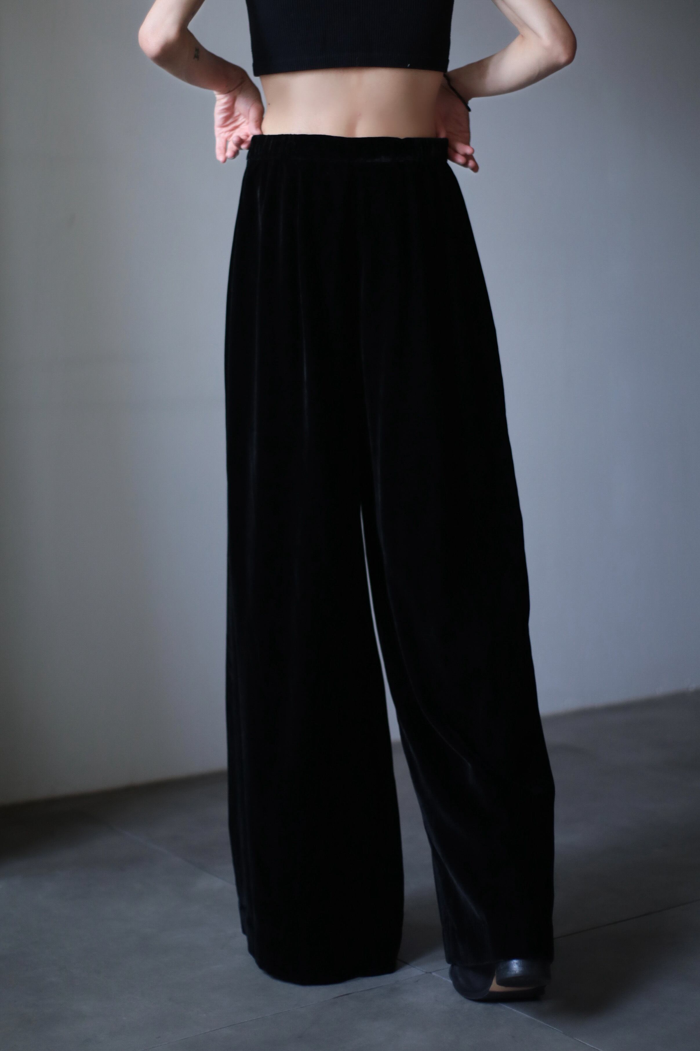 ベロアのパンツって探すと意外と細い物やテーパードばかりなのですが、こちらは裾までしっかりとボリュームのあるワイドストレートシルエット。