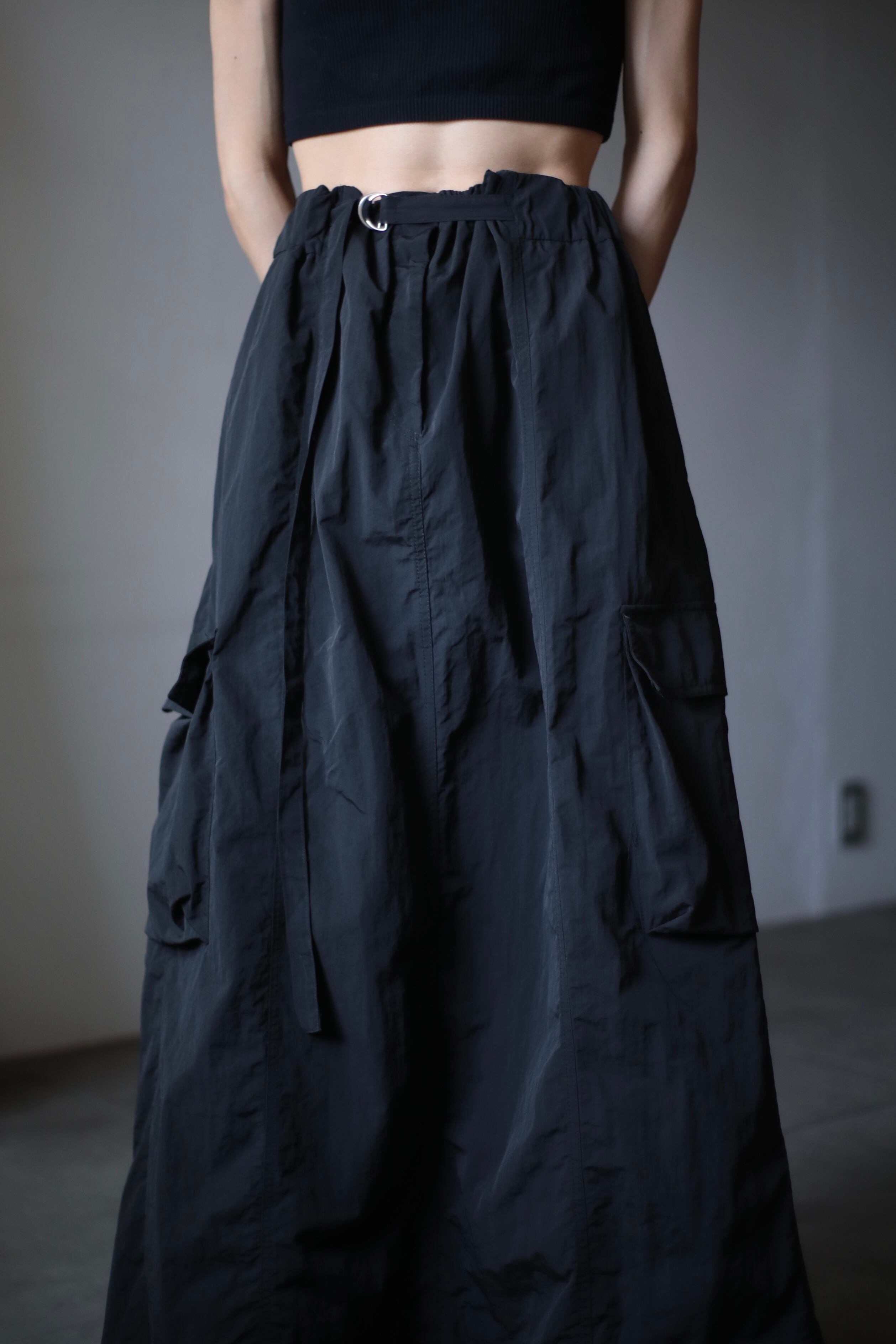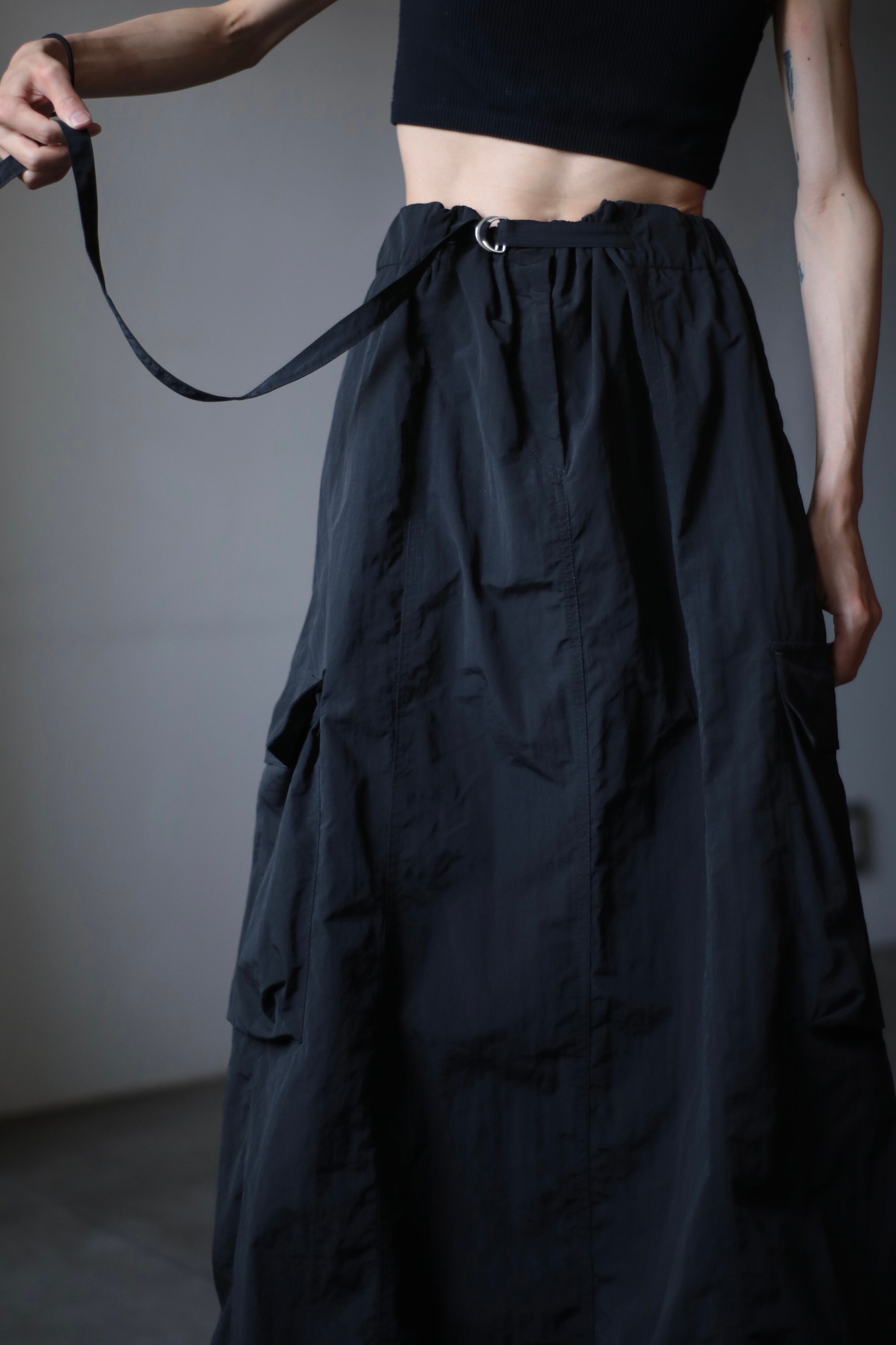 nylon tech volume silhouette cargo design skirt