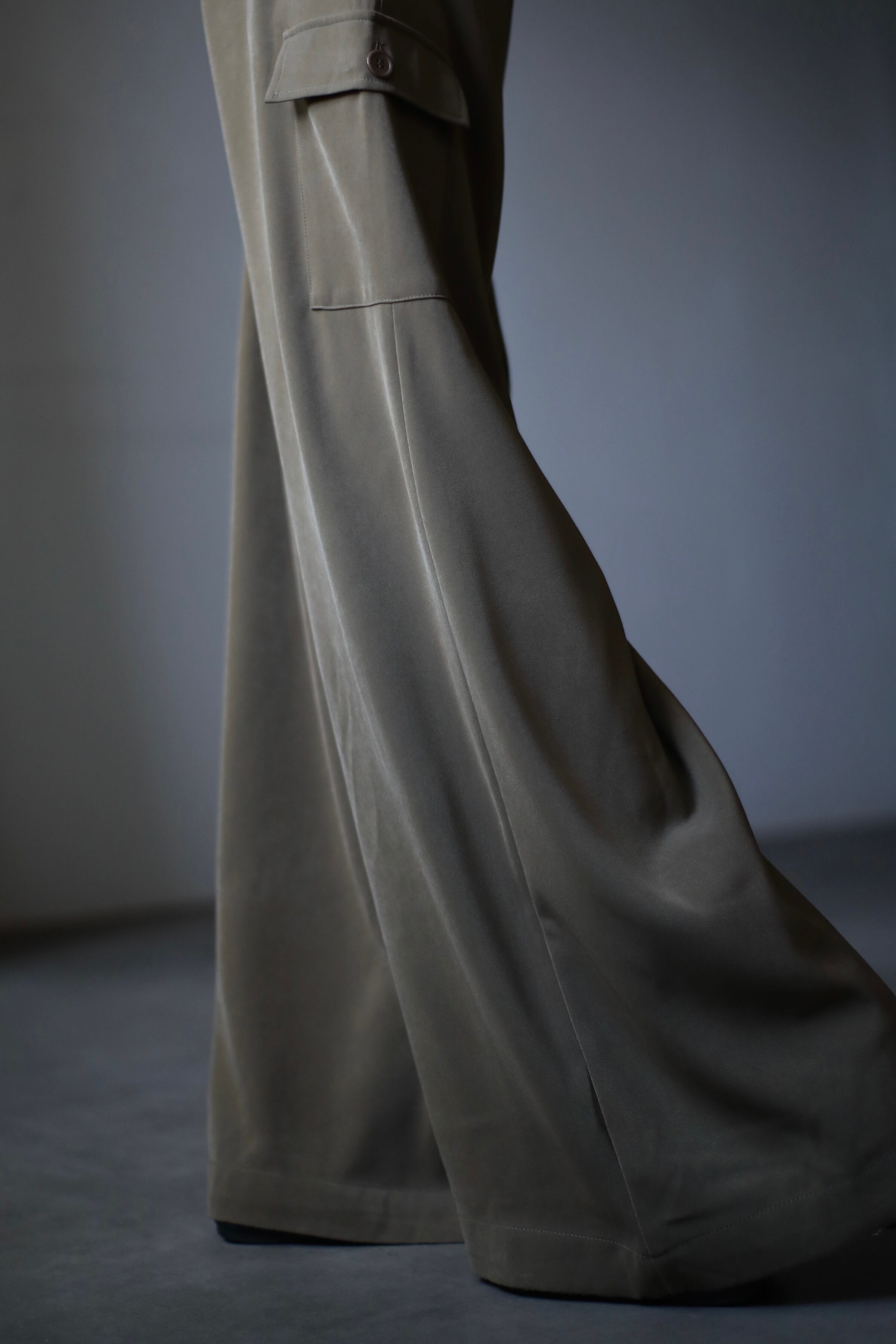 hi-waist 2tuck wide straight cargo design slacks toromi fabric