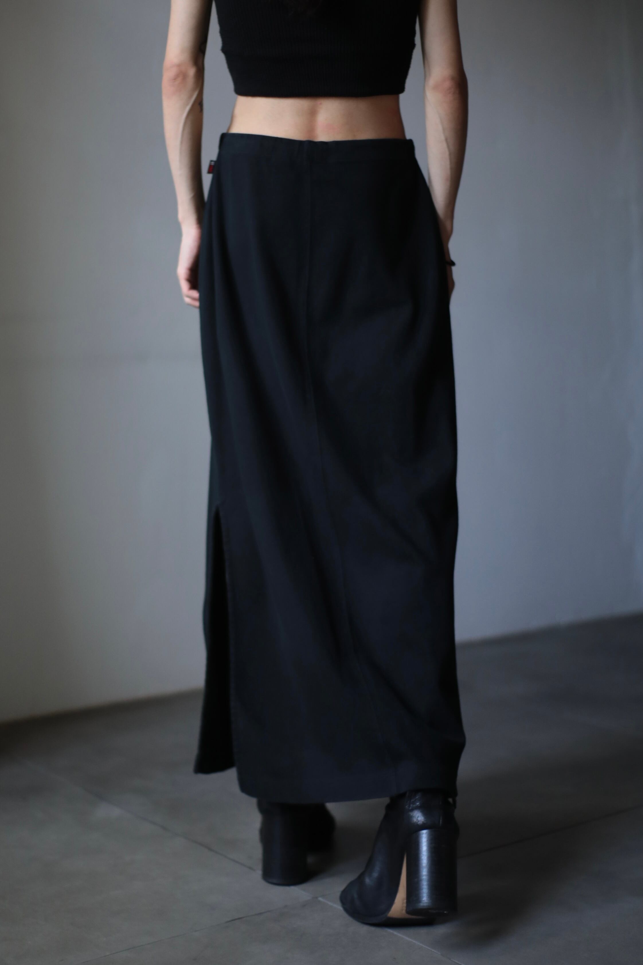 1990s sweat fabric side slit design long skirt