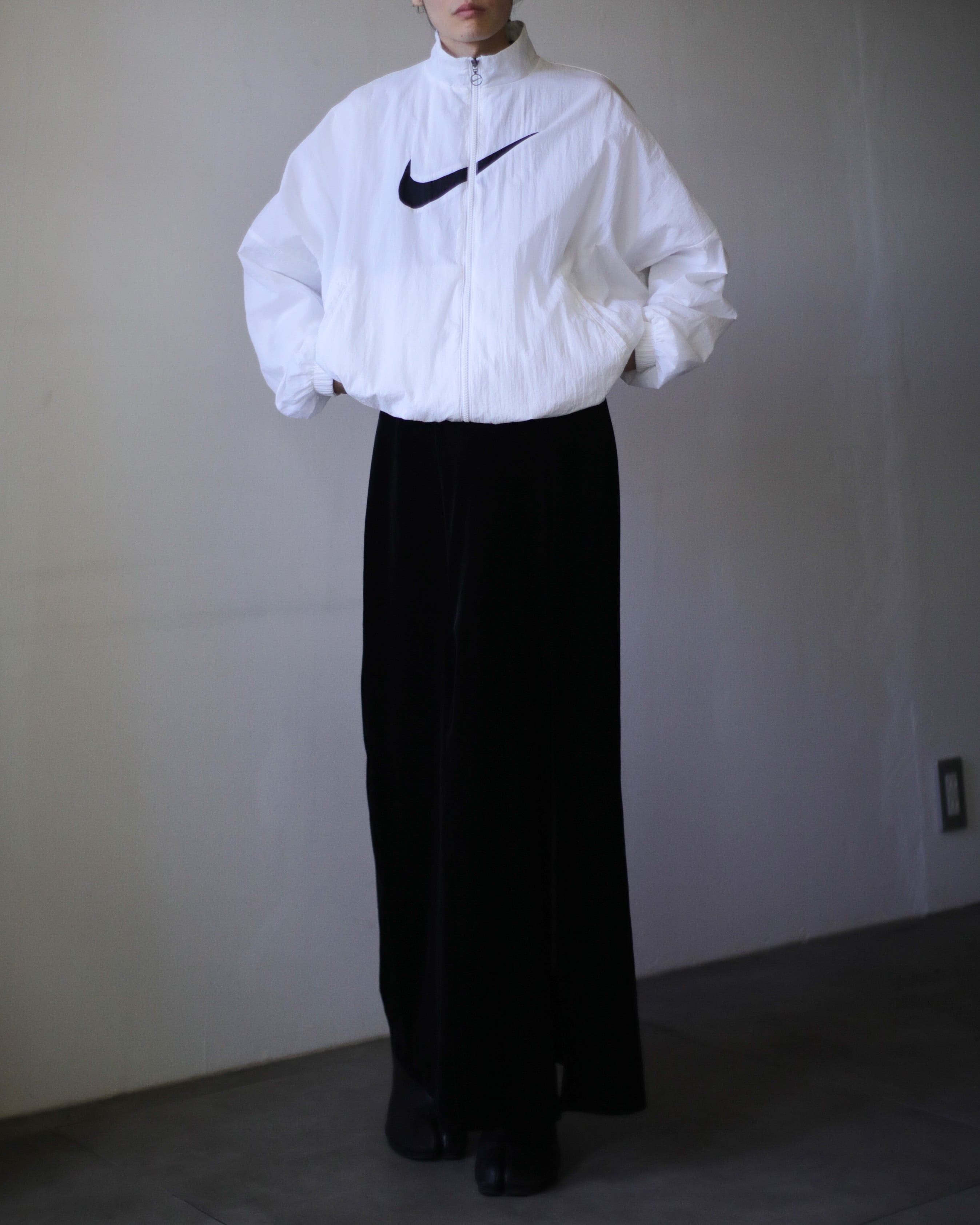 NIKE center swoosh design drop shoulder wide & short balloon silhouette nylon jacket