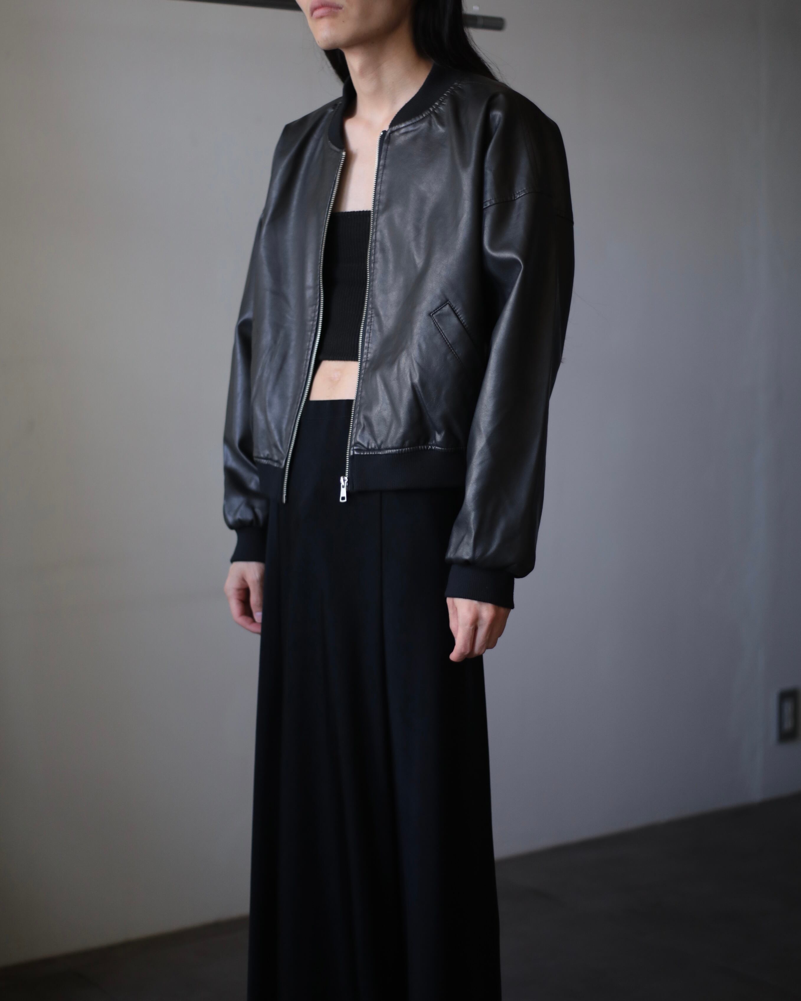 deadstock faux leather short & wide silhouette bomber jacket