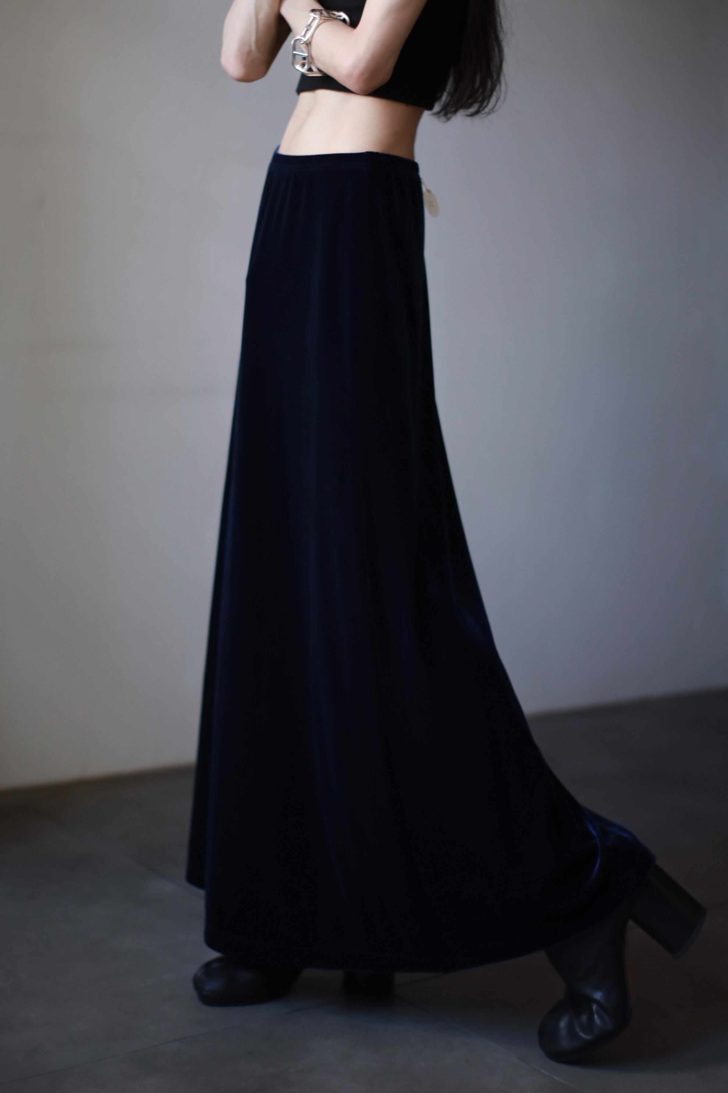 1990s velours deep blue color "daikei" long skirt