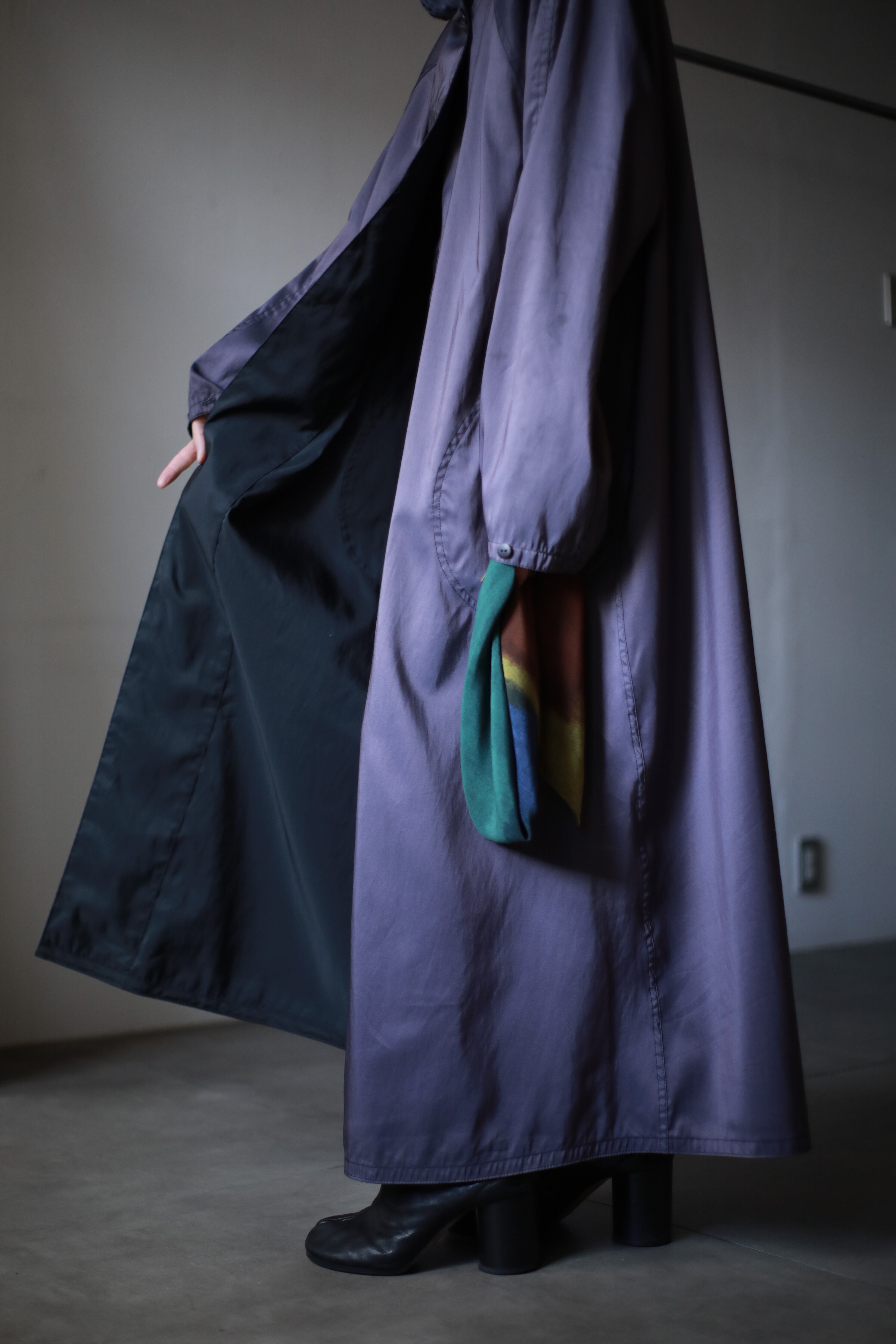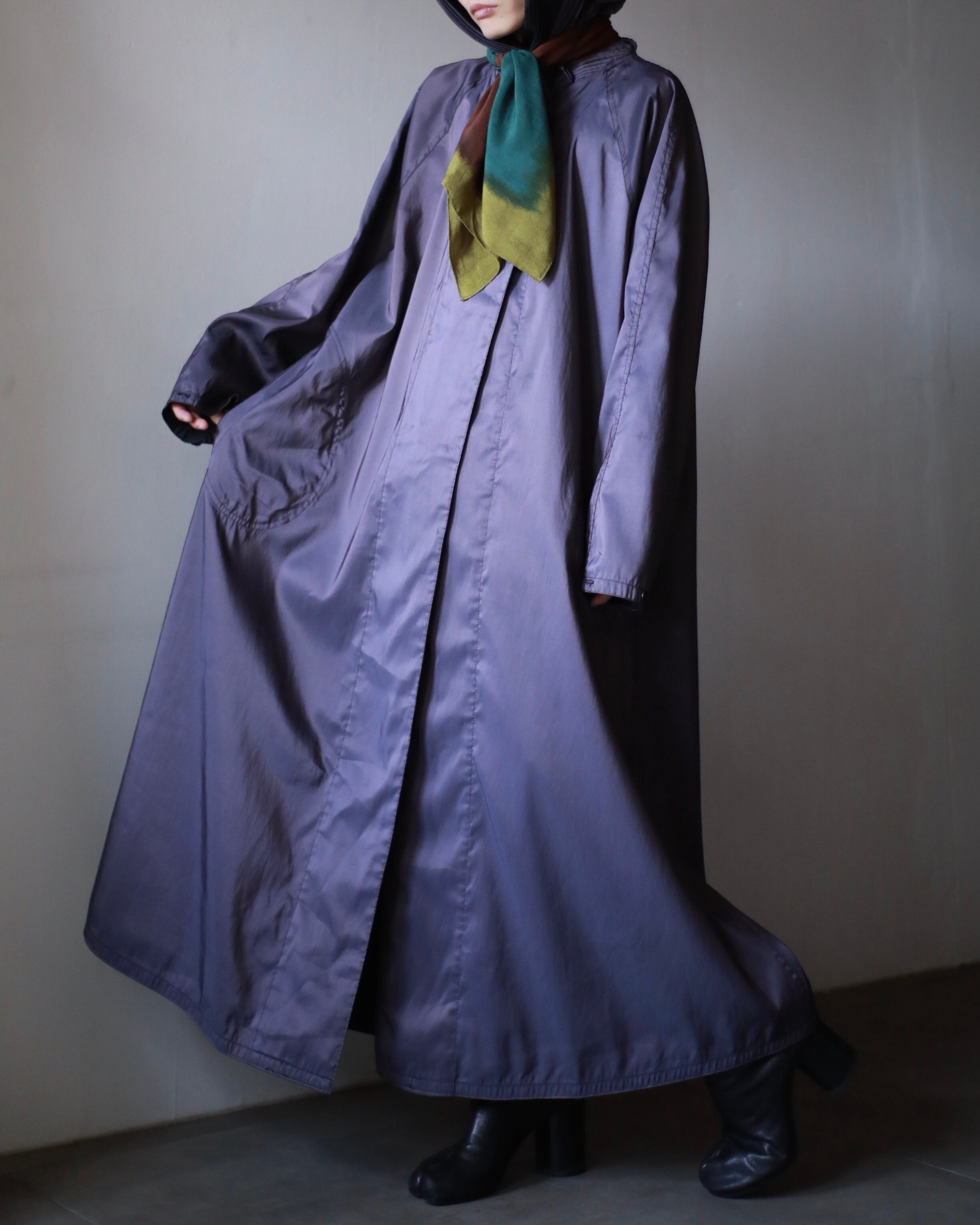 1990s reversible design nylon hooded pleats maxi coat Made In USA