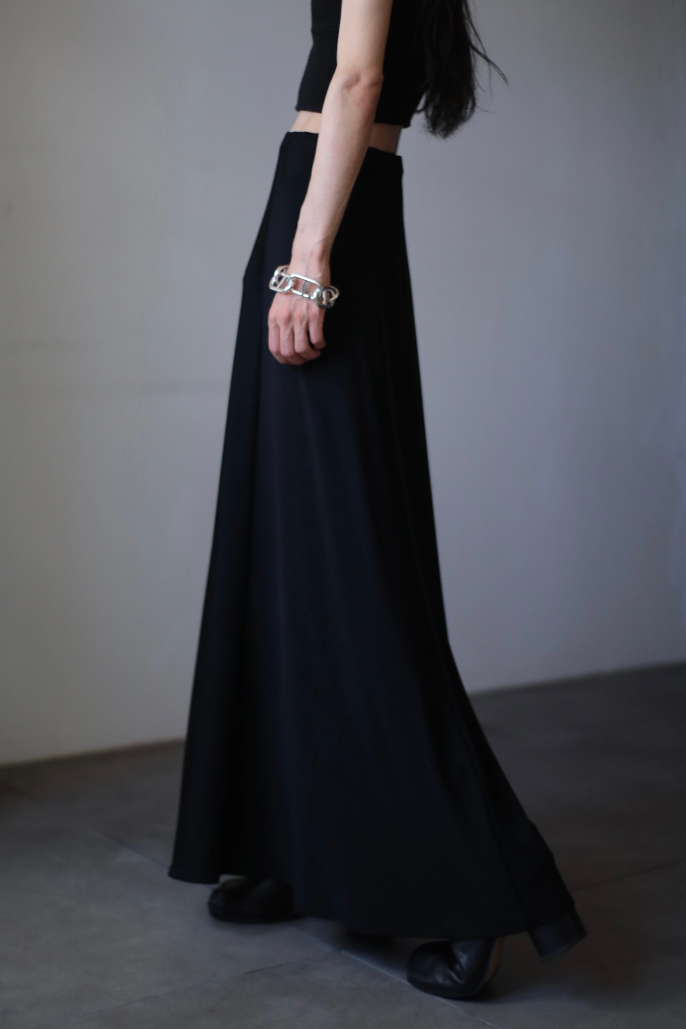 ドゥルドゥルとした縦横無尽にドレープする生地感が素晴らしいロングスカート。