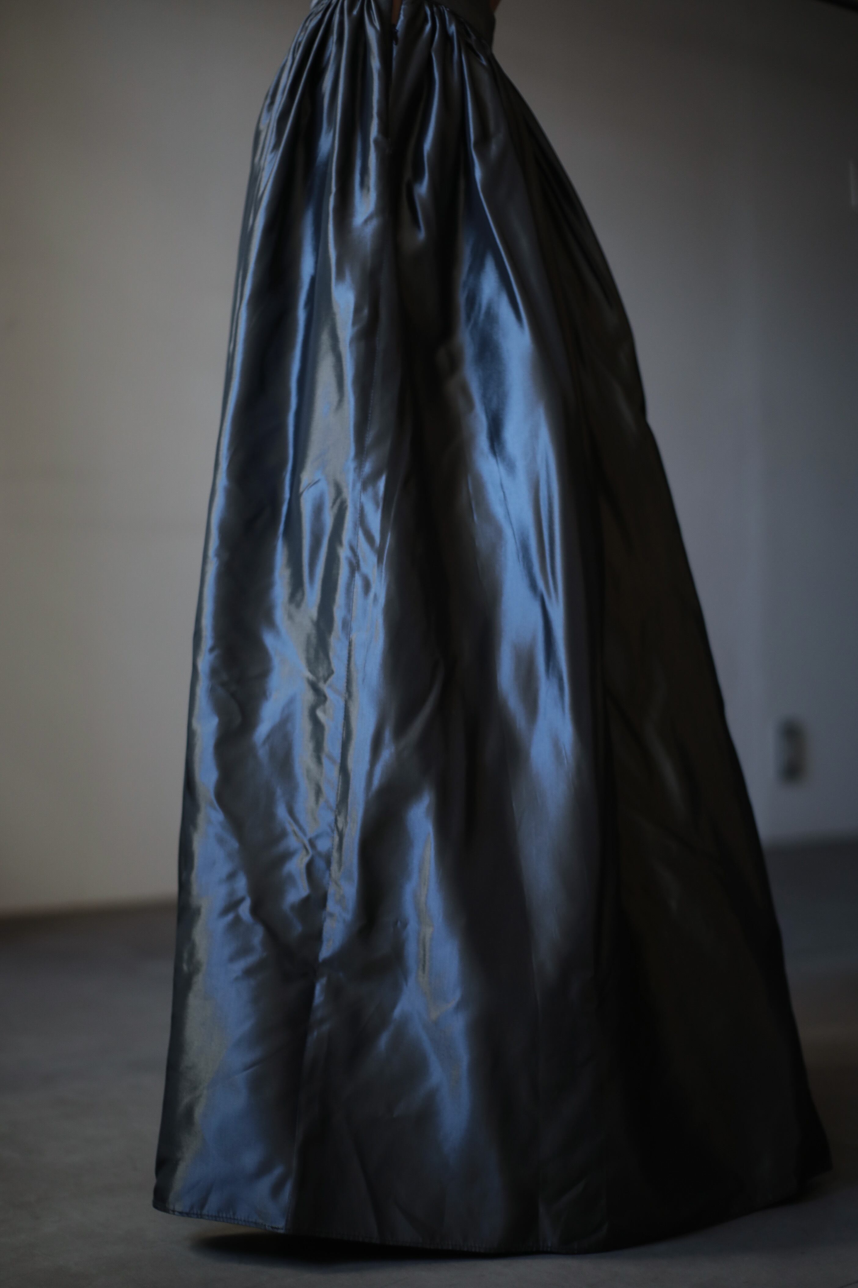1990s metallic fabric 360° gather tuck design volume maxi skirt
