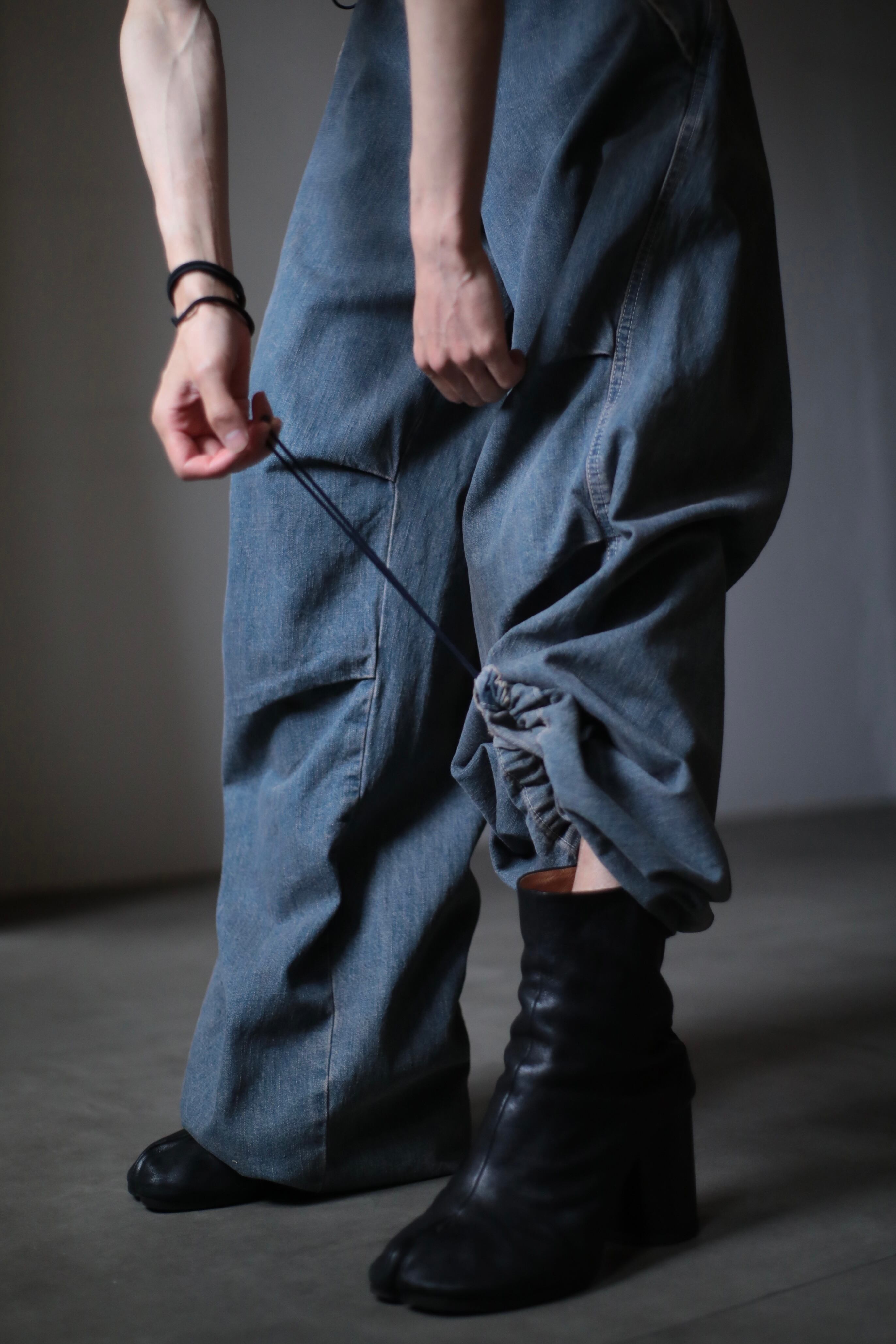 膝周りのアクションプリーツデザインがめっちゃ良いです。デニム生地は本来厚くてゴアゴアするのでこのディテールは用いられることはないですが、