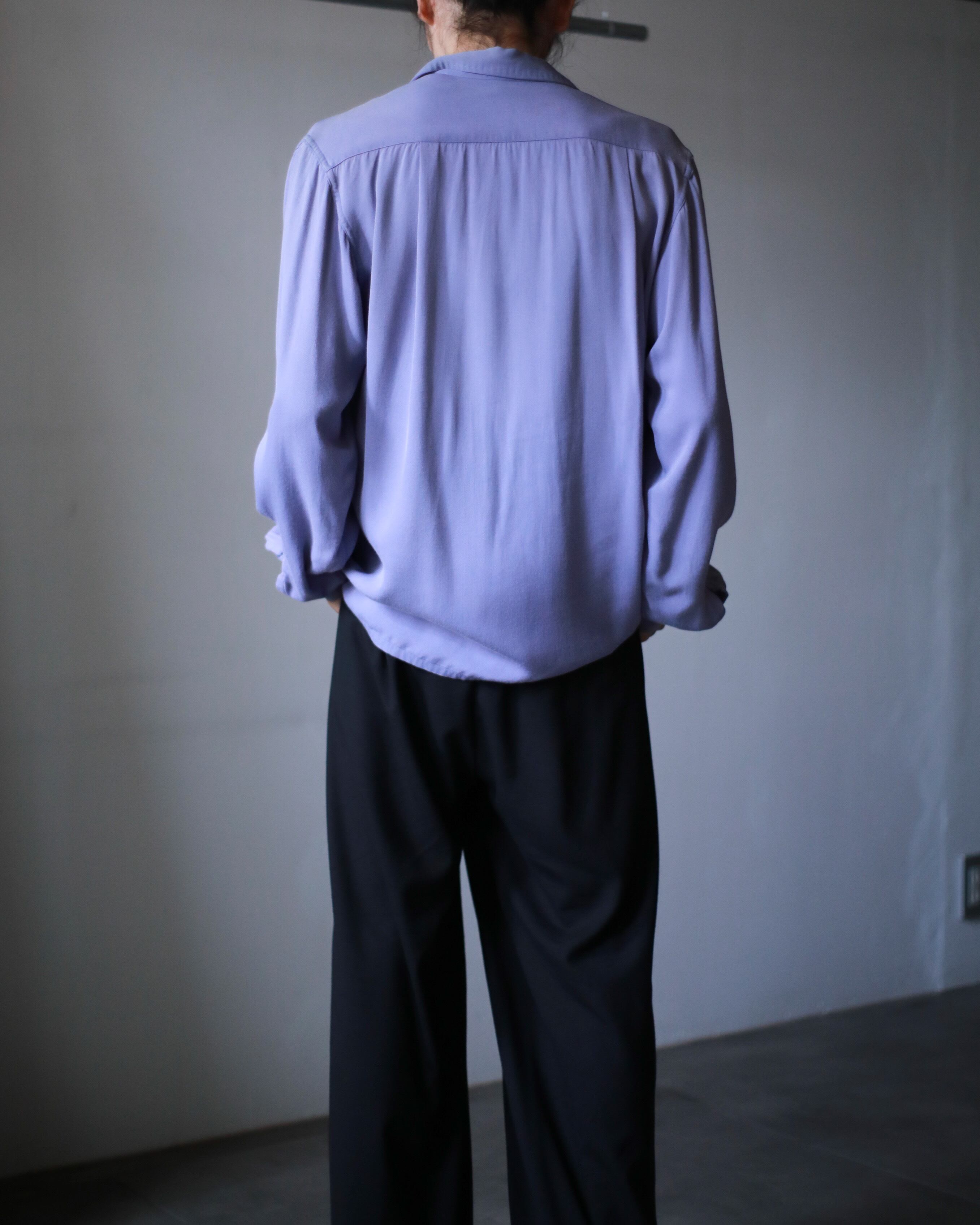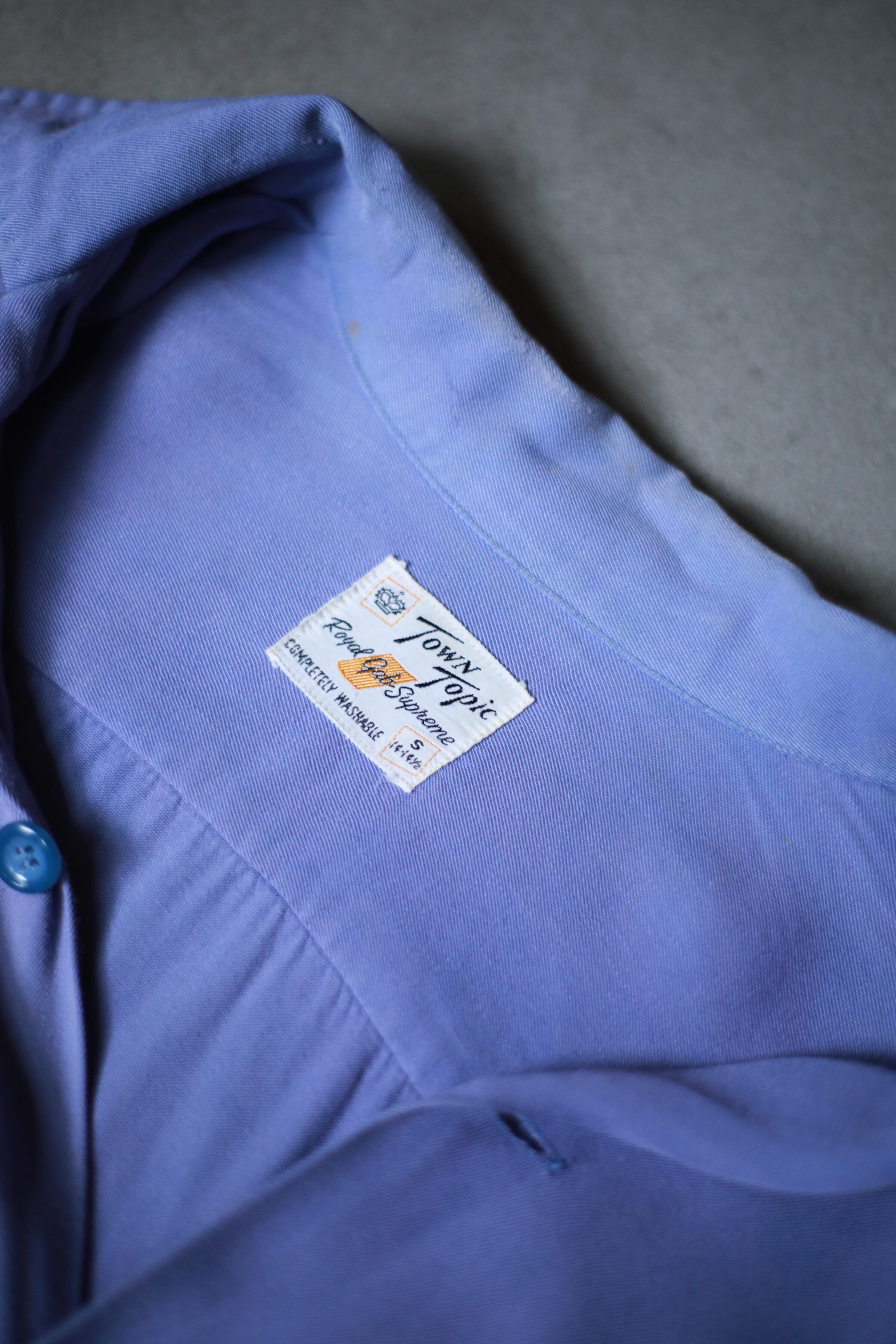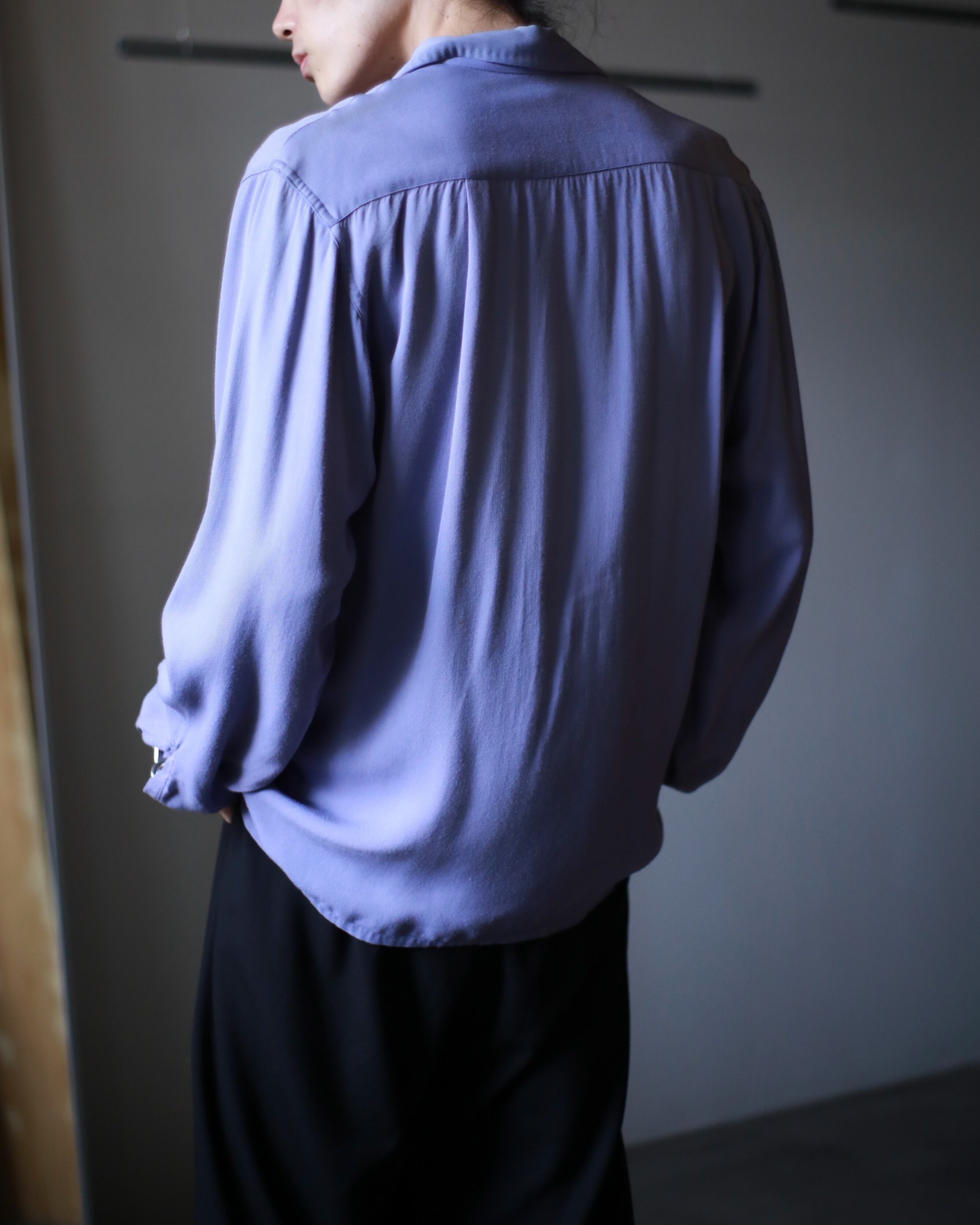1950s vintage rayon gabardine box silhouette loop open collar shirt fade lavender