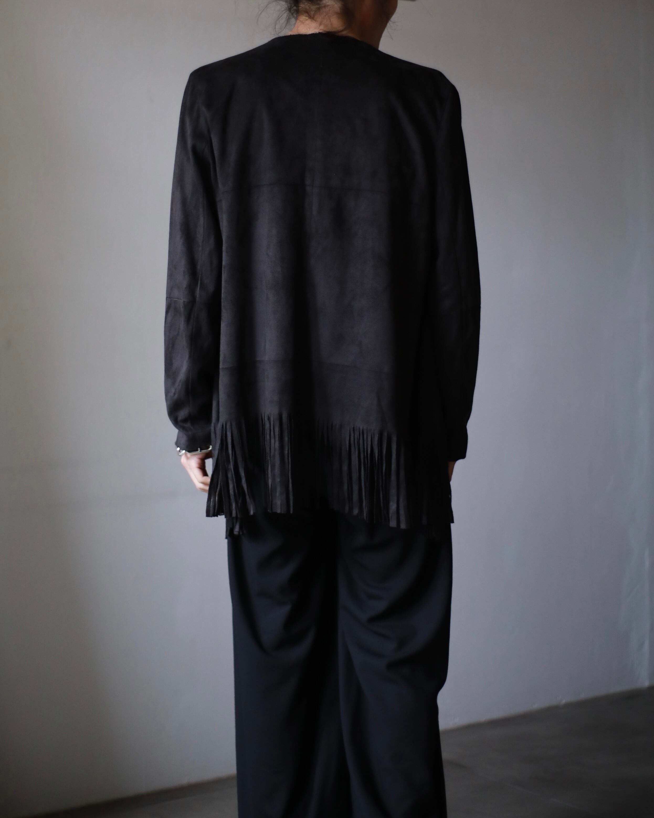 fringe collor less design faux suède jacket
