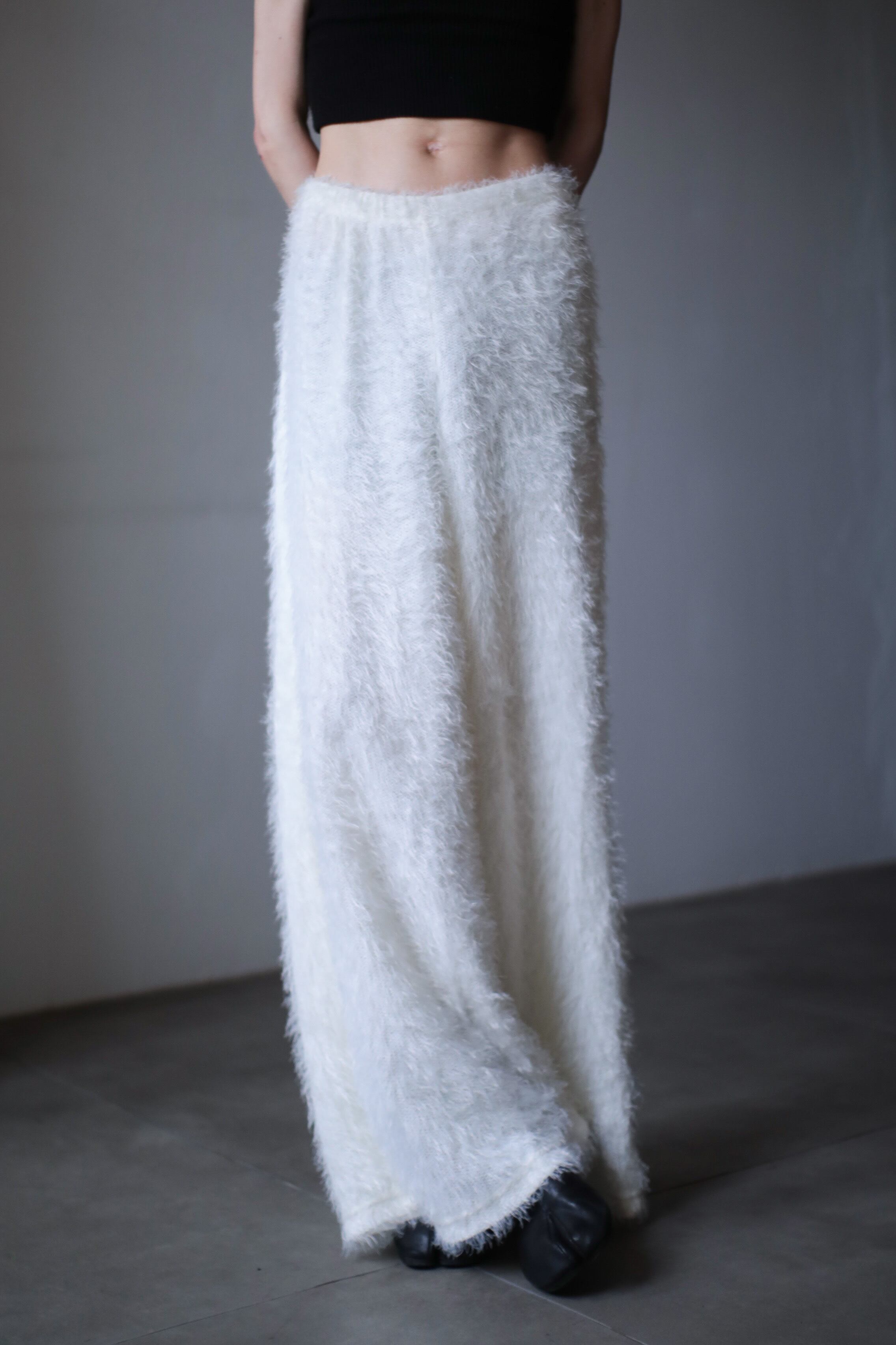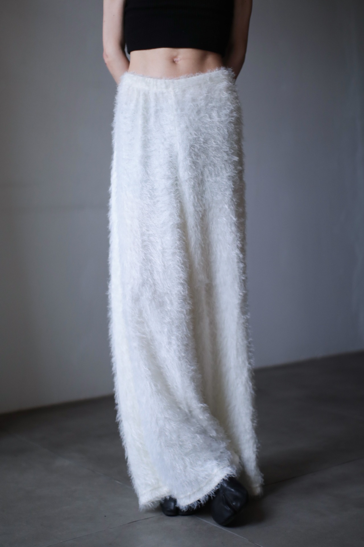 shaggy long hair moke moke "gokubuto" wide straight knit pants white