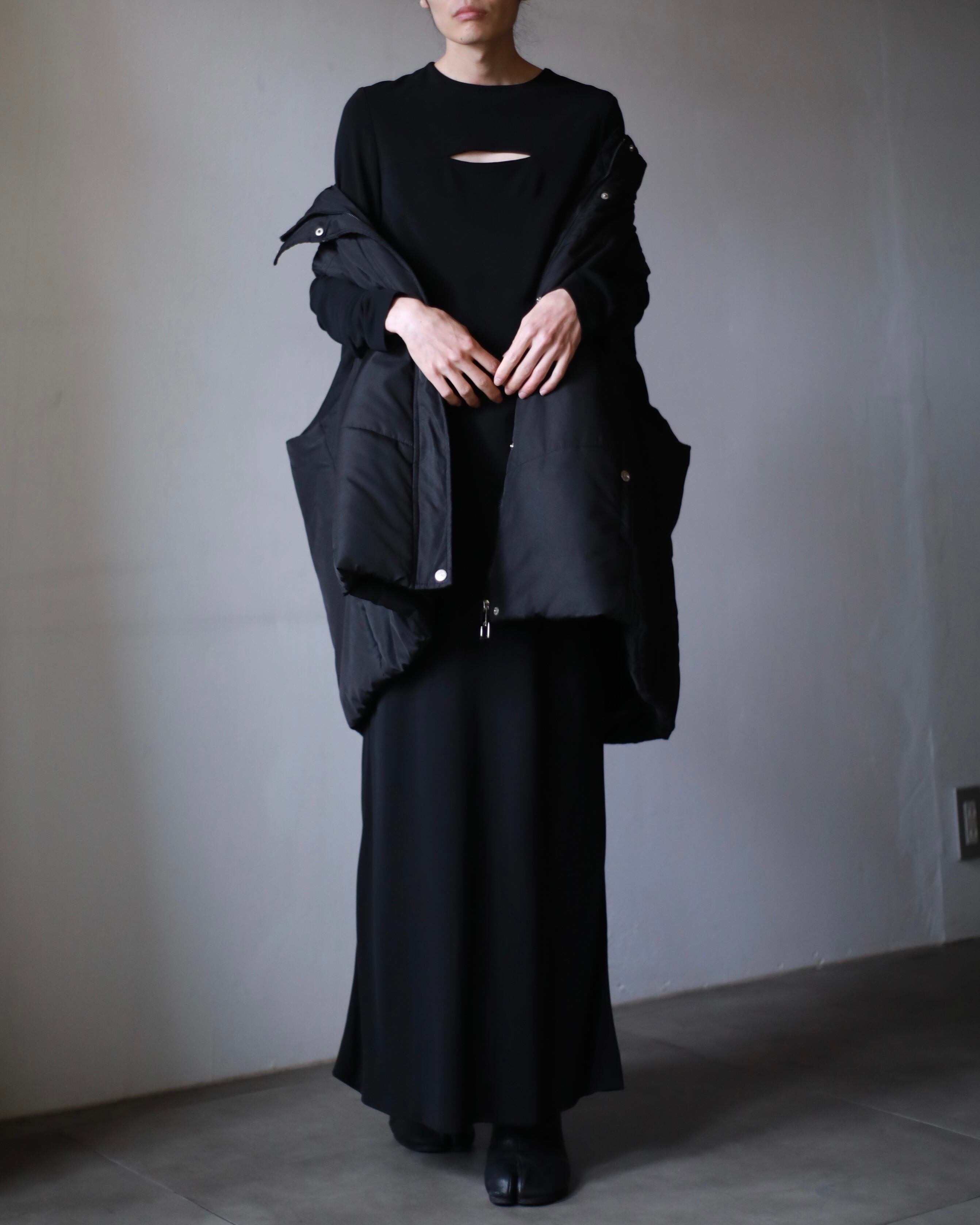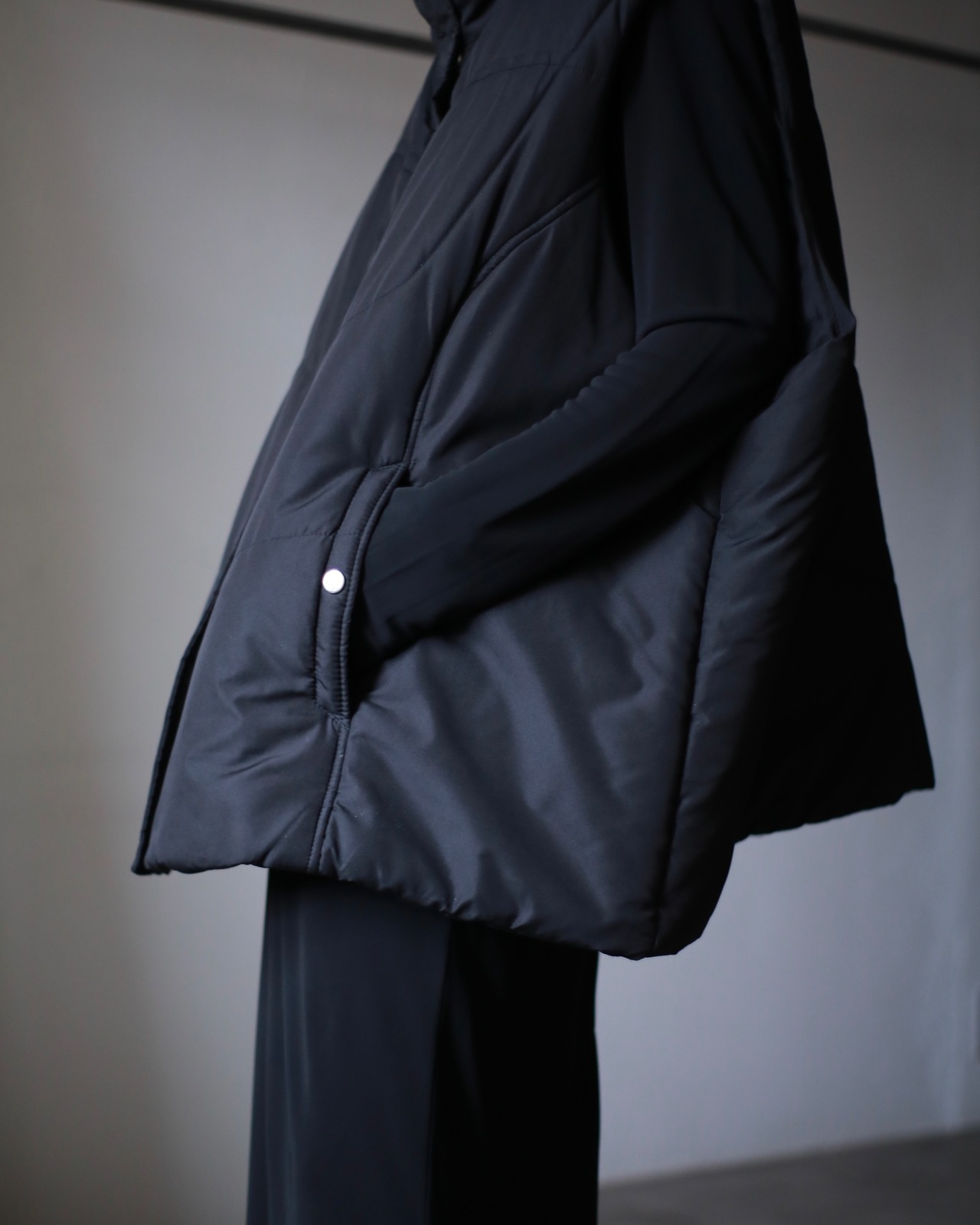 表地はとろんとした滑らかなポリ生地でモードな感じ。中にもしっかり綿が詰まっていて軽くて暖かいです。