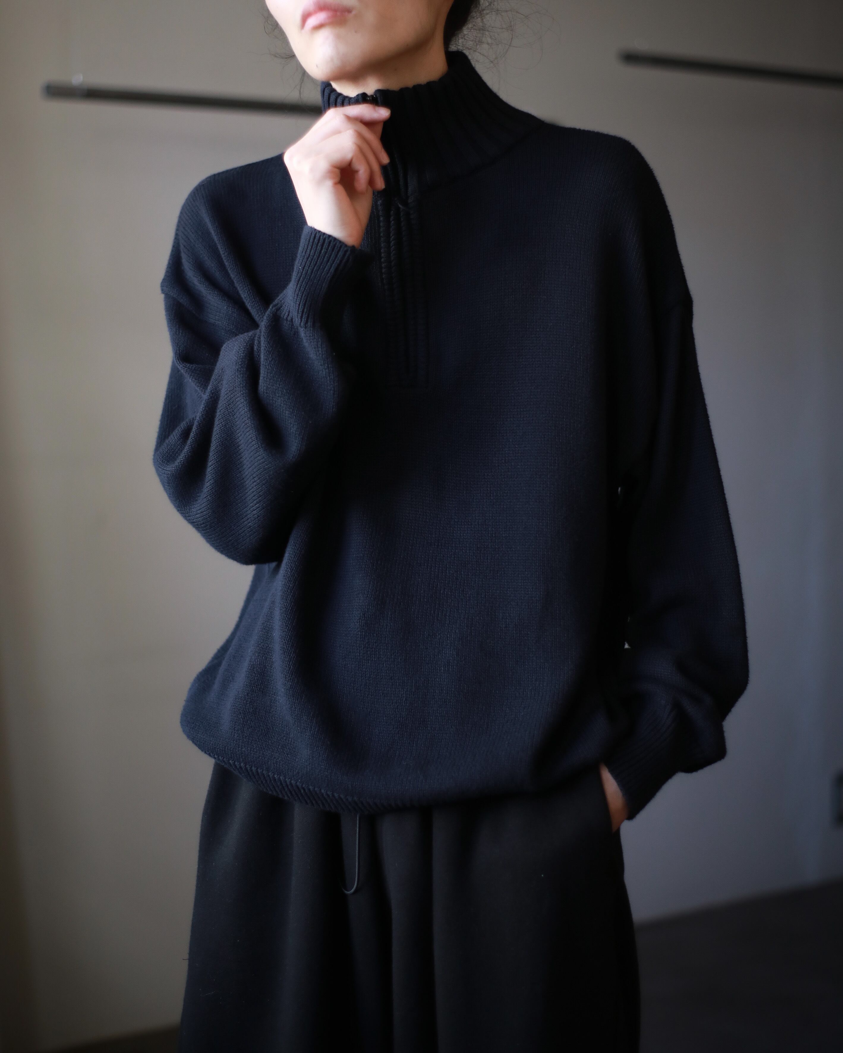 ネックがキュポっとなる形の良いハイネックデザインにハーフジップ仕様。
