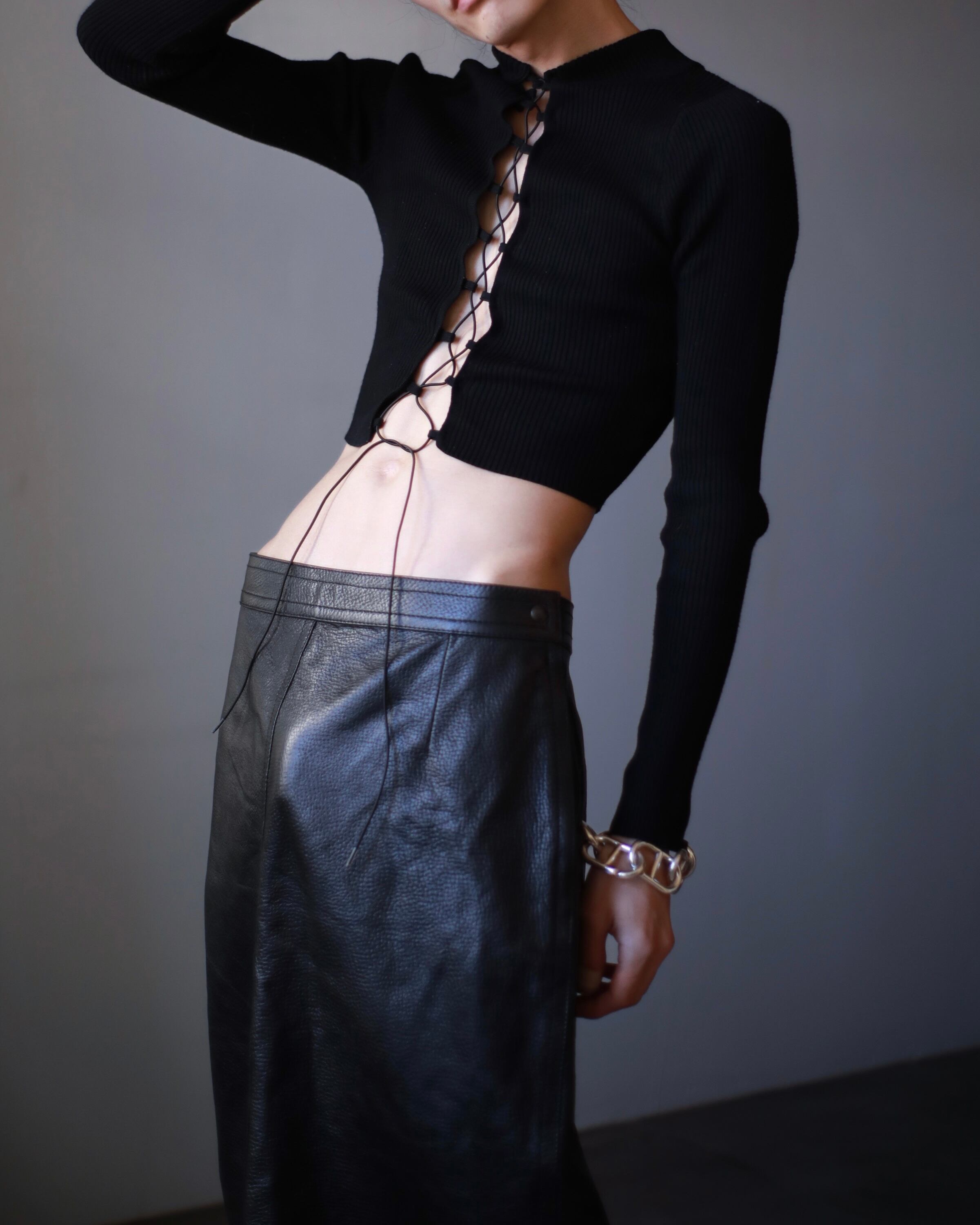 center lace up "ami ami" tech drawstring design rib tight knit