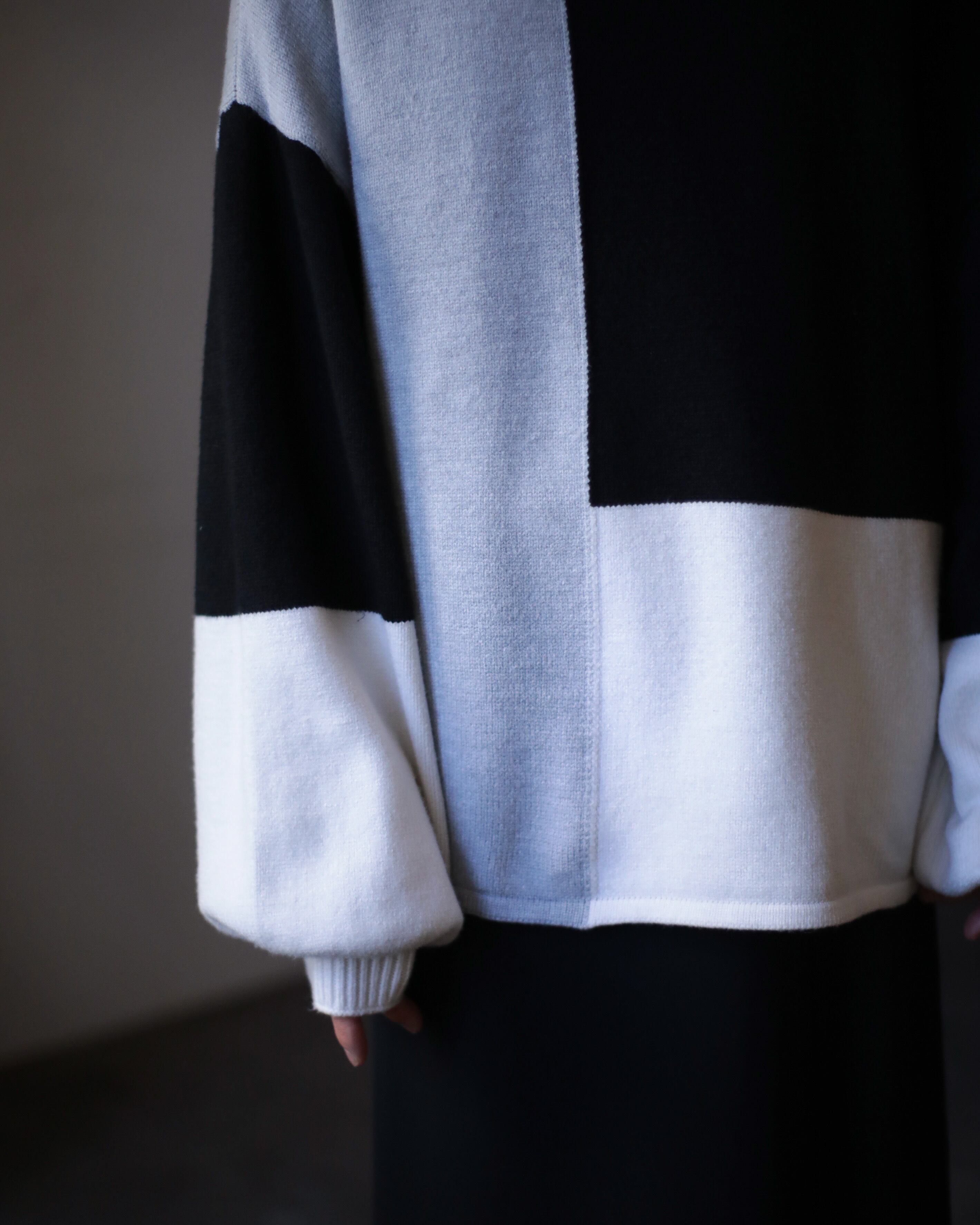 モノトーンにグレーを混ぜたモードでアンニュイなカラーリングと各色の配置がとても良い完成度の高いアイテムです。