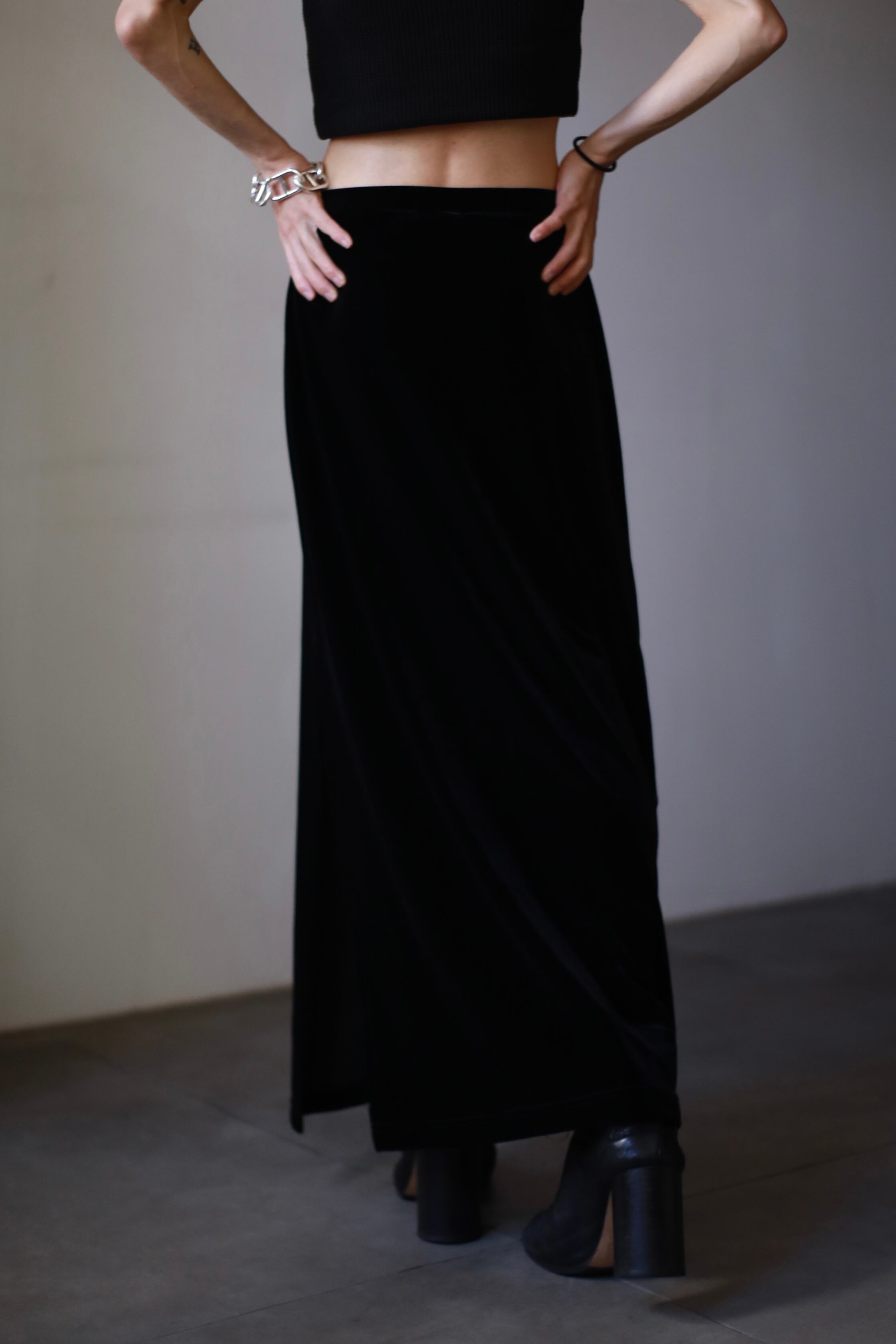 1990s velours slit design long skirt