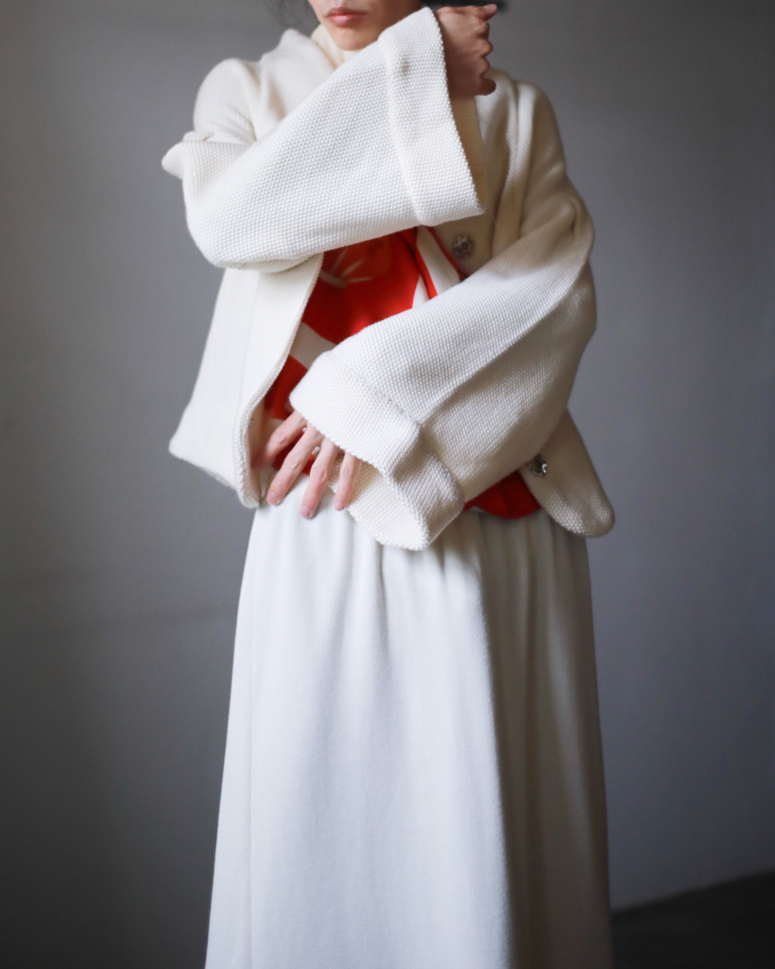 1990s flare sleeve "poco poco" fabric short length hi-neck jacket