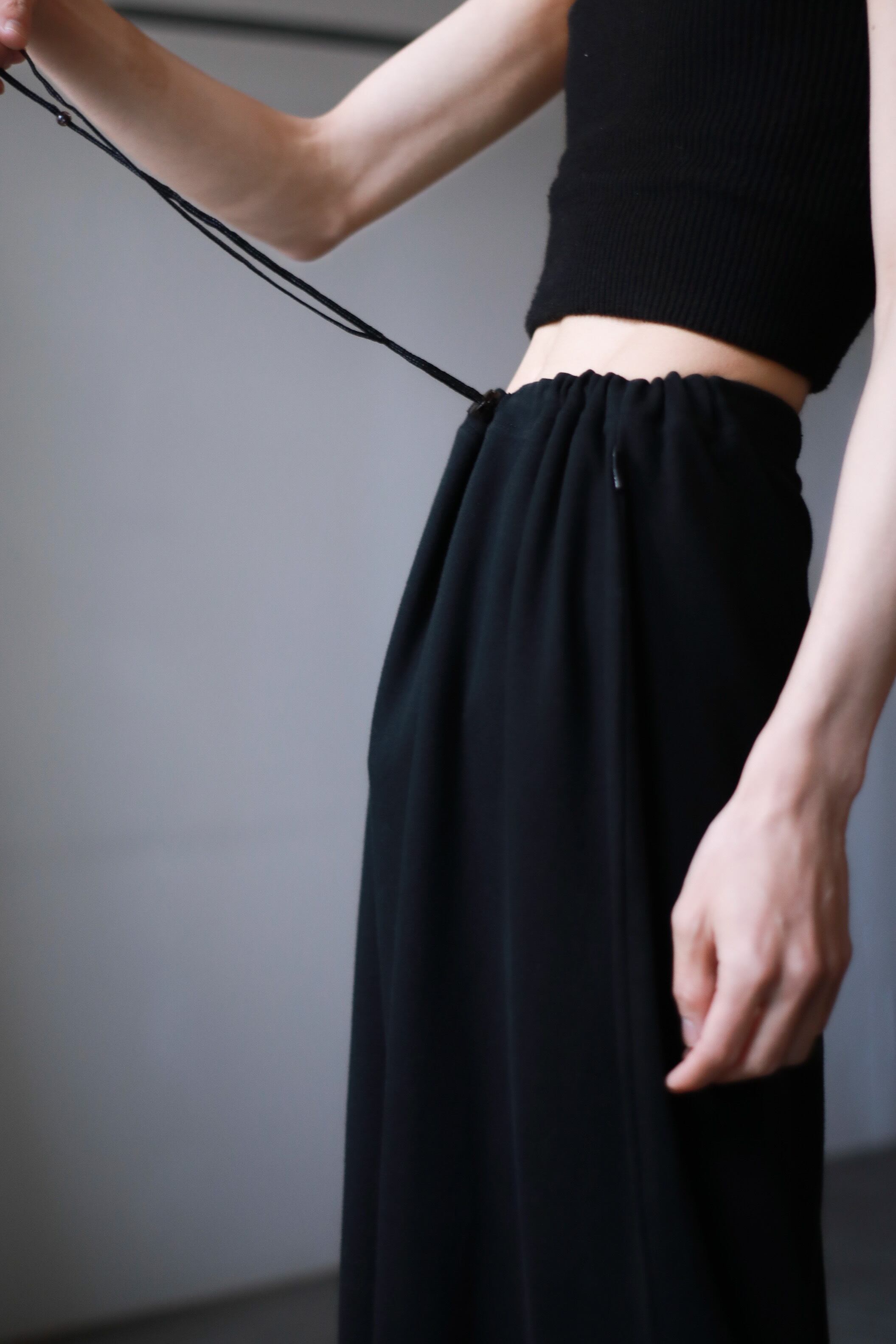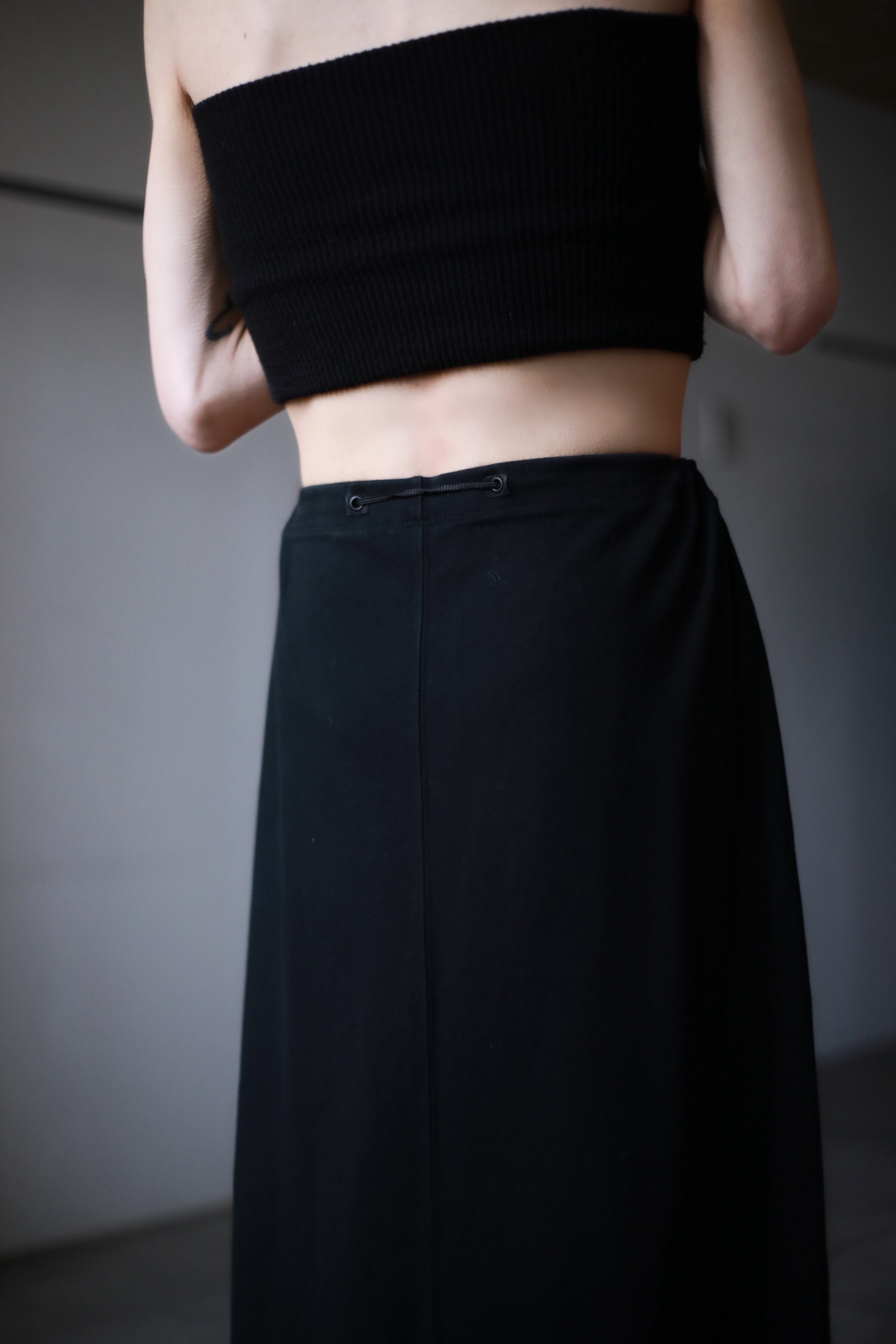 1990s sweat fabric hi-waist drawstring long skirt side slit design