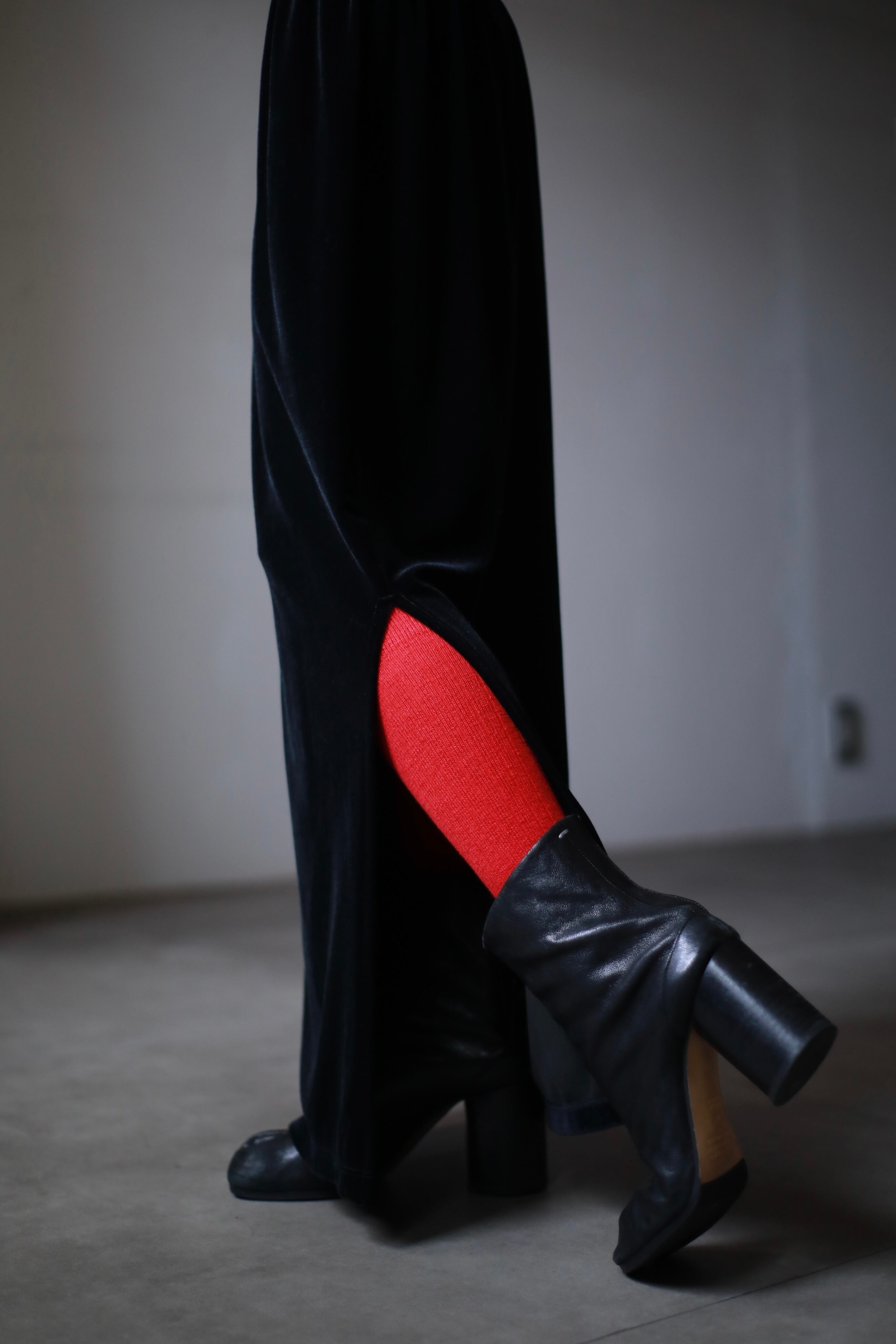 光沢感のある深いブラックカラーがベロアらしいです。ベロアの黒って他の黒とは別物だと思っていてこの感じの黒がモードで昔から好きなのです。