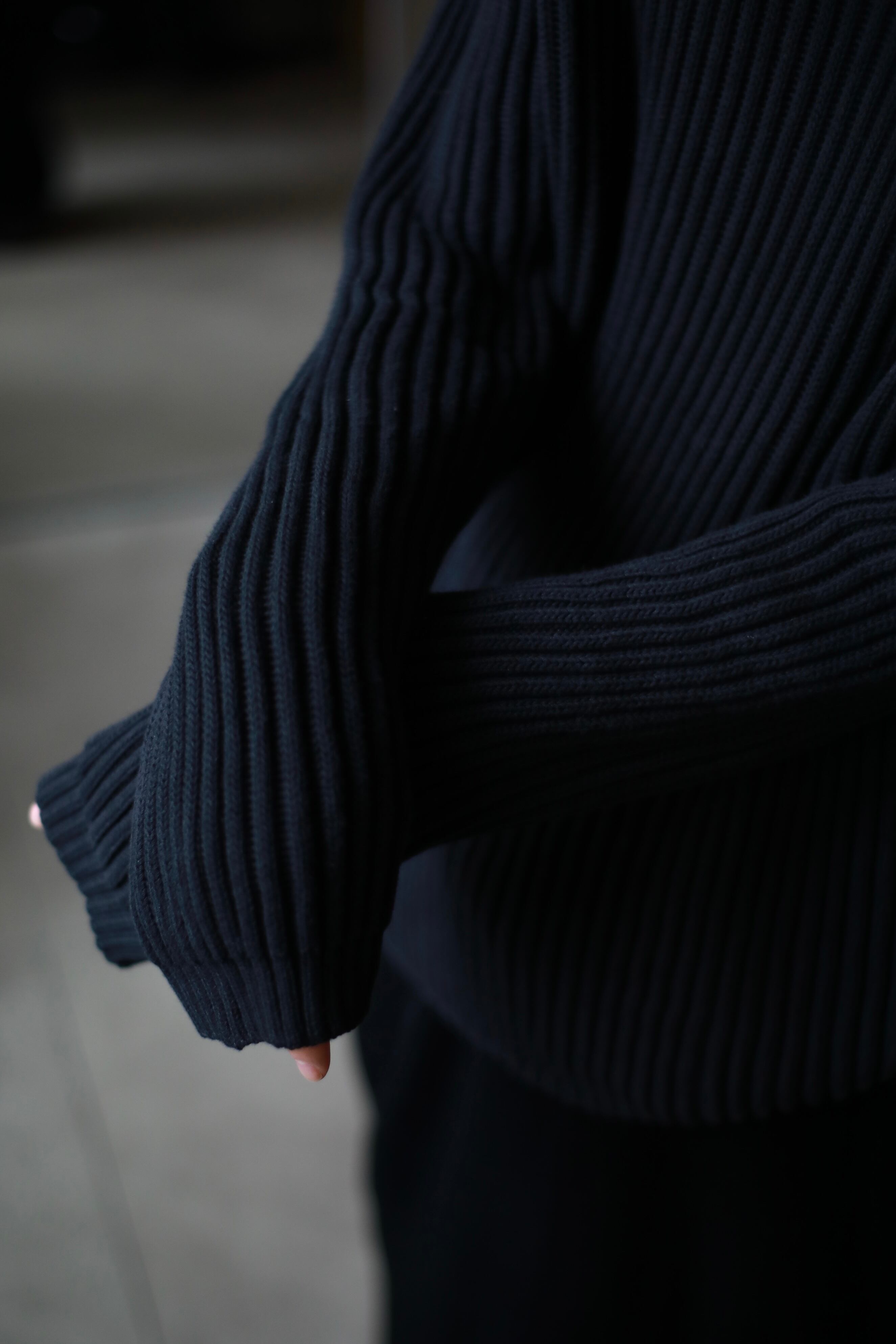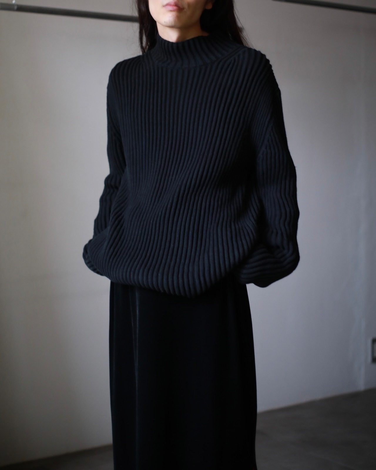 太い系で編まれたチャンキーニットというのも凄すぎて、立体的な奥行きのある見た目でブラック無地ながら一枚で着た時の完成度の高さが半端じゃないです。
