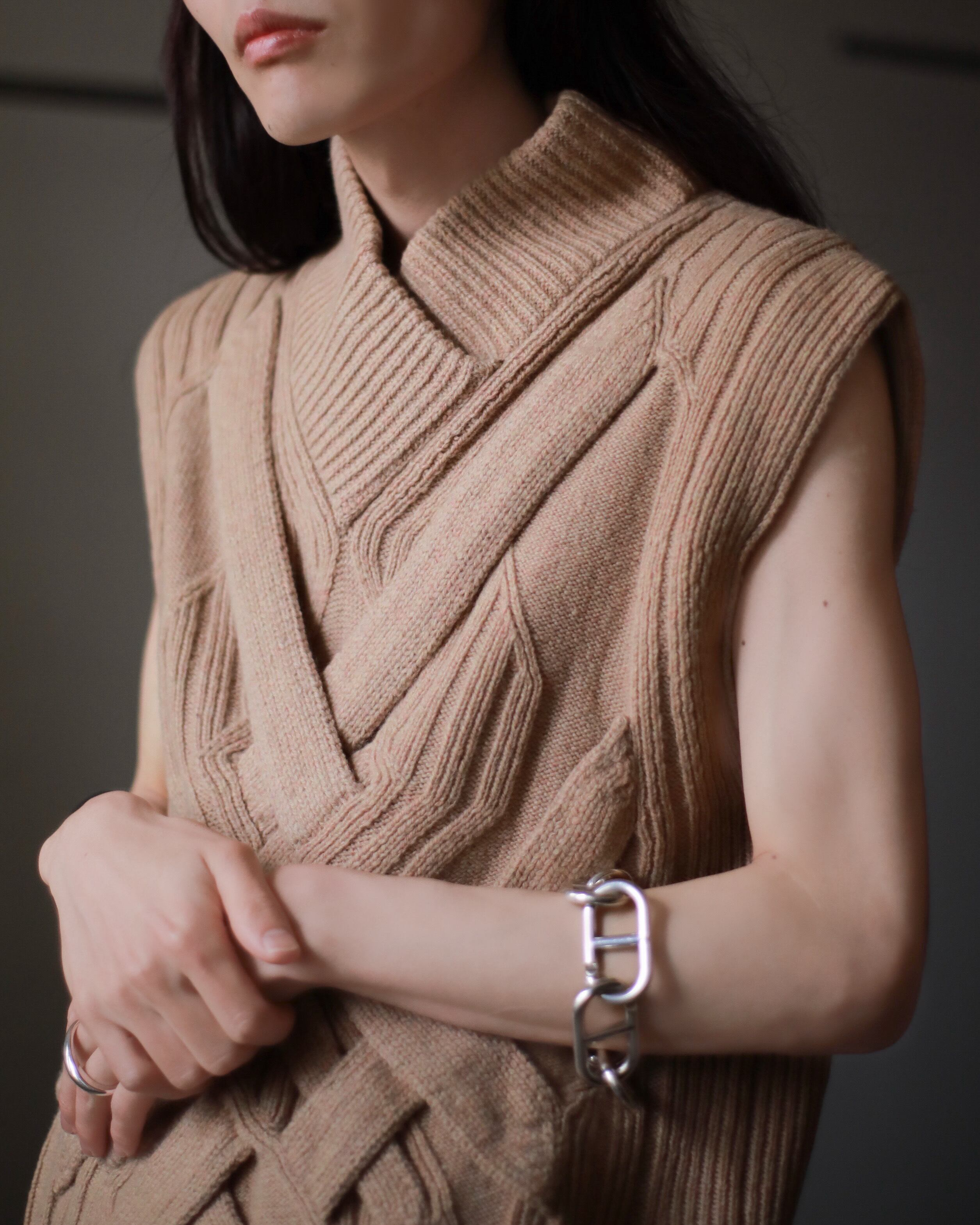 3.1 Phillip Lim cashmere mix chunky 3D design no sleeve knit top