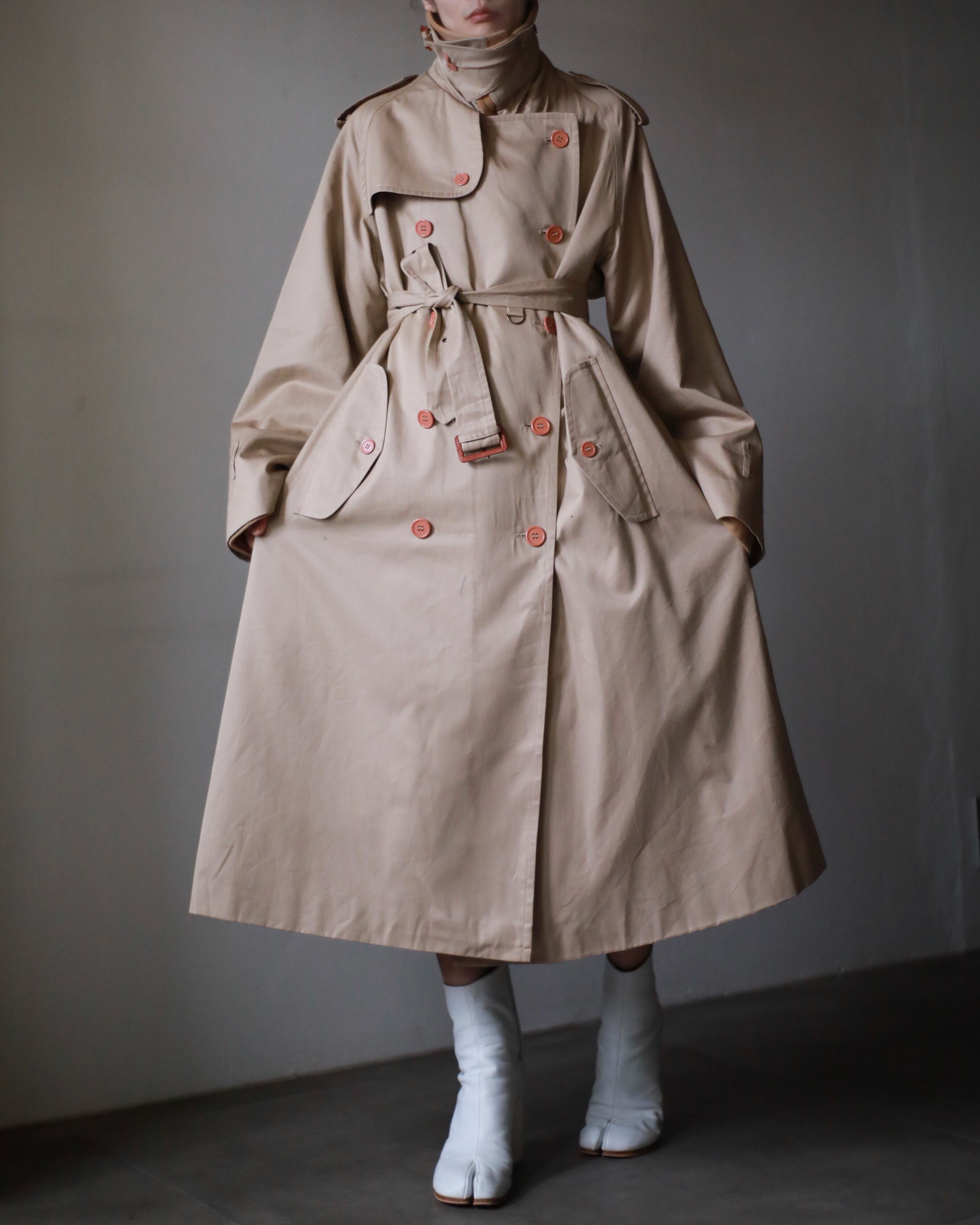 1990s "ichimaisode" gabadine double breasted belted trench coat oversized