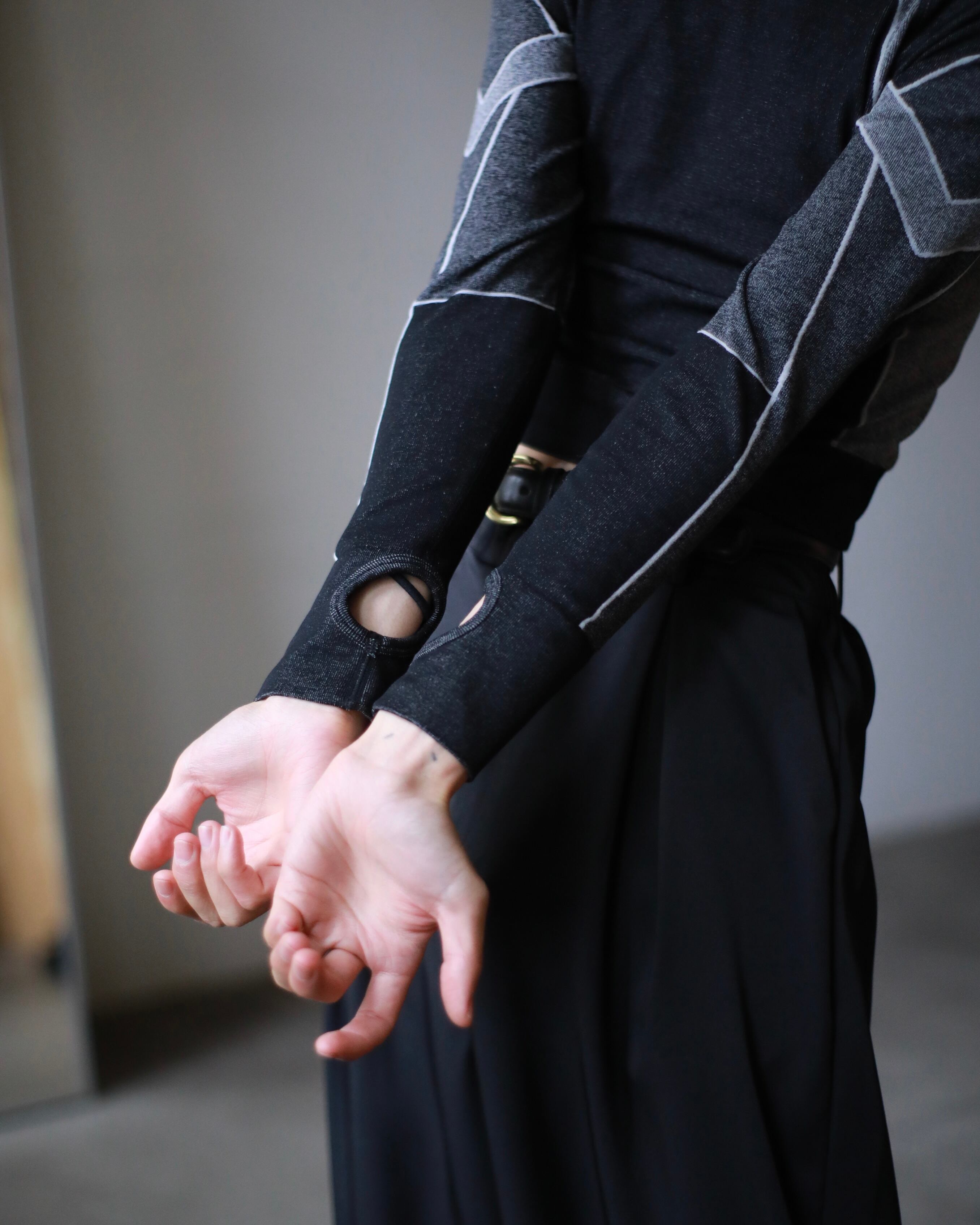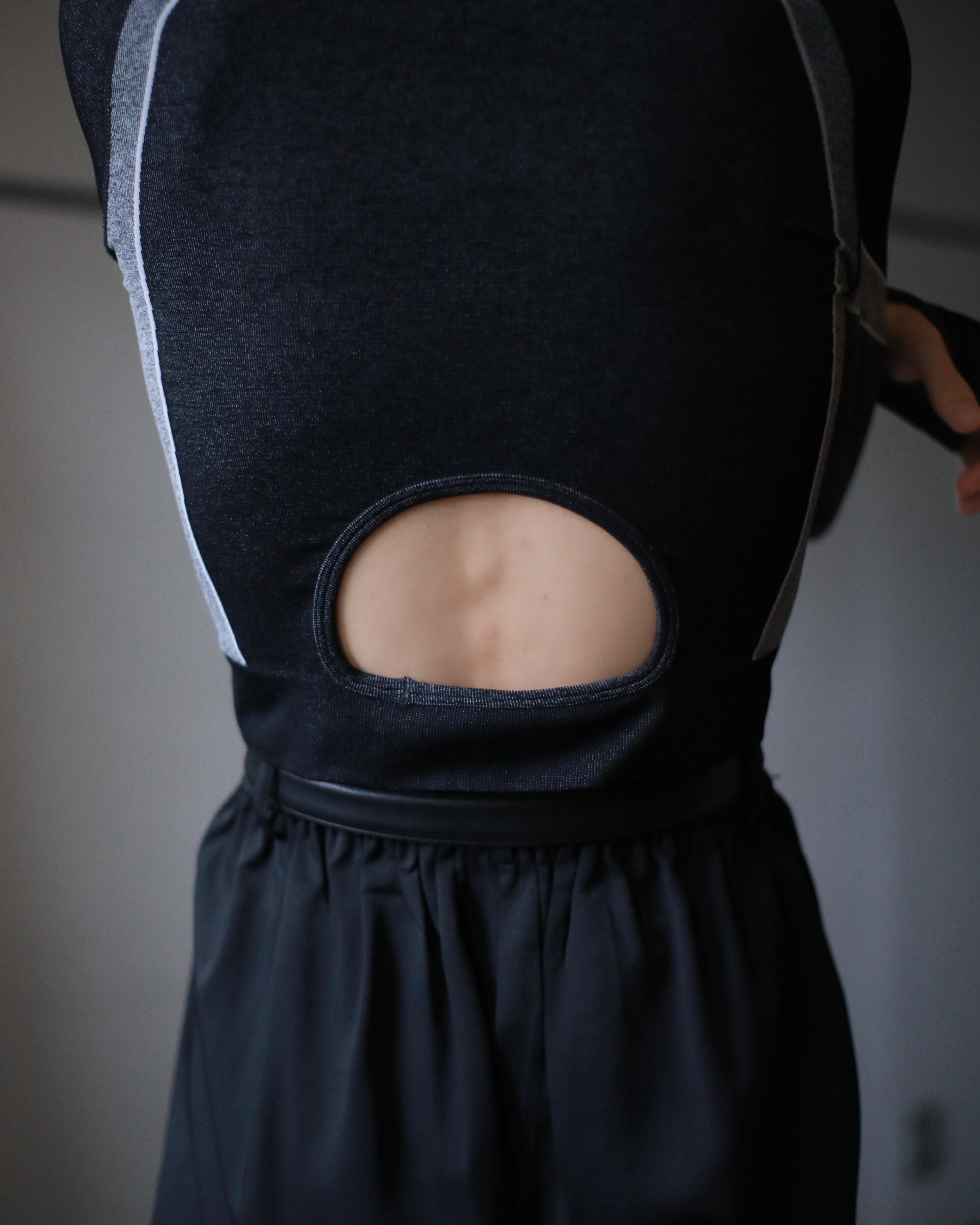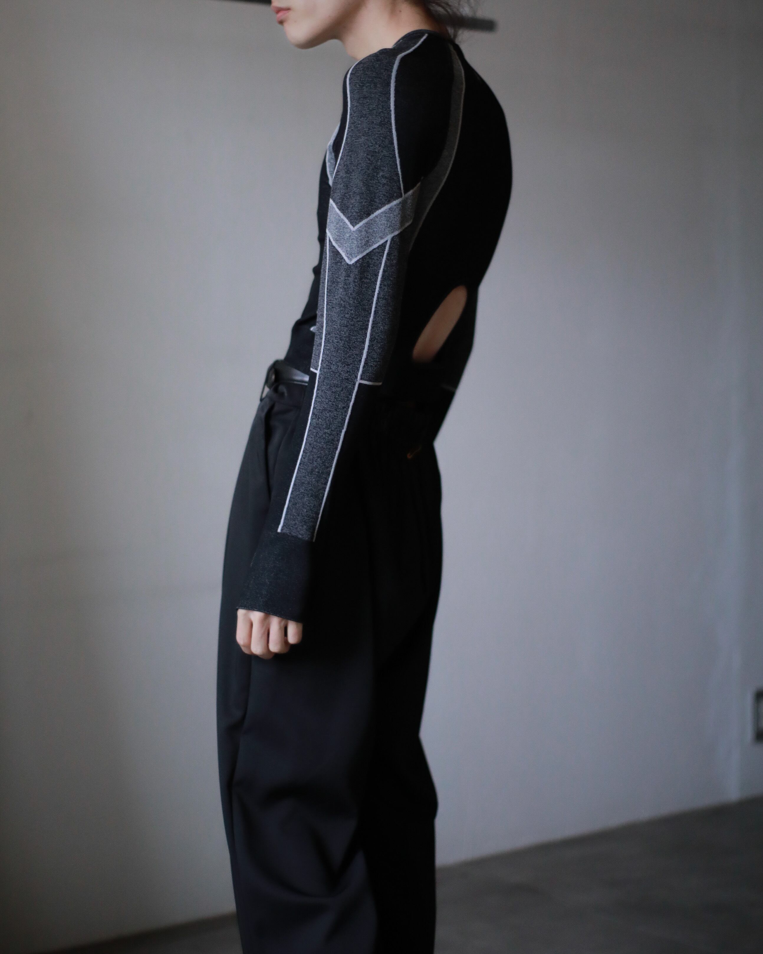 "senaka kurinuki" design black × gpay bi-color tight top