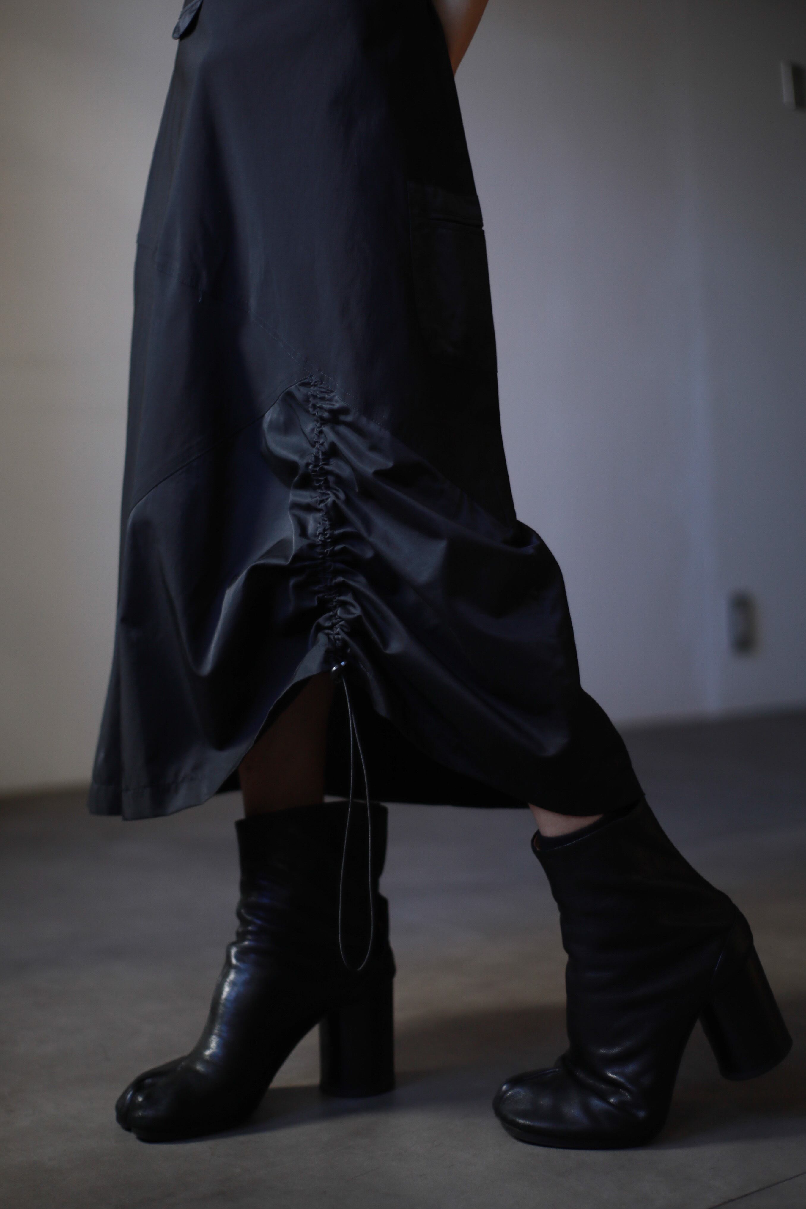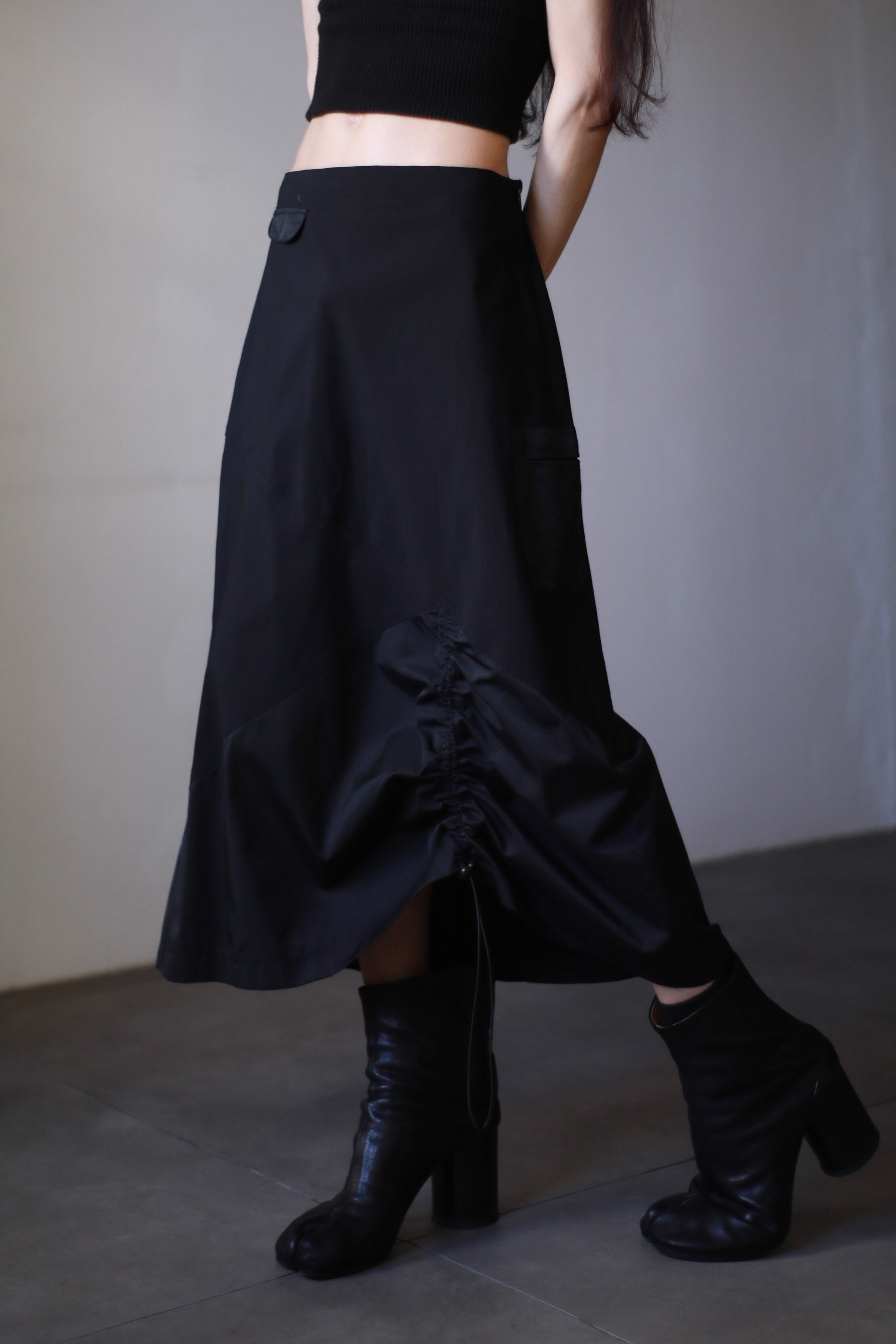 1990s euro nylon tech drawstring design long skirt