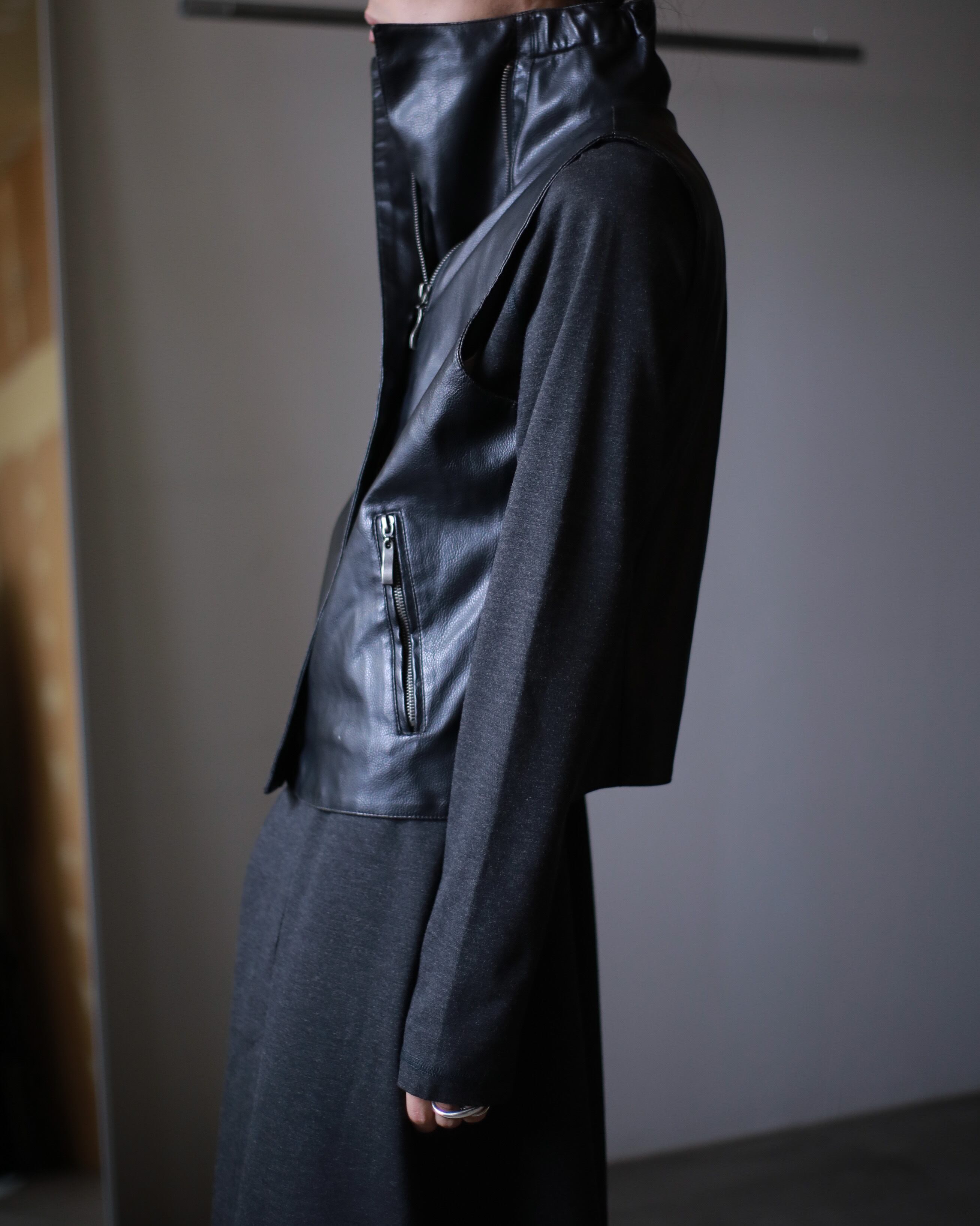 今回はワンピースと一緒に合わせてますが、モードな雰囲気なのでどんなアイテムの上に合わせても格好良く着れそうです。