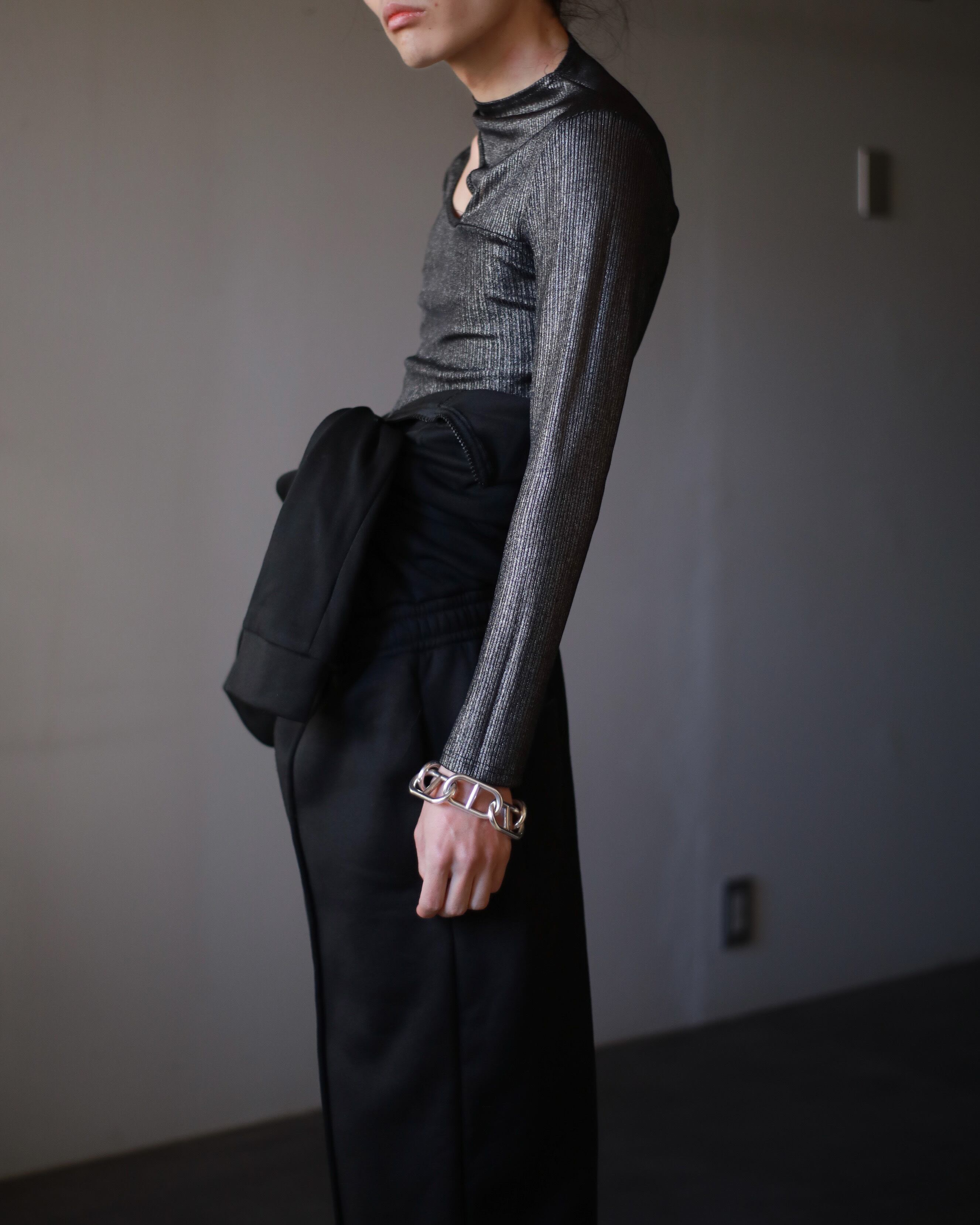 1990s~ asymmetry "sakotsu kurinuki" design rame rib knit top