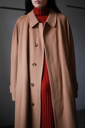 滑らかに肩の落ちるオーバーシルエットが魅力的なコート。