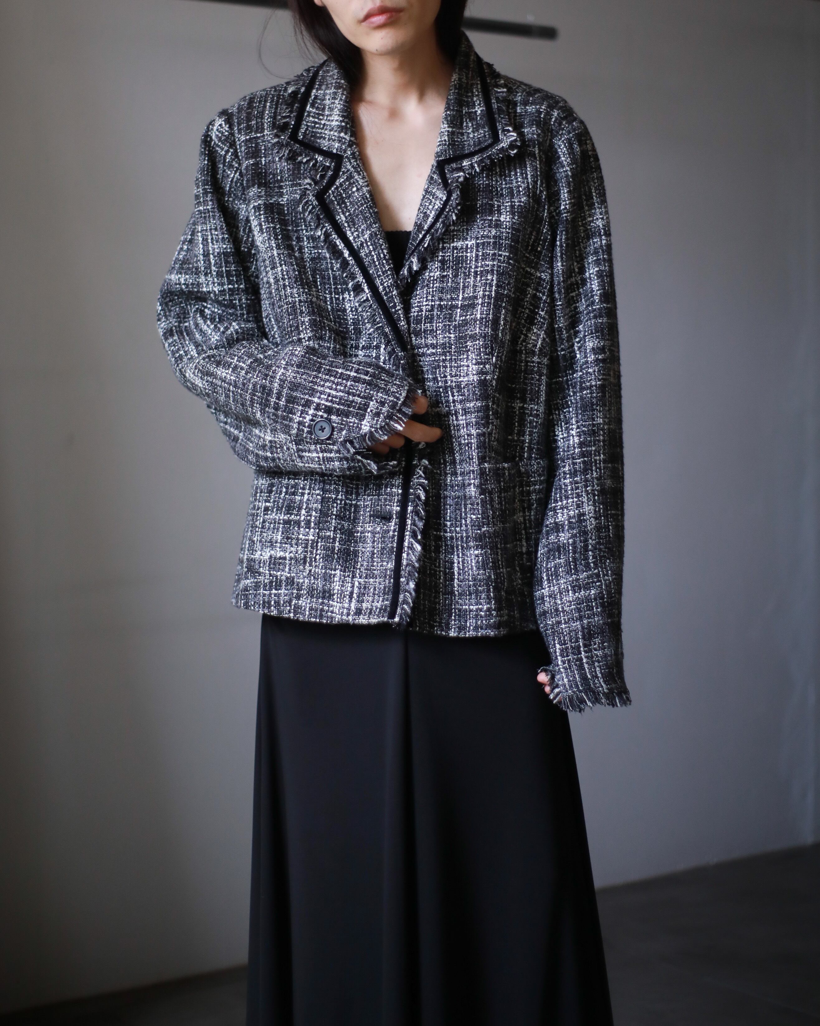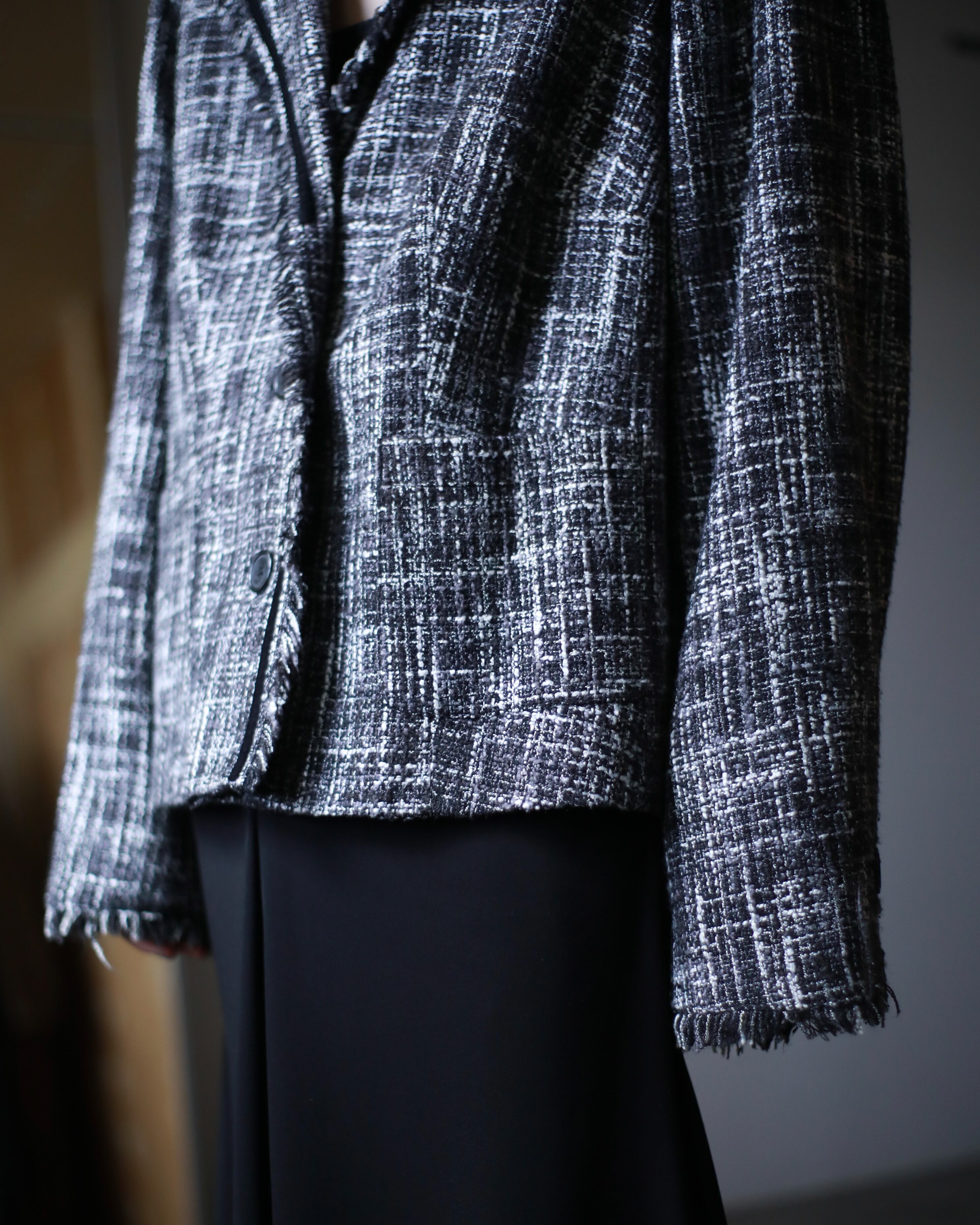 1990s tweed fabric "sode lapel fringe" design relax tailored jacket