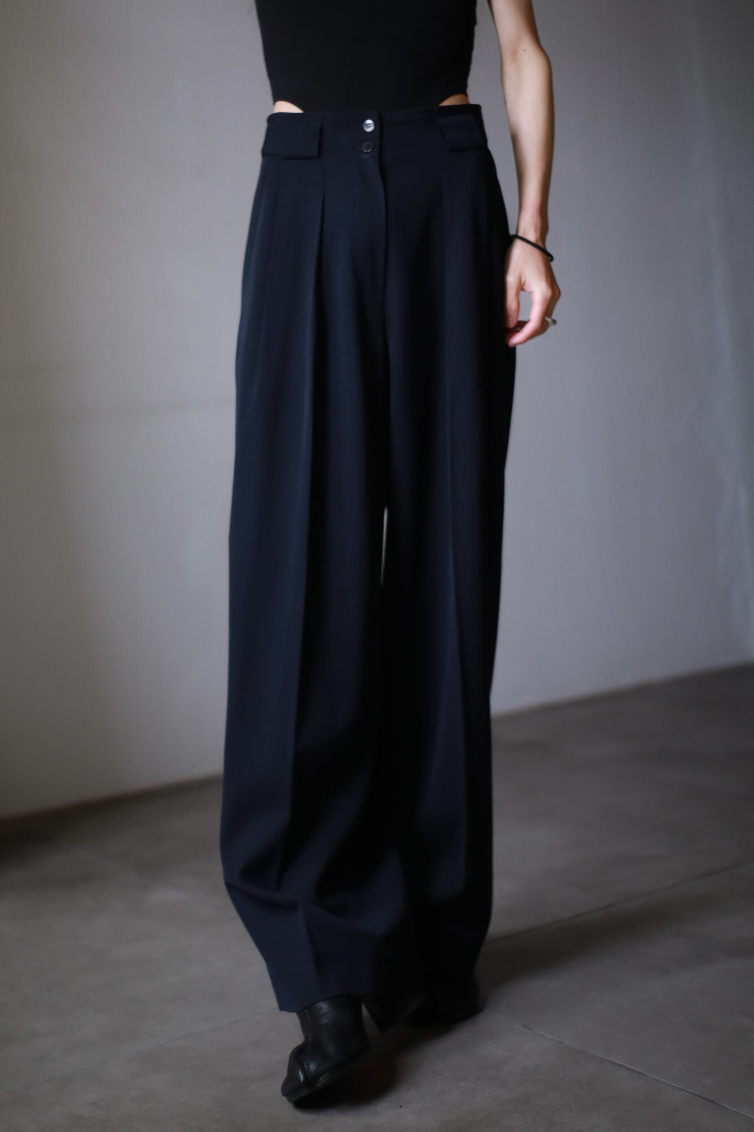 hi-waist tuck design heavy toromi fabric wide straight slacks